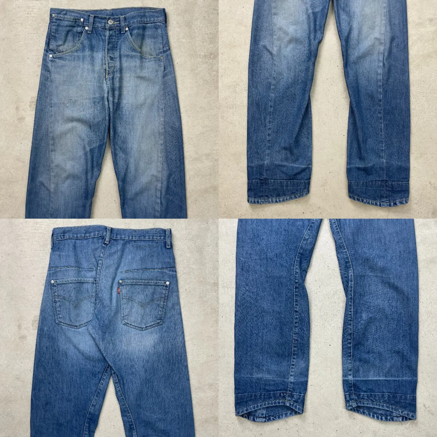 ■00年代 Levi's ユーロリーバイス ENGINEERED JEANS 立体裁断 変形デニムパンツ メンズW30相当 古着 アメカジ 00s ヴィンテージ VINTAGE Y2K エンジニアードジーンズ【デニムパンツ】/ブルー 【ブランド】Levi's リーバイス 【サイズ】表記 29×32(実寸W30相当) ※計測値をご確認ください。 ウエスト(平置き×2)…76 ワタリ幅…30 股上…28 股下…78(インシームに沿って計測) 裾幅…21 【生産国】チュニジア製 【素材】コットン70% テンセル30% 【状態】ポケット口やフロント部分に生地擦れ、股部分に内側からリペアが施されております。 画像にてご確認ください。 【c250620008】 ※古着は洗濯、検品などのケアを行っております。(新品・デッドストックは洗濯していません。) ※モニターの発色により実物と異なる場合がございます。予めご了承ください。 ※ 海外直輸入USED品になります。