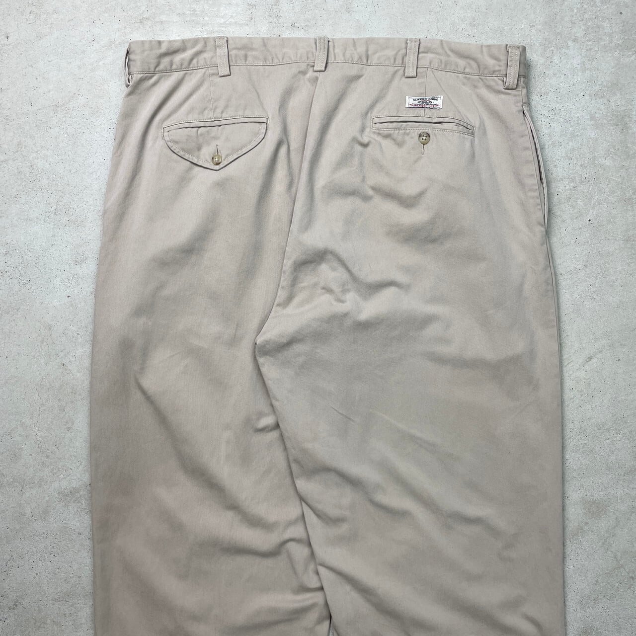 ■Polo by Ralph Lauren ポロバイラルフローレン 2タック チノパンツ ポロチノ HAMMOND PANT メンズW40 古着 アメカジ ビッグサイズ 大きいサイズ【チノパンツ,コットンパンツ】/ベージュ 【ブランド】Polo by Ralph Lauren ポロバイラルフローレン 【サイズ】表記 40/30 ※計測値をご確認ください。 ウエスト(平置き×2)…103 ワタリ幅…38 股上…34 股下…74.5 裾幅…24 【生産国】インド製 【素材】コットン100% 【状態】裾に生地擦れがございます。 画像にてご確認ください。 【c250620001】 ※古着は洗濯、検品などのケアを行っております。(新品・デッドストックは洗濯していません。) ※モニターの発色により実物と異なる場合がございます。予めご了承ください。 ※ 海外直輸入USED品になります。