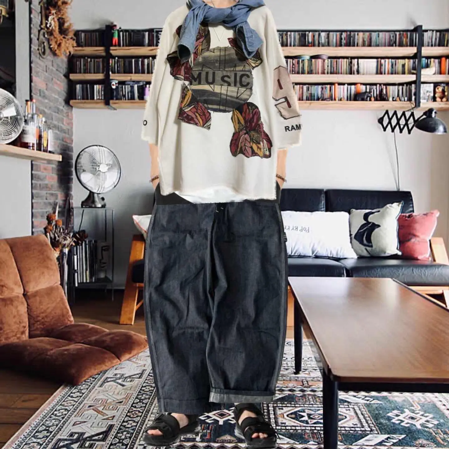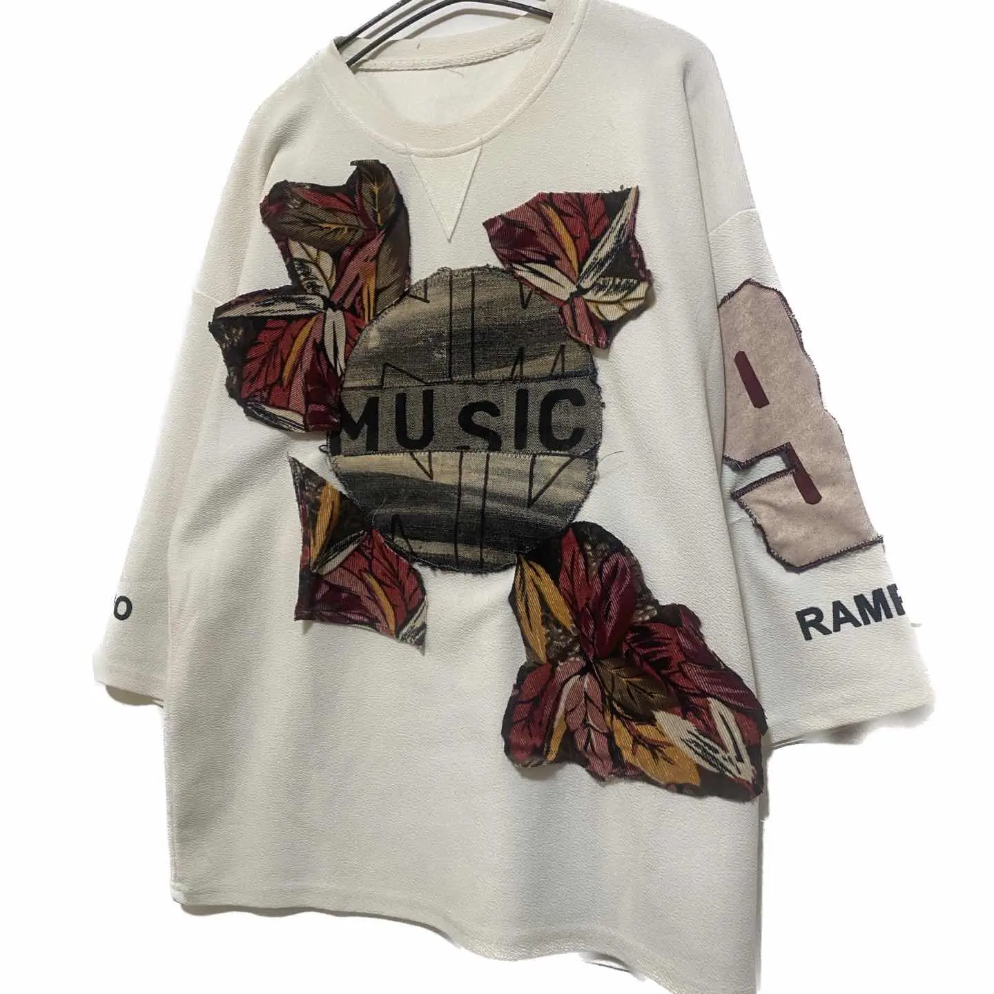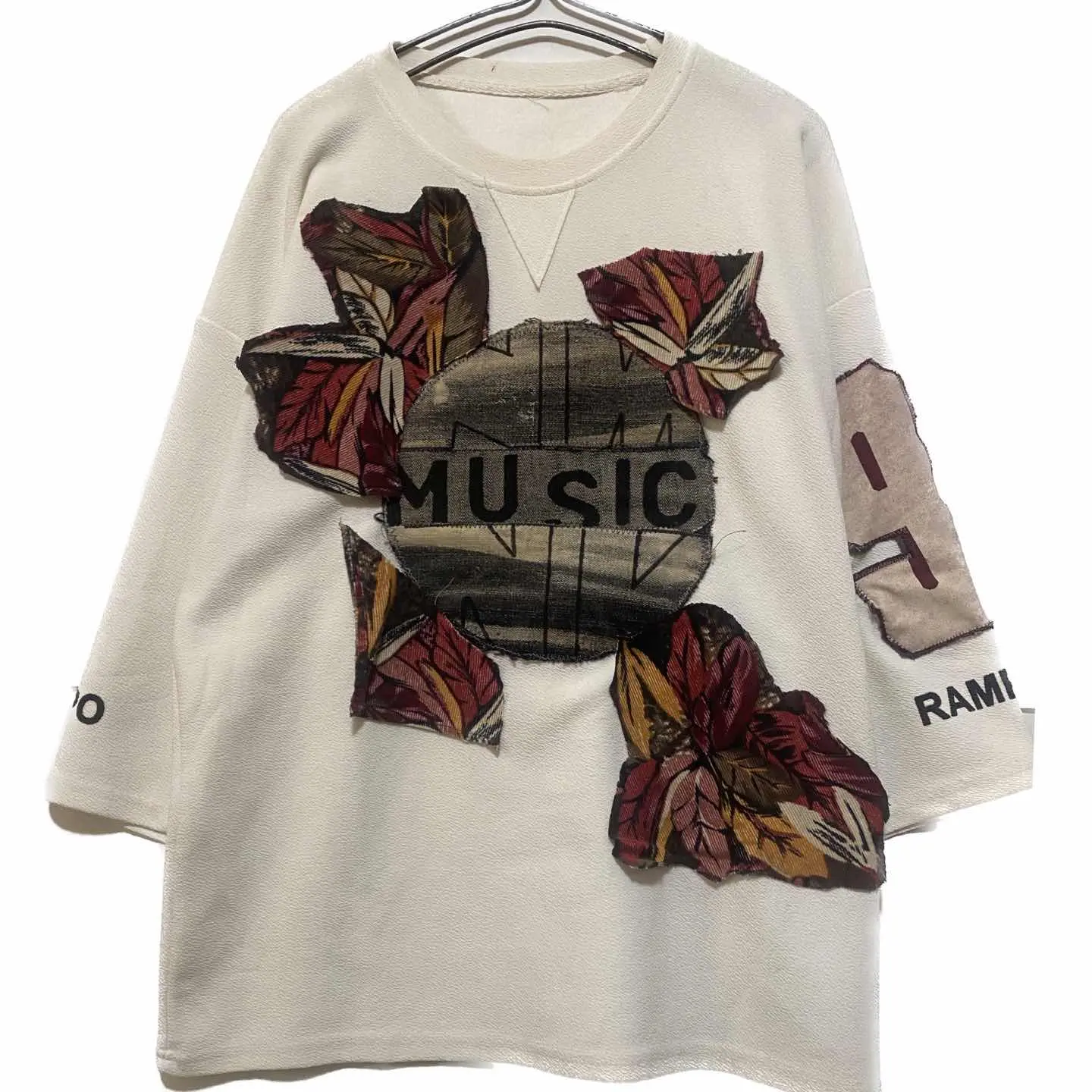 80年代のとことん上質なテクスチャー素材年中活躍して、さらに8分袖が、シルエットおしゃれ しかもガゼットV これだけで質は 申し分ない. box シルエットと 存分に80年代の魅力が伝わるボディを使い フルカスタム 音楽に心が救われた時ありませんか?私はバンドマンで、ギタリスト、作曲担当です、音楽に何回も救われました、 ノーミュージックノーライフ を、デニムを使って、施し そこから、アフリカンバティッグを、使いコアから、花咲くようにをイメージ 袖にナンバリングいれました^_^ わざとブラックデニムブリーチで、ノーミュージックノーライフ作ったのは、 まだやれるよ、頑張ろうってね、 って意味を、込めてます、 一撃で魅了するインパクトがある、メッセージが含まれたTシャツは、それだけで、カッコいいです。 共感頂きましたり、音楽に、心が、救われた経験ある方は、 是非お買い求めください、 また、テクスチャーについてですが、凹凸の意味。視覚効果でセンスあるのと、近年TVで悩みインタビューみました、うだる暑さ汗シミやだ、みたいな、だから、素材コットン最強と勘違いするからっす、それ、テクスチャーは、汗シミでない、即乾く、よって無意味に、洗濯に手間とらない、ラスト凹凸が、肌に、びっちゃりならない です、素材を、ためさないから 理解できないなら、試して下さいねー、 また、フロントデザインは、重ね着すると半端なくカッコよくて、お洒落なります、お試しあれ、 ▷size◁ 平置き片面採寸【㎝表記】 表記size 身幅は、2XLになります、丈は、レイヤードきまりやすくて、お勧め!! 着丈/73 身幅/65 肩幅/64DS boxシルエット 袖丈 /54↑8-9スリーブ 年中活躍 DSは袖はハンガー採寸 ※多少の誤差は理解下さい 170センチ Mジャストの私が、着用してかなり、ゆったり、 【素材】 テクスチャー素材、化繊にはいりますが、 着心地、タフさ、速乾、吸水、シワならない、 洗濯簡単 【状態】 美品customなんで、綺麗です、 検品、洗濯、検品で、3回チェックして発送しますので、ご安心して、お買い求め下さい!!