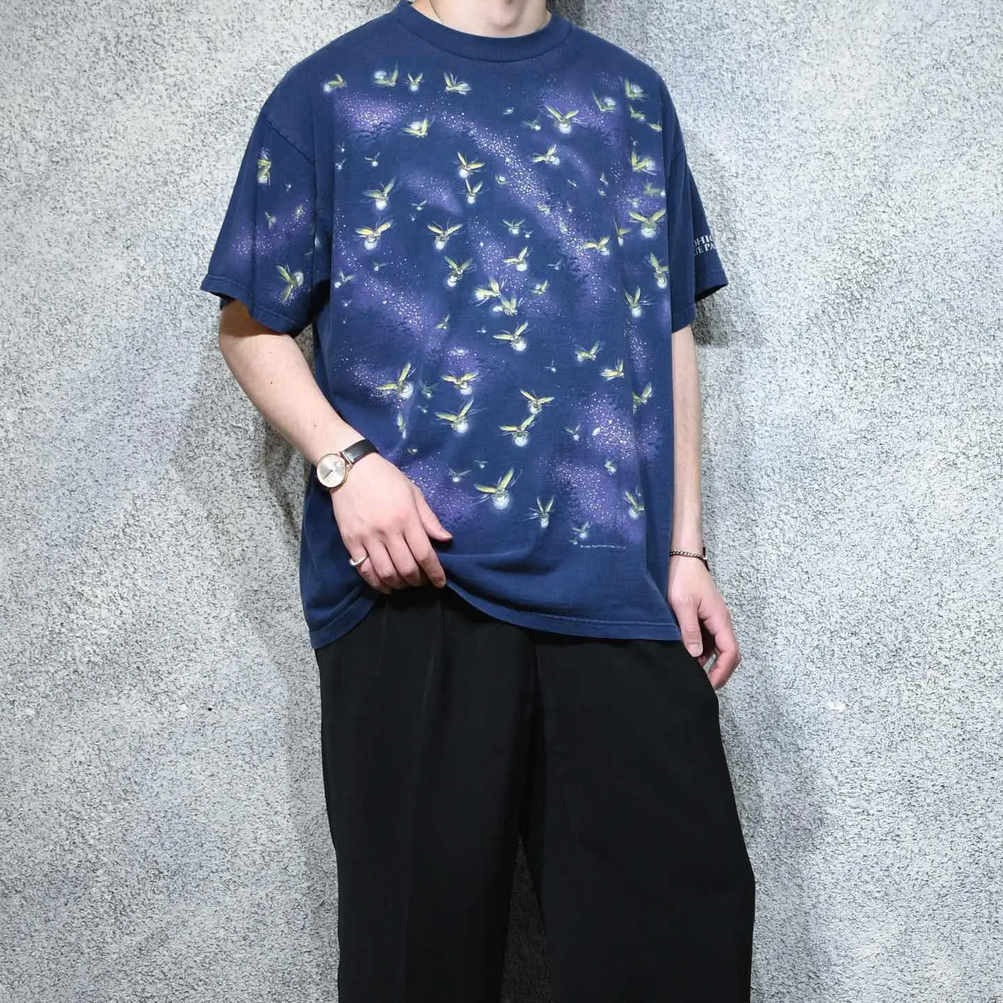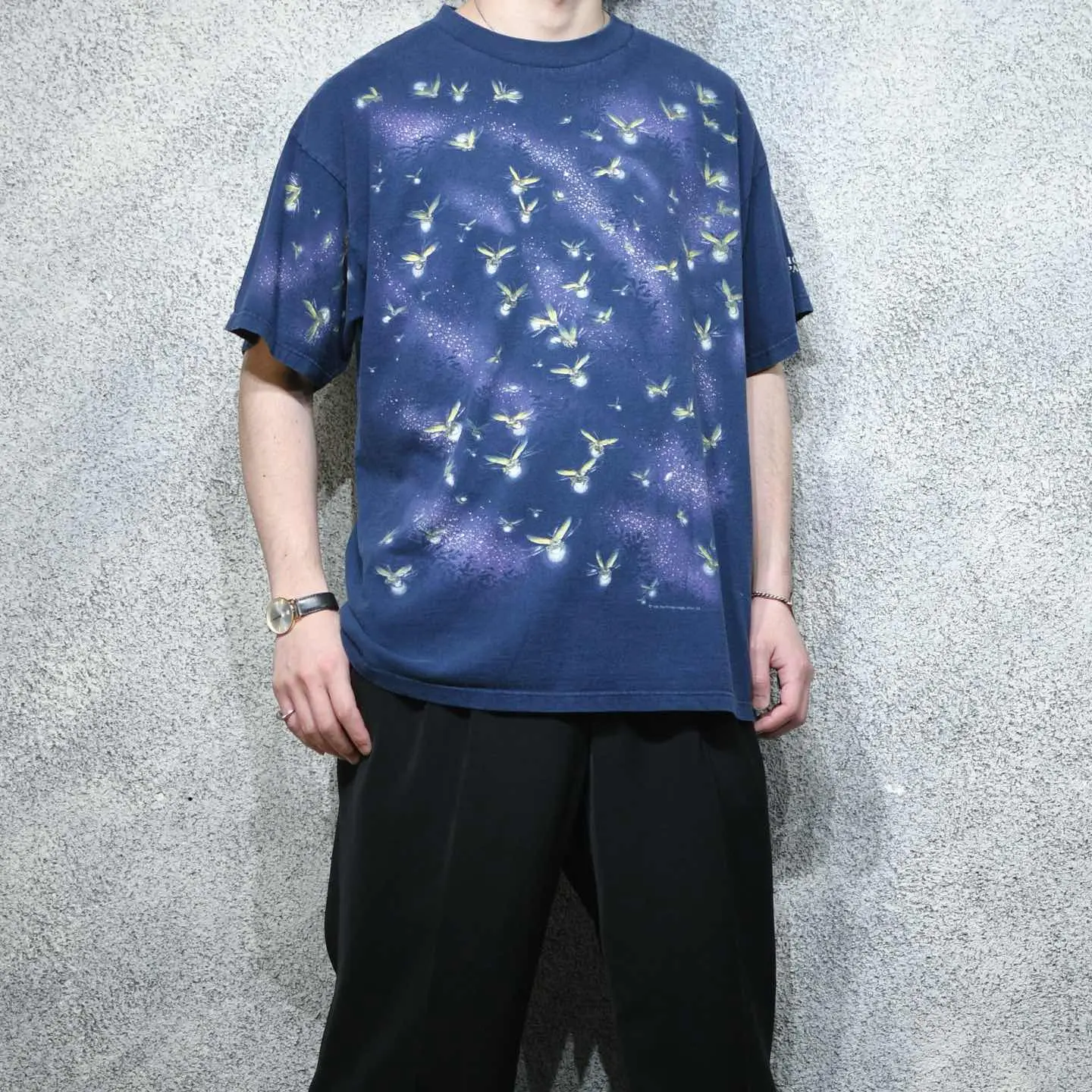 着丈73cm 肩幅60cm 身幅61cm 袖丈22cm(ダブルステッチ) fabric/質感よりcotton 着用画像 177cm/64kg アメリカ、オハイオ州の州立公園で販売されていた スーベニアTシャツ。 オハイオ州の州立公園では、特に6月に蛍の鑑賞 イベントが開催されるようです。 生き物系Tシャツの中でも初見な蛍のプリント、 そのプリントは、ボディだけでなく袖にまで。 アニマルプリントを始めとする、 生き物系Tシャツ好きには、より新鮮に、尚且つ 心躍る1着として映るのではないでしょうか。 ※撮影状況により、実物と多少色が異なる場合が ございます。 ※古着を取り扱っているため、気づかない汚れや ほつれ等がある場合がございます。 予めご了承ください。 ※サイズは着用感で選んでおり、表記サイズではございません。 古着 オーバーサイズ old vintage ヴィンテージ used 80's 90's アメリカ古着 ユーロ古着 メンズ レディース POLO RALPH LAUREN Eddie Bauer OLD GAP Eddie Bauer LANDS' END ランズエンド LLBean エルエルビーン オールドギャップ エディーバウアー ラルフローレン ブルックスブラザーズ Brooks Brothers Tシャツ カラーTシャツ 半袖Tシャツ ホタル などがお好きな方 #vintage #オーバーサイズ #old #used #90s #80s #古着 #ヴィンテージ #アメリカ古着 #ユーロ古着 #古着男子 #古着女子 #LLBean #エルエルビーン #EddieBauer #エディーバウアー #oldgap #オールドギャップ #LANDSEND #ランズエンド #NAUTICA #ノーティカ #ラルフローレン #POLORALPHLAUREN #ブルックスブラザーズ #BrooksBrothers #プリントTシャツ #Tシャツ #半袖Tシャツ #フルプリント #カラーTシャツ #蛍