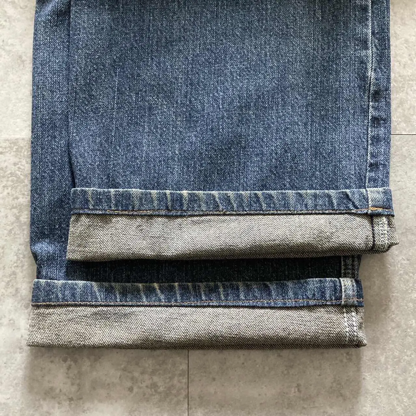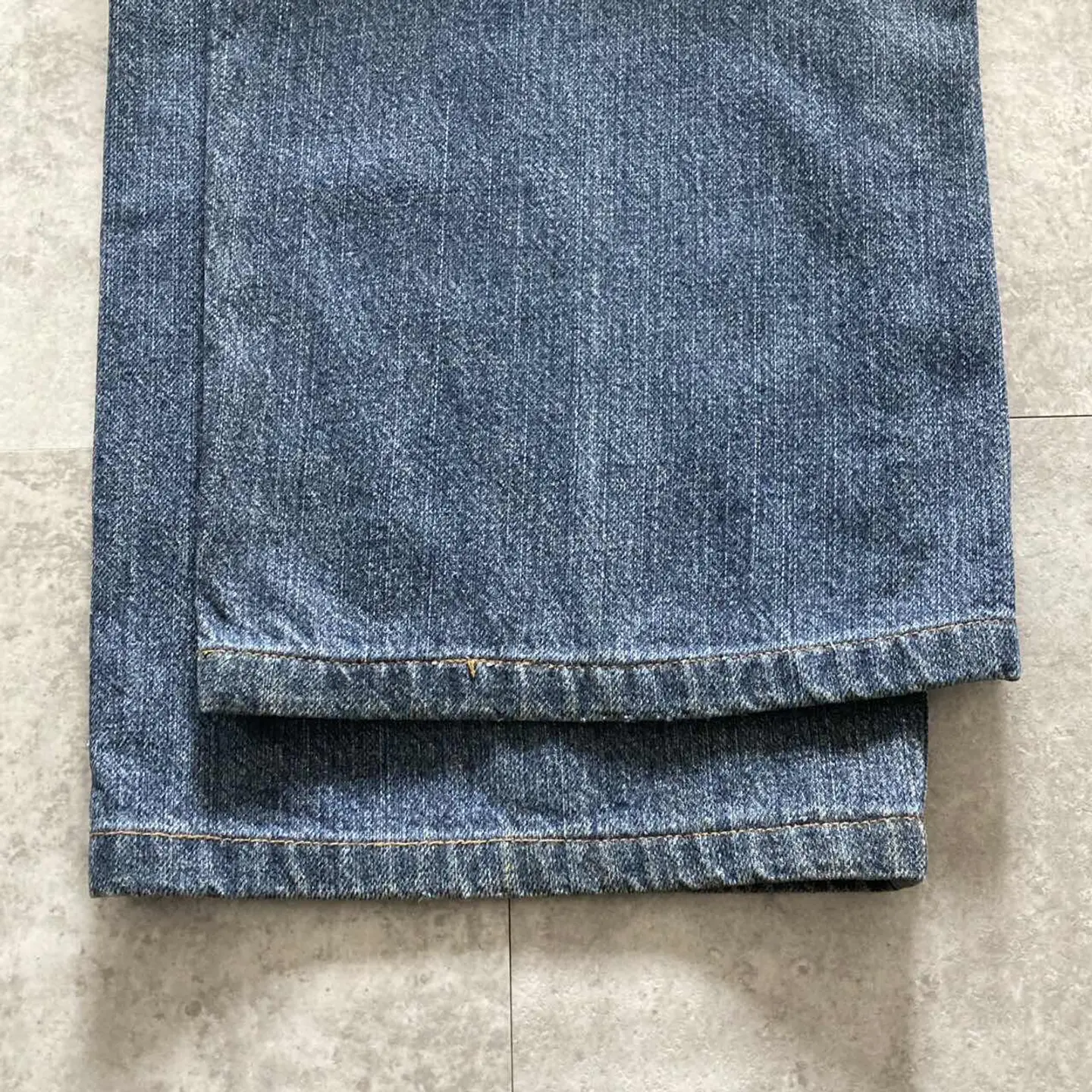 □Size□ 表記→W38 L32 実寸↓ 股上 : 34.5 股下 : 71.5 ワタリ幅 : 38 裾幅 : 27 ウエスト : 51.5×2 (裾上げの可能性あり) (cm) □Colour□ ・デニム紺 □Material□ ・100%コットン □Condition□ ・ベルトループにリペアあり □Caution□ ・当店で取り扱っているアイテムは全て「古着」となっております。そのため、多少の擦れやほつれ、色あせや汚れ等が見られる場合がございます。新品同様の完璧なお品物をお求めの方は当店をご利用されないよう宜しくお願いします。 ・購入された商品につきましては、購入日から起算して「72時間以内の発送」とさせて頂きます。お急ぎの場合はオンラインストアの問い合わせフォームよりご連絡ください。可能な限り対応させて頂きます。 ・購入されら商品は基本的に「お客様都合での返品&キャンセル不可」となっております。決済が確定した時点で注文の取り消し等は不可のとなりますので、よくお考えの上購入検討の方をお願い致します。 【A-5627】
