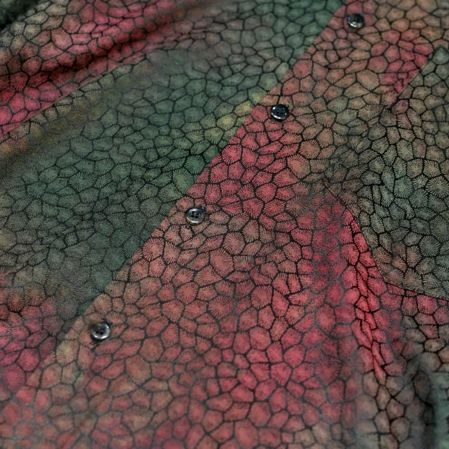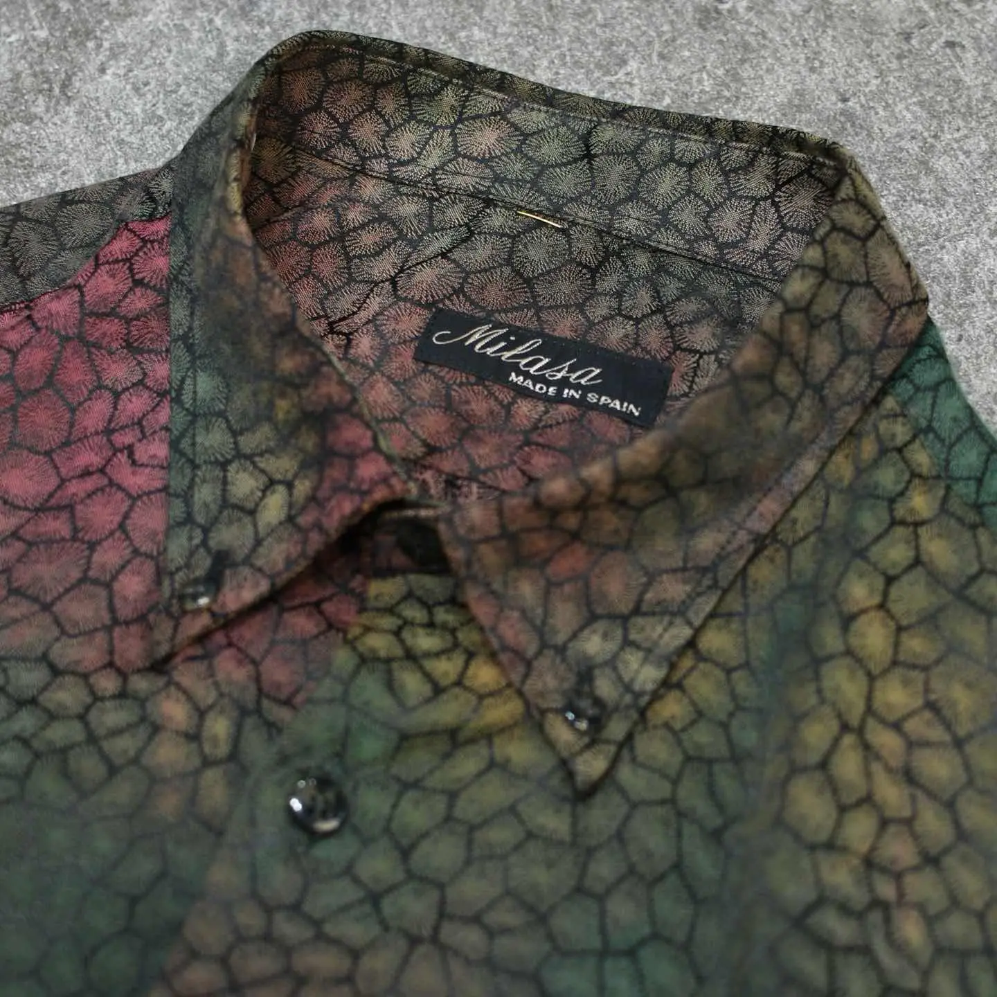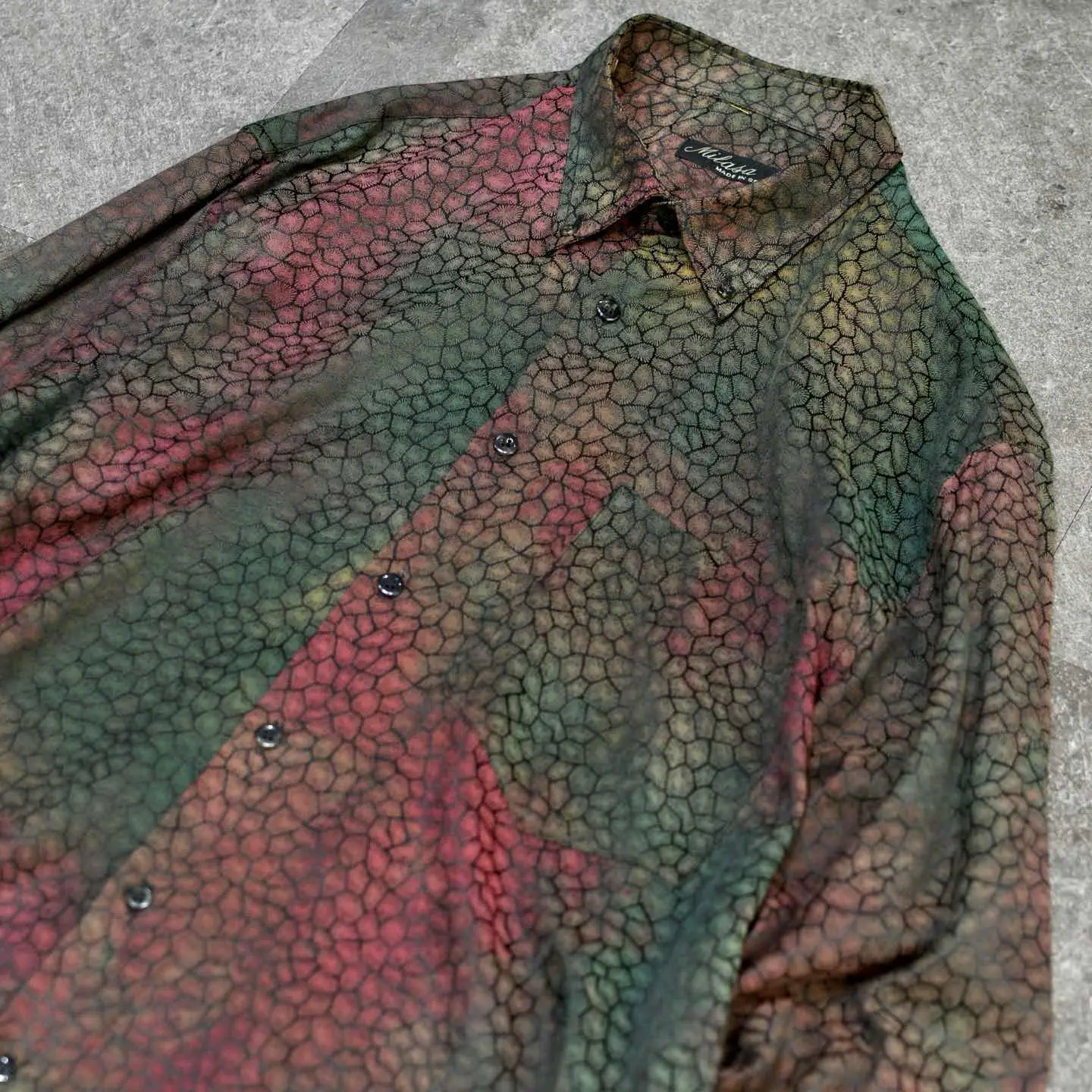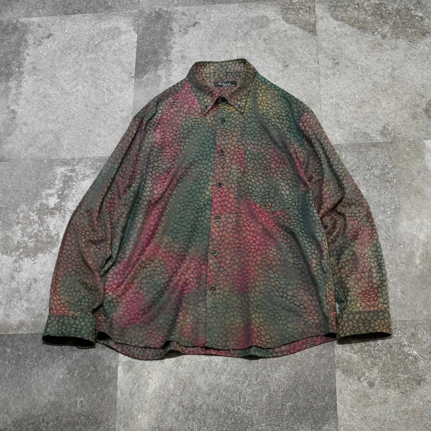 着丈76cm 肩幅52cm 身幅62cm 袖丈61cm fabric/cotton・poly made in SPAIN 着用画像 177cm/64kg 鱗のような、細胞のような、独特で雰囲気のある 色合いとデザインが施された柄シャツ。 柄シャツの中でも一際異彩を放つ1着で、 スペイン製というところにも、 どこか惹かれました。 存在感のある柄でありながら、深みのある色合いで スタイリングにも落とし込みやすく、 さらっと羽織りとしても活躍するのでは ないでしょうか。 個性の輝る柄シャツというカテゴリー、 中でも頭1つ秀でた逸品です。 ※撮影状況により、実物と多少色が異なる場合が ございます。 ※古着を取り扱っているため、気づかない汚れや ほつれ等がある場合がございます。 予めご了承ください。 ※サイズは着用感で選んでおり、表記サイズではございません。 古着 オーバーサイズ old vintage ヴィンテージ used 80's 90's アメリカ古着 ユーロ古着 メンズ レディース POLO RALPH LAUREN Eddie Bauer OLD GAP Eddie Bauer LANDS' END ランズエンド LLBean エルエルビーン オールドギャップ エディーバウアー ラルフローレン ブルックスブラザーズ Brooks Brothers カーキ ワインレッド バーガンディ 玉虫色 シャツ などがお好きな方 #vintage #オーバーサイズ #old #used #90s #80s #古着 #ヴィンテージ #アメリカ古着 #ユーロ古着 #古着男子 #古着女子 #LLBean #エルエルビーン #EddieBauer #エディーバウアー #oldgap #オールドギャップ #LANDSEND #ランズエンド #NAUTICA #ノーティカ #ラルフローレン #POLORALPHLAUREN #ブルックスブラザーズ #BrooksBrothers #デザインシャツ #長袖シャツ #シャツ #柄シャツ #総柄シャツ