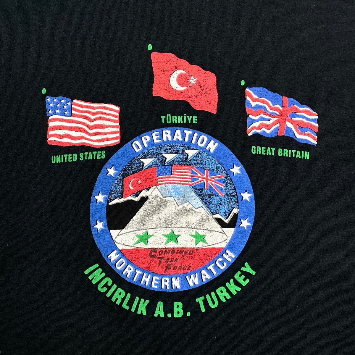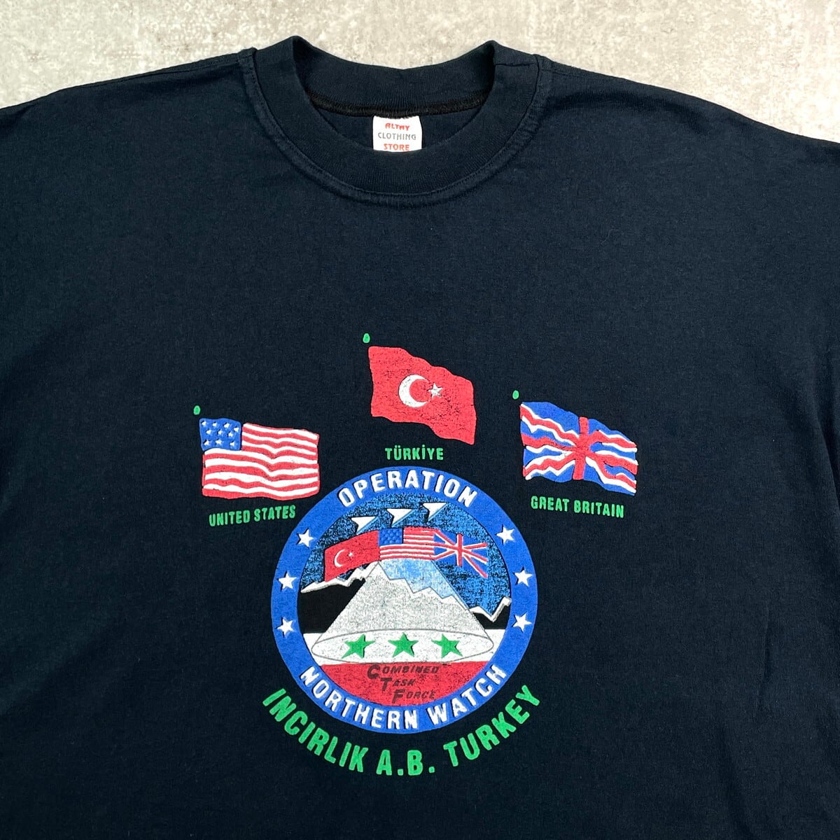 ■OPERATION NORTHERN WATCH プリントTシャツ メンズXL 古着 インジルリク空軍基地 トルコ アメリカ イギリス 黒色【Tシャツ】/ブラック 【ブランド】ALTAY CLOTHING STORE 【サイズ】表記 XL ※計測値をご確認ください。 着丈…70 身幅…63 肩幅…59 袖丈…22 【生産国】不明 【素材】コットン100% 【状態】使用感はありますが、ダメージや汚れはございませんので、 まだまだ愛用していただけます。 画像にてご確認ください。 【c250708103】 ※古着は洗濯、検品などのケアを行っております。(新品・デッドストックは洗濯していません。) ※モニターの発色により実物と異なる場合がございます。予めご了承ください。 ※ 海外直輸入USED品になります。