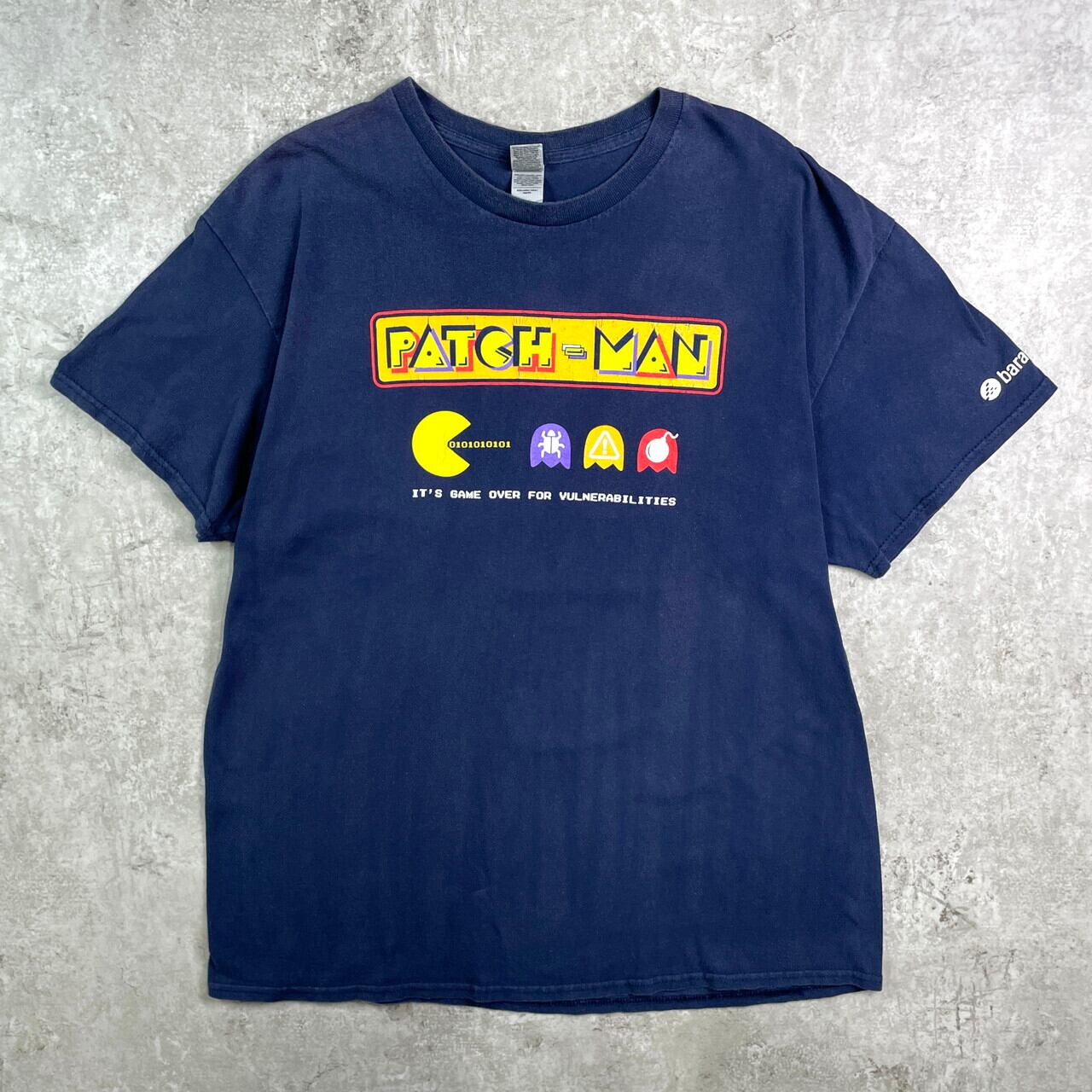 ■PATCH-MAN パックマン パロディ キャラクター プリントTシャツ メンズXL 古着 ゲーム 紺色【Tシャツ】/ネイビー 【ブランド】GILDAN ギルダン 【サイズ】表記 XL ※計測値をご確認ください。 着丈…75 身幅…62 肩幅…58 袖丈…20 【生産国】ハイチ製 【素材】コットン100% 【状態】右肩にフェードがございます。 画像にてお確かめください。 【c250704010】 ※古着は洗濯、検品などのケアを行っております。(新品・デッドストックは洗濯していません。) ※モニターの発色により実物と異なる場合がございます。予めご了承ください。 ※ 海外直輸入USED品になります。