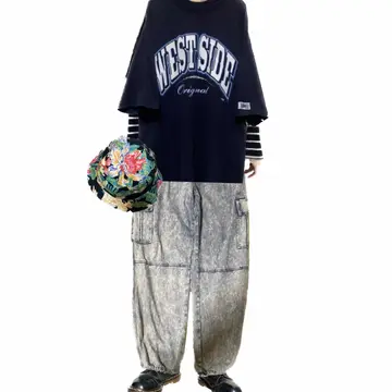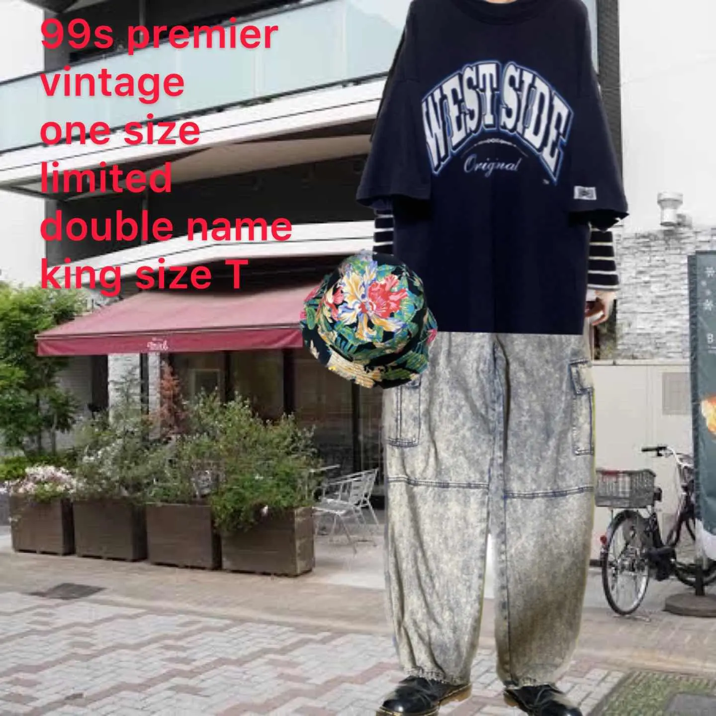 premier vintage 明記 今買わないとガンガン値上がりするやつ、市場さがそ!甘いっ! 考えが、激しく甘いです。無いよ、当店限定!! 全部読んだらわかります、限定品すぎるから onesizeは、基本誇り高いんです、 【量産する気ねーよ、量産に価値は、ない】って 意味!! 90s vinvage 奇跡の1着、正確にいうと、1999年世紀末モデル!!※世紀末は、二度と99は、こないよって、希少価値が、下がる事ない、 90s初期は、ピタTブーム だが??1996-から、doubleステッチに、なり始めた理由、実はストリートブームから、なんですよ、doubleロックとかで、強度を、強める、 さらに、コットンも、タフになっていった、 ヘビーコットン使用!! その後、スケーターブームから。ペニーワイズ等スケートパンク流しながらの、大会が、沢山開かれ、この音楽カッコいいと、ストリートブームから、バンドブーム加速、そして、メロコアとハードコア、二極化が始まる、西海岸が、流行り始めたのもこの98-99 です、00sになると、もう勢いは、止まらずビックサイズが、流行った、 その火付け役Bombown と、ここからが、面白い、スケート→メロorHC→ギャング風西海岸→ミクスチャーHC→HIPHOP 後者2の火付け役West side が、奇跡のdoublenameを 限定10着で出した、中々みつからない、kingsizeT です。迷わない方がいいですね、確実値上がりしまくります。 ▷color◁ 限りなく黒に近いネイビーダークネイビーと いう ※ブラウザで異なる場合ありますがかなり実物近づけてます。 ▷size◁ 平置き片面採寸【㎝表記】 表記size king-size フリーとしときます。 着丈/89 身幅/73 肩幅/73 袖丈 /44DSなんで、ハンガーかけ採寸 ハーフスリーブ風になる最高な一着 DSは袖はハンガー採寸 ※多少の誤差は理解下さい 着画ある場合モデル170センチ普通体型M がジャスト位の体型の私が、着用して かなり、ゆるだぼ コーデ #ダブルニーカーゴ 当店商品 #トロピカルバケハ 当店商品是非チェック 【素材】 ヘビーコットン 【状態】 ダメージ無く素晴らしい!!長持ちします、 #プレミアヴィンテージ #限定