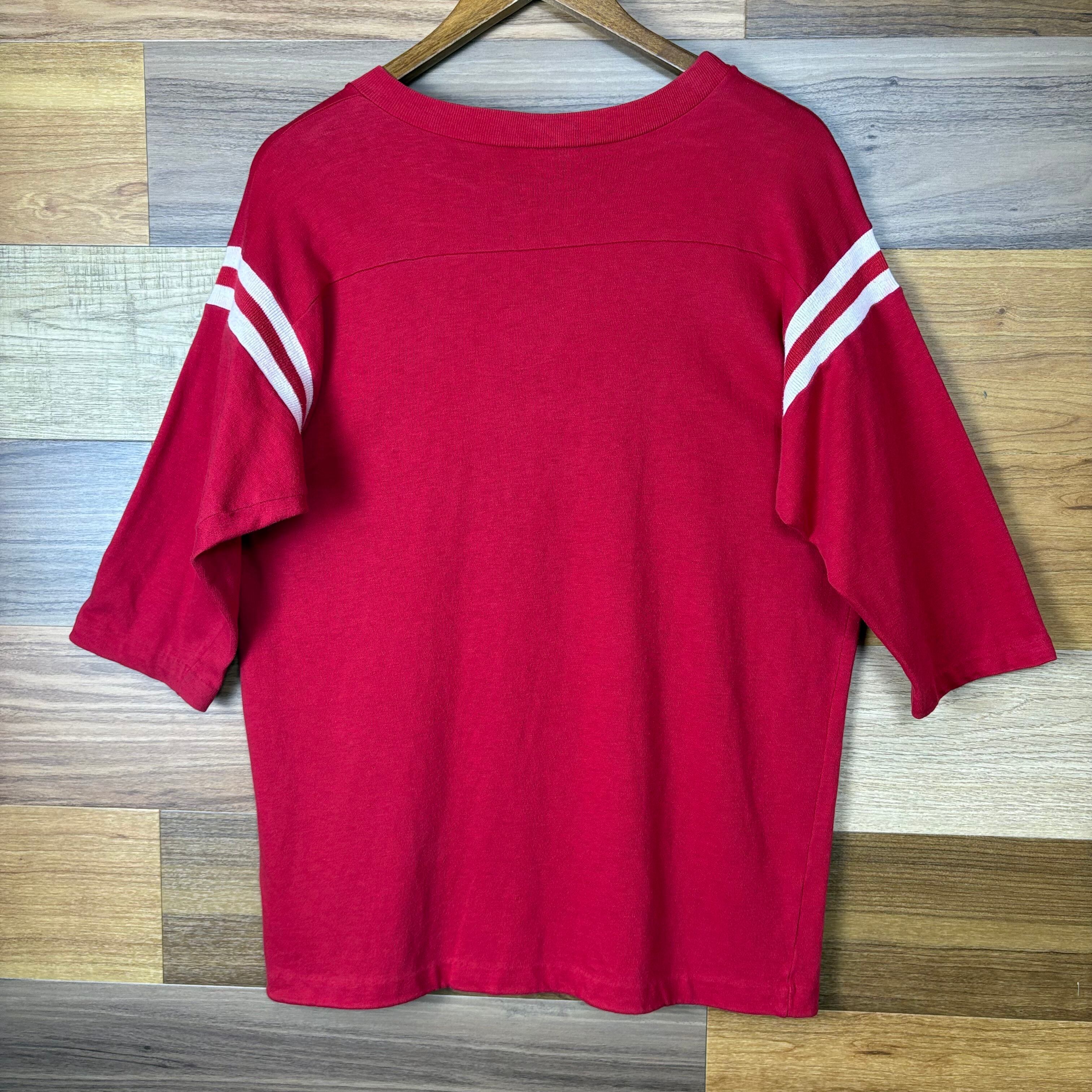 【アイテム】 70s ARTEX 七分袖 カレッジ Tシャツ サイズ メンズ XL 70年代 VINTAGE ビンテージ ヴィンテージ ストリート アメカジ 古着 r25070823 【コンディション】 ・B S→未使用または新品の商品(デッドストック) A→使用感のほぼない、大変状態の良い商品(ミントコンディション) B→使用感はあるが目立つダメージのない商品 C→使用感があり、部分的にダメージがある商品 D→全体的に使用感があり、目立つダメージがある商品 E→ジャンク品 【サイズ】 サイズ表記 メンズ XL 実寸:肩幅50cm 身幅53cm 着丈67cm 肩から袖丈34cm 脇下から袖丈32cm ※着丈は背面から計測しております。 古着に抵抗のある方は購入をお控え下さい。 画像にてしっかりご確認頂き、気になる点等御座いましたら御購入前にお問い合わせ願います。 ※古着は洗濯、検品などのケアを行っております。(新品・デッドストックは洗濯していません。)
