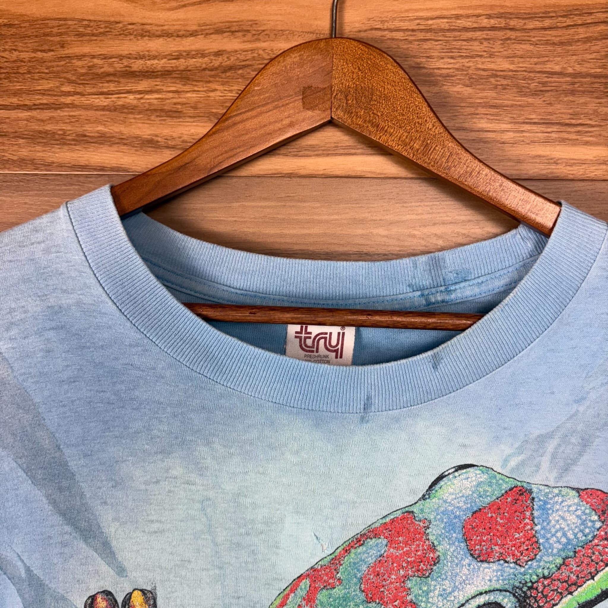 【アイテム】 90s タイダイ 大判 両面 トカゲ プリント Tシャツ サイズ メンズ L 90年代 VINTAGE ビンテージ ヴィンテージ ストリート アメカジ 古着 r25062787 【コンディション】 ・C(首リブにダメージ・フロントに裏地からアイロンテープでリペアーが御座います。) S→未使用または新品の商品(デッドストック) A→使用感のほぼない、大変状態の良い商品(ミントコンディション) B→使用感はあるが目立つダメージのない商品 C→使用感があり、部分的にダメージがある商品 D→全体的に使用感があり、目立つダメージがある商品 E→ジャンク品 【サイズ】 サイズ表記 メンズ L 実寸:肩幅56cm 身幅56cm 着丈72cm 肩から袖丈21cm 脇下から袖丈15cm ※着丈は背面から計測しております。 古着に抵抗のある方は購入をお控え下さい。 画像にてしっかりご確認頂き、気になる点等御座いましたら御購入前にお問い合わせ願います。 ※古着は洗濯、検品などのケアを行っております。(新品・デッドストックは洗濯していません。)