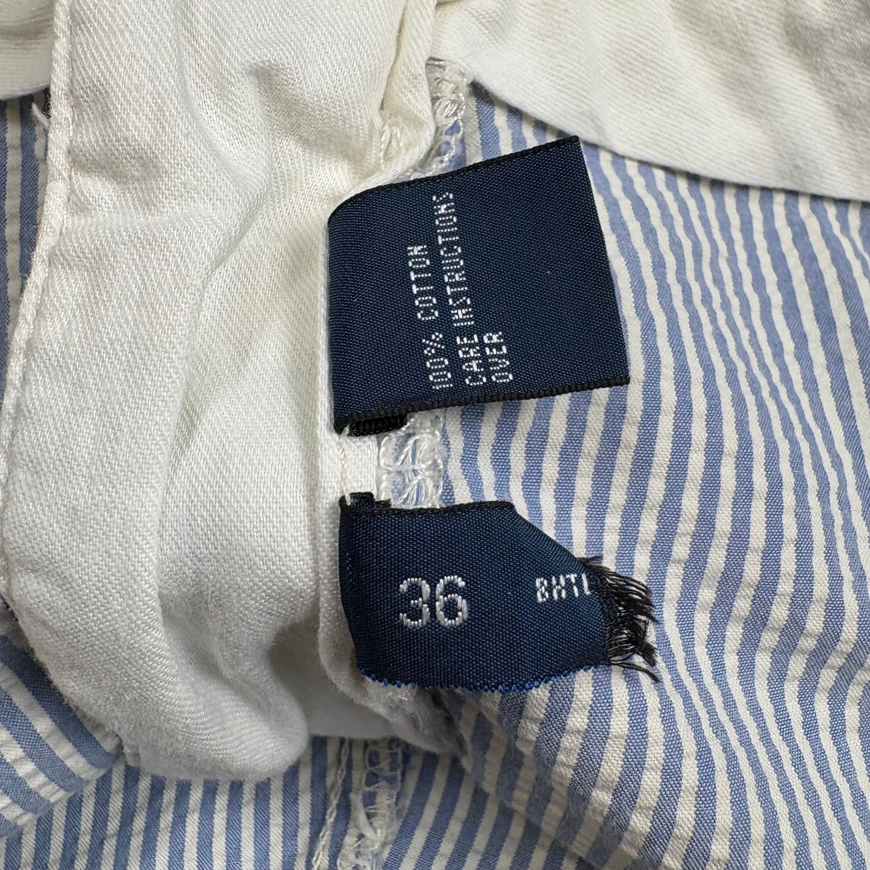 【アイテム】 90s Polo by Ralph Lauren ポロ ラルフローレン シアサッカー ストライプ ショートパンツ ショーツ 半パン サイズ W36 メンズ XL位 90年代 VINTAGE ビンテージ ヴィンテージ ストリート アメカジ 古着 r25062756 【コンディション】 ・B S→未使用または新品の商品(デッドストック) A→使用感のほぼない、大変状態の良い商品(ミントコンディション) B→使用感はあるが目立つダメージのない商品 C→使用感があり、部分的にダメージがある商品 D→全体的に使用感があり、目立つダメージがある商品 E→ジャンク品 【サイズ】 サイズ表記 W36(メンズ XL位) 実寸:ウエスト平置き45cm 股上46cm 股下23cm ワタリ幅38cm 裾幅32cm サイドシーム全長総丈55cm *股上は背面で計測しております。 古着に抵抗のある方は購入をお控え下さい。 画像にてしっかりご確認頂き、気になる点等御座いましたら御購入前にお問い合わせ願います。 ※古着は洗濯、検品などのケアを行っております。(新品・デッドストックは洗濯していません。)