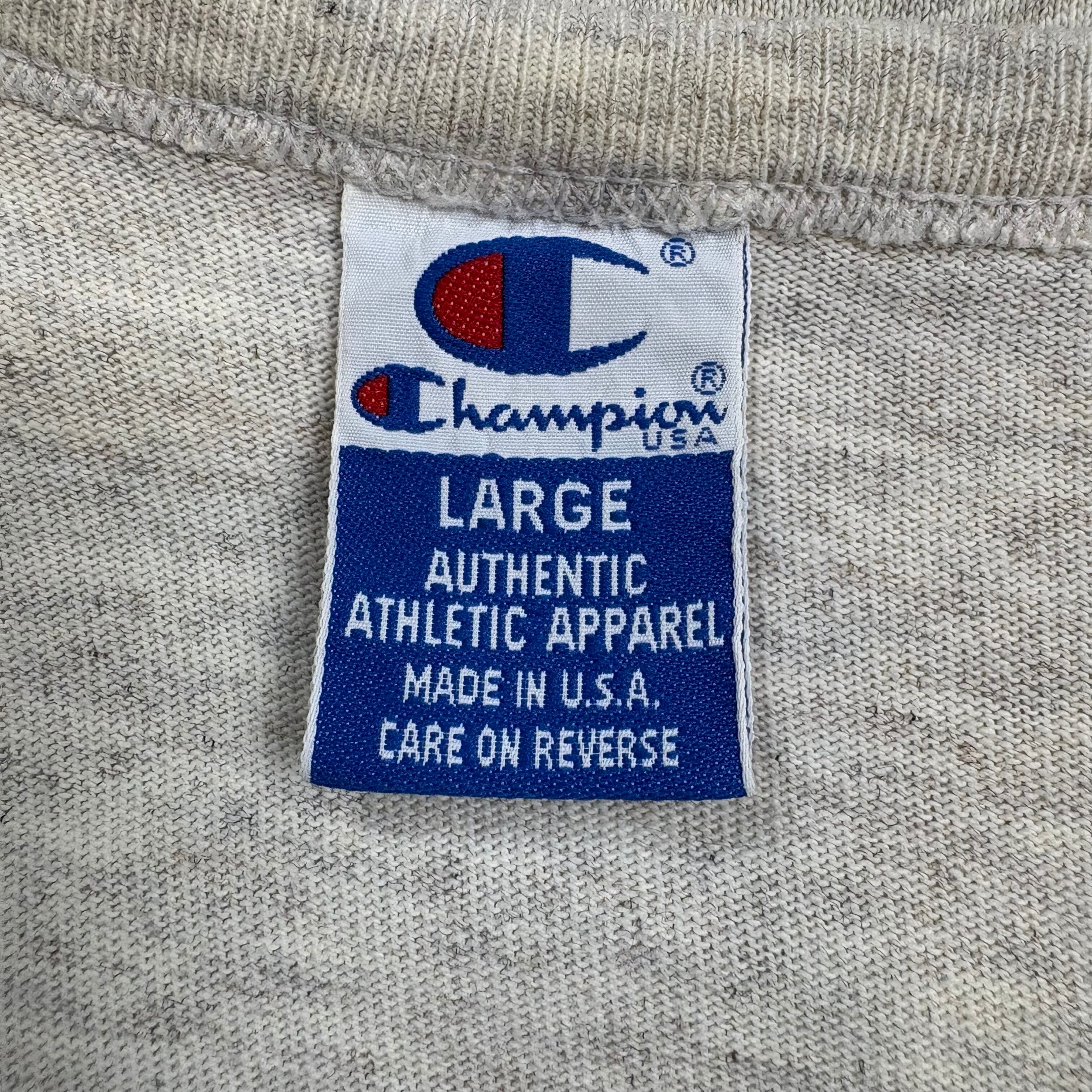 USA製 90s Champion チャンピオン Tシャツ サイズ メンズ L 袖アメリカ製 90年代 VINTAGE ヴィンテージ 古着 r25060692/グレー