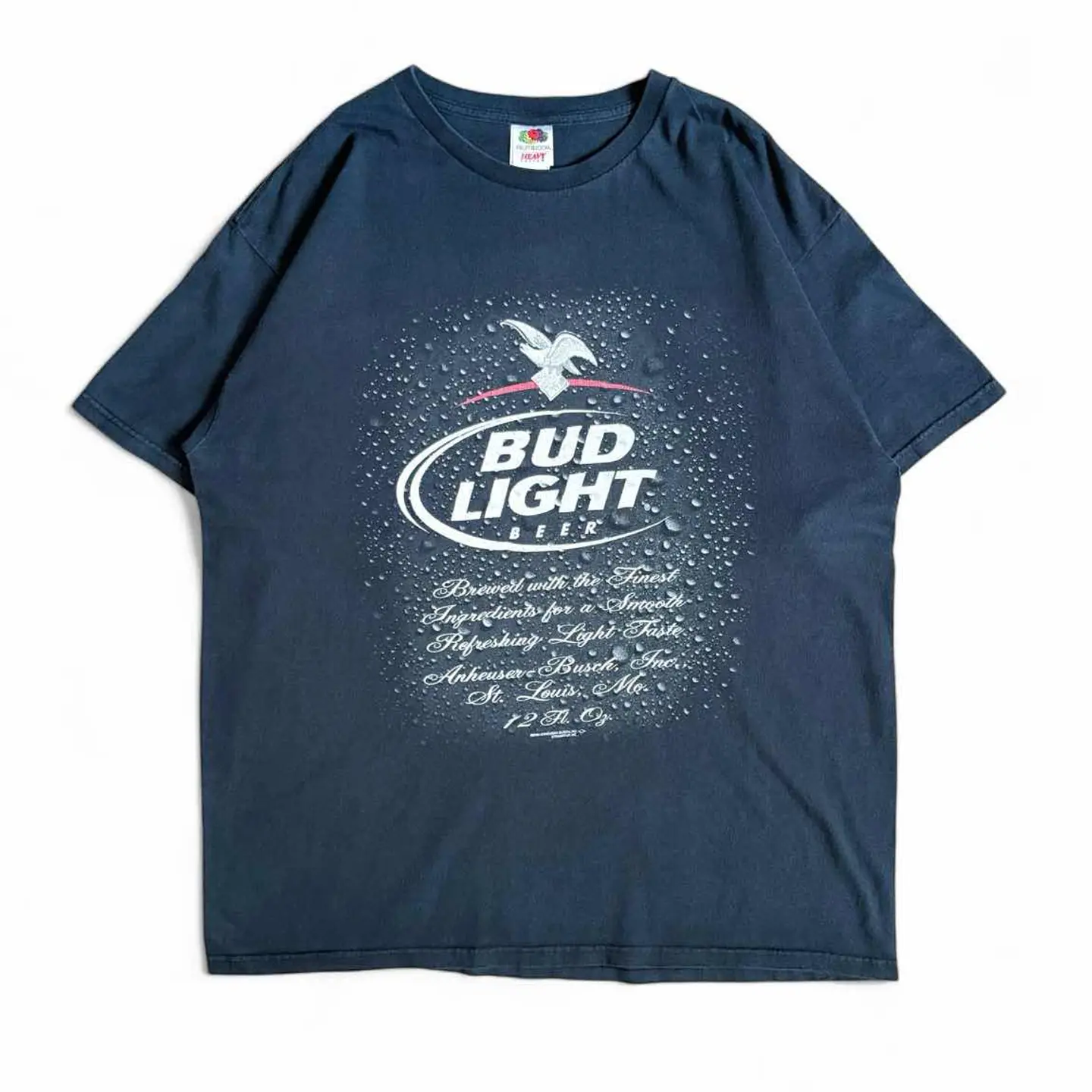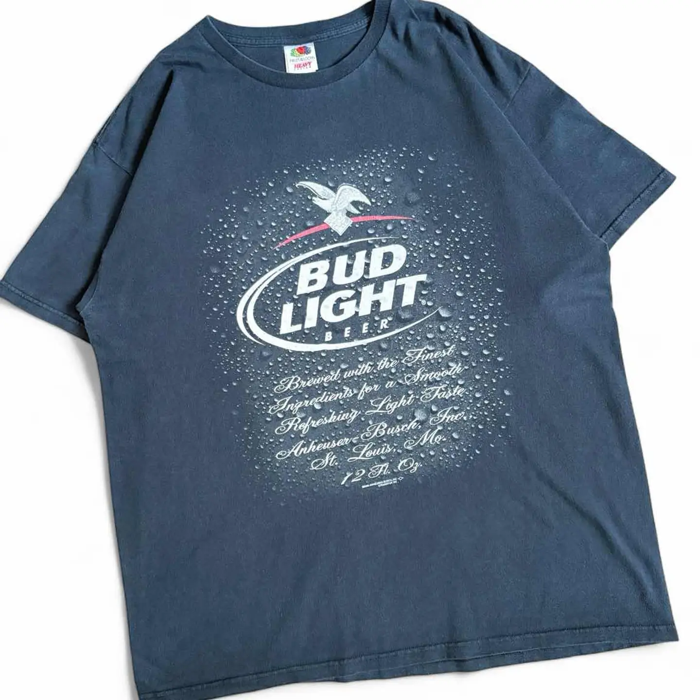 ○商品説明 FRUITOFTHELOOM 初見のBUDLIGHTになります。 ビールの缶についている水滴が完璧に表現された一枚。 "最高級の原料を使用して醸造された、 なめらかで爽やかな軽い味わいのビール" コピーライトもしっかり入っています。 気になった方は是非。 ○サイズ 表記 XL 平置き ・肩幅54cm ・身幅60cm ・袖丈21cm ・着丈72cm ○商品の状態 B A:使用感がほとんどなく、汚れやシミもなし B:多少使用感はあるが、汚れやシミも少ない C:使用感があり、汚れやシミがある D:使用感があり、大きな汚れや破れあり ○色 ネイビー #FRUITOFTHELOOM#フルーツオブザルーム#BUDLIGHT#バドライト#ビール#Tシャツ