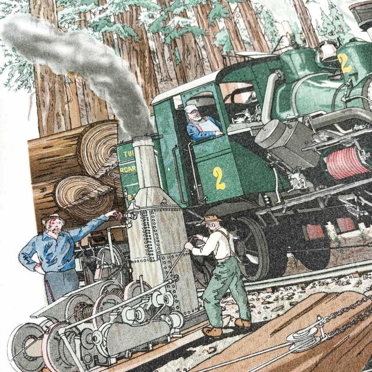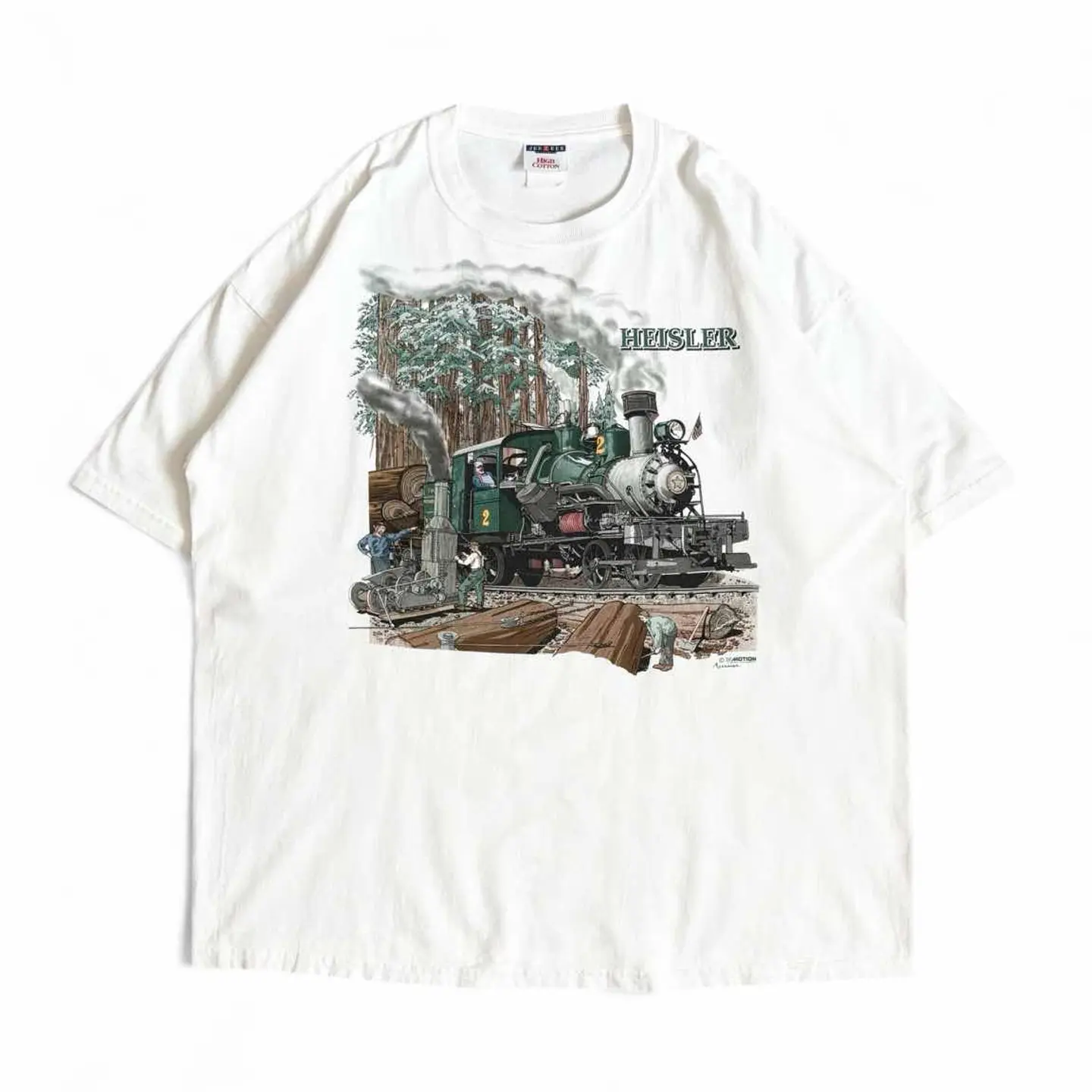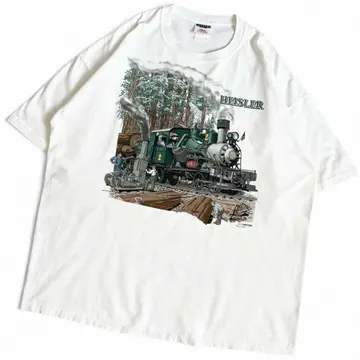 ○商品説明 JERZEES ハイスラー式蒸気機関車がプリント された一枚。 歯車式機関車の主要な3形式の中で最後の型だそうです。 細かいところまでプリントされており◎ 気になった方は是非。 ○サイズ 表記 2XL 平置き ・肩幅64cm ・身幅66cm ・袖丈22cm ・着丈78cm ○商品の状態 B A:使用感がほとんどなく、汚れやシミもなし B:多少使用感はあるが、汚れやシミも少ない C:使用感があり、汚れやシミがある D:使用感があり、大きな汚れや破れあり ○色 ホワイト #JERZEES#ジャージーズ#電車#train#Tシャツ
