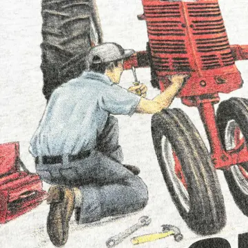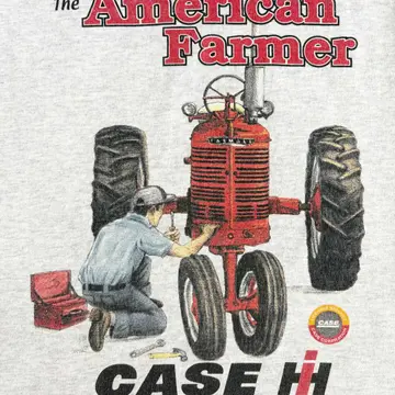 ○商品説明 GILDAN CASE 農業機械を扱っている会社になります。 赤いトラクター「FARMALL」を修理している 男性がデザインされています。 レトロな雰囲気もあって◎ ビビッときた方は是非。 ○サイズ 表記 XL 平置き ・肩幅54cm ・身幅60cm ・袖丈20cm ・着丈70cm ○商品の状態 A A:使用感がほとんどなく、汚れやシミもなし B:多少使用感はあるが、汚れやシミも少ない C:使用感があり、汚れやシミがある D:使用感があり、大きな汚れや破れあり ○色 グレー #GILDAN#ギルダン#CASE#Tシャツ