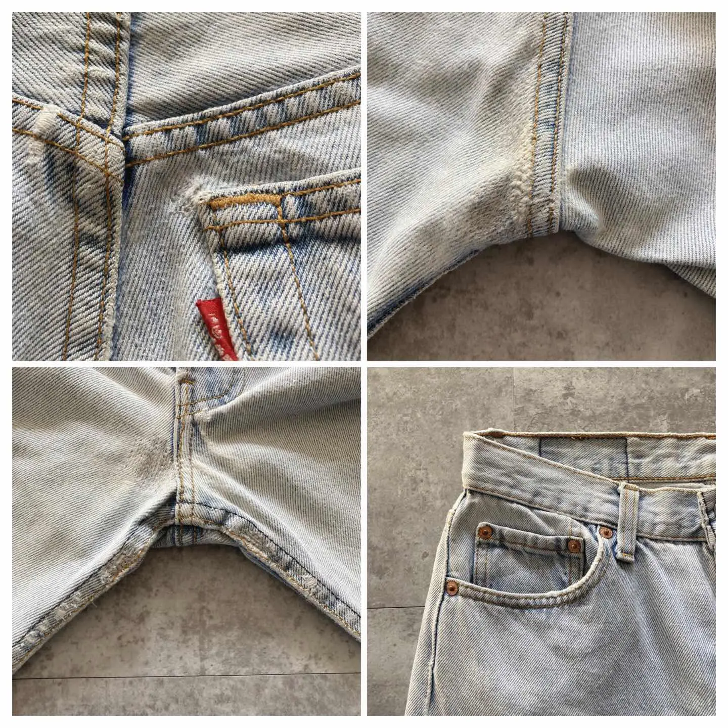 □Size□ 表記→W31 L36 実寸↓ 股上 : 27.5 股下 : 81 ワタリ幅 : 28 裾幅 : 18 ウエスト : 36.5×2 (cm) □Colour□ ・デニム紺 □Material□ ・100%コットン □Condition□ ・後ポケット.股付近にリペアあり ・裾に擦れた傷あり □Caution□ ・当店で取り扱っているアイテムは全て「古着」となっております。そのため、多少の擦れやほつれ、色あせや汚れ等が見られる場合がございます。新品同様の完璧なお品物をお求めの方は当店をご利用されないよう宜しくお願いします。 ・購入された商品につきましては、購入日から起算して「72時間以内の発送」とさせて頂きます。お急ぎの場合はオンラインストアの問い合わせフォームよりご連絡ください。可能な限り対応させて頂きます。 ・購入されら商品は基本的に「お客様都合での返品&キャンセル不可」となっております。決済が確定した時点で注文の取り消し等は不可のとなりますので、よくお考えの上購入検討の方をお願い致します。 【A-4709】