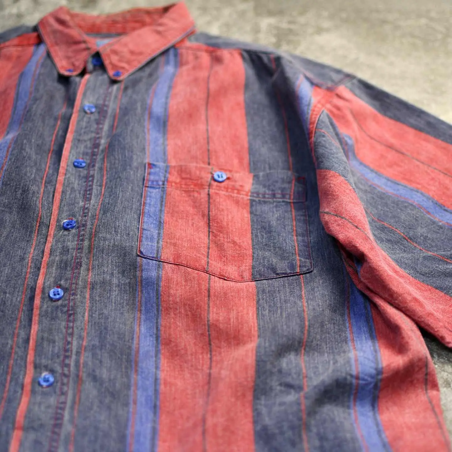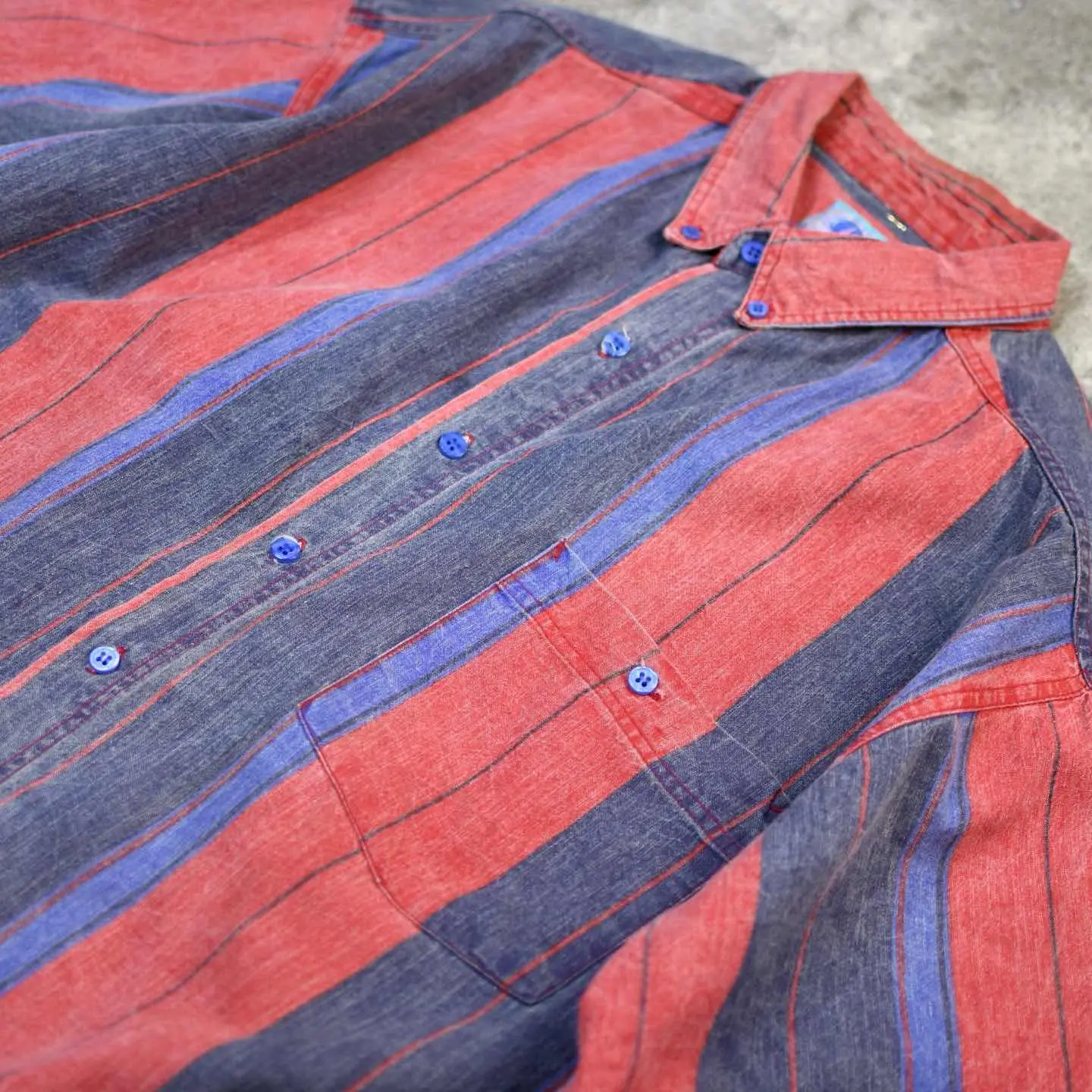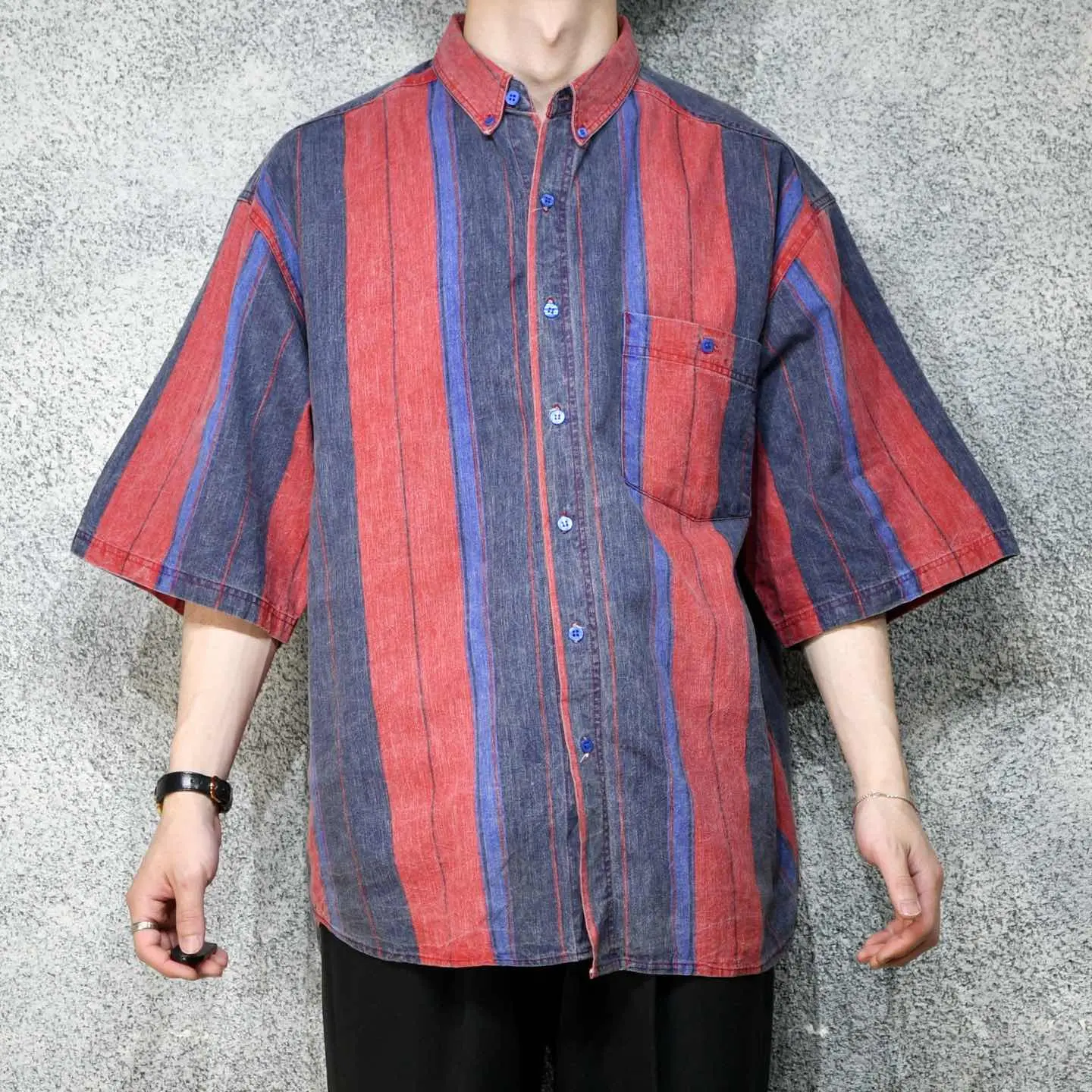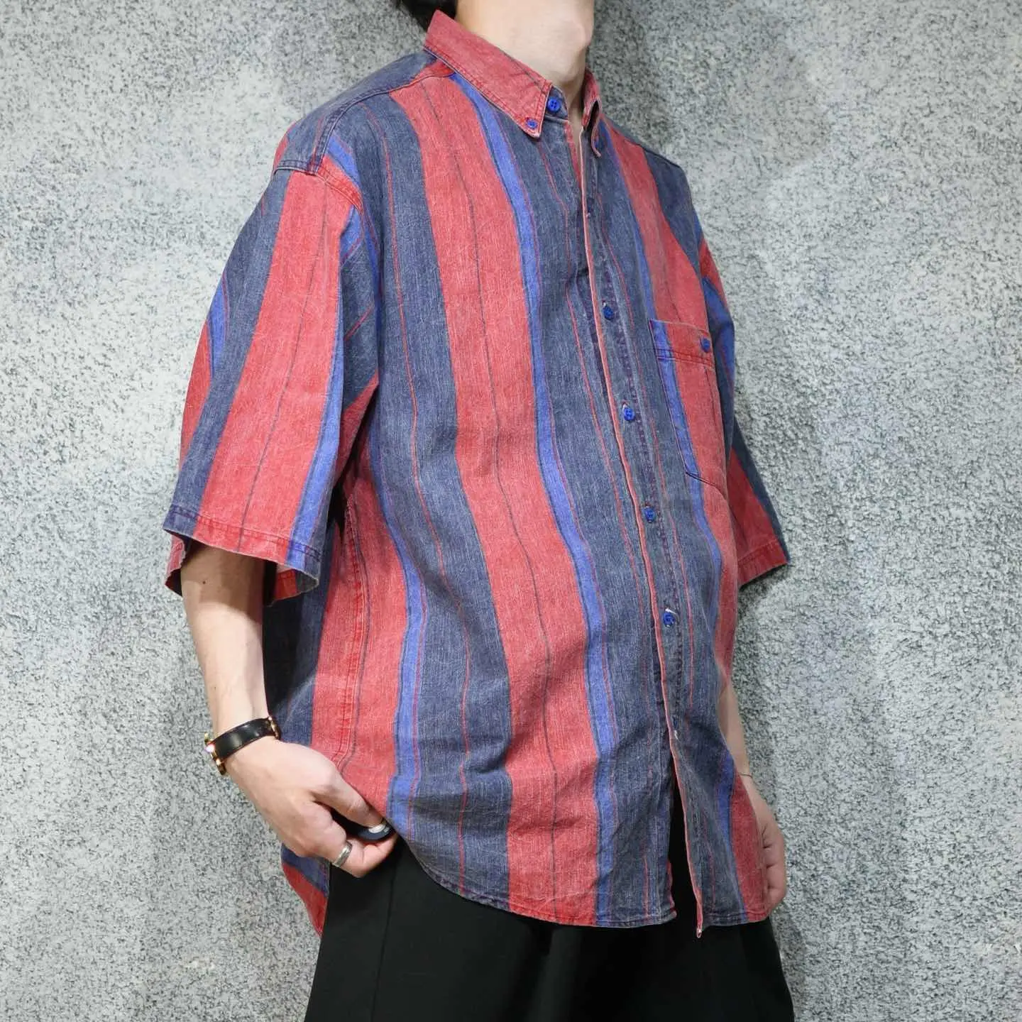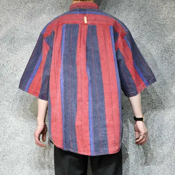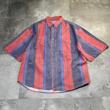 着丈83cm 肩幅56cm 身幅66cm 袖丈33cm fabric/cotton 着用画像 177cm/64kg この色使いでポリ生地だったら、かなりどぎつい 雰囲気になりますが、そこをコットン生地を使い 柔らかい雰囲気をプラス。 また古着だからこそ、そこに表面の毛羽立ちがあり より面白い印象へと変わった逸品。 デニムの様ながしっとした生地で、 これから先の風合いまでも楽しめるシャツです。 ※撮影状況により、実物と多少色が異なる場合が あります。 ※古着を取り扱っているため、気づかない汚れや ほつれ等がある場合がございます。 予めご了承ください。 ※サイズは着用感で選んでおり、表記サイズではございません。 古着 オーバーサイズ old vintage ヴィンテージ used 80's 90's アメリカ古着 ユーロ古着 メンズ レディース POLO RALPH LAUREN Eddie Bauer OLD GAP Eddie Bauer LANDS' END ランズエンド LLBean エルエルビーン オールドギャップ エディーバウアー ラルフローレン ブルックスブラザーズ Brooks Brothers ストライプ柄 ストライプ柄 ボタンダウンシャツ BDシャツ 赤 紫 レッド パープル などがお好きな方 #vintage #オーバーサイズ #old #used #90s #80s #古着 #ヴィンテージ #アメリカ古着 #ユーロ古着 #古着男子 #古着女子 #LLBean #エルエルビーン #EddieBauer #エディーバウアー #oldgap #オールドギャップ #LANDSEND #ランズエンド #NAUTICA #ノーティカ #ラルフローレン #POLORALPHLAUREN #ブルックスブラザーズ #BrooksBrothers #半袖シャツ #デザインシャツ #ストライプ柄 #ストライプシャツ #ボタンダウンシャツ #BDシャツ