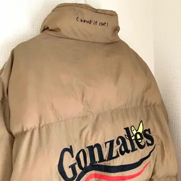 ■デザイン 存在感抜群のブラウンカラーが特徴です。中綿入りで温かさをしっかりキープし、冬の寒さから身を守ります。 長袖デザインで、しっかりとしたフィット感があり、腕に刺繍されたロゴのワンポイントがスタイリッシュなアクセントを加えています。 ■コーディネート カジュアルスタイルにぴったりのアイテムです!Tシャツやタートルネックとの重ね着で、温かみのあるコーディネートが楽しめます。 デニムやチノパンと合わせることで、リラックスした印象を与えつつ、トレンドを抑えたスタイルを演出できます。さらに、スニーカーやブーツを履いて、アクティブな一日にも最適な一着です。 ブランド マークゴンザレス 商品名 マークゴンザレス デカロゴ ダウンジャケット 中綿 ブラウン メンズ 長袖 刺繍 ロゴ ワンポイント L サイズ Lサイズ 肩幅58㎝ 身幅70㎝ 袖丈62㎝ 着丈70㎝ カラー ブラウン系 特記事項 腕、腹部、ロゴ付近等に数ミリ〜1㎝程度の汚れあり #ABY280 #ふくしるべのジャケット
