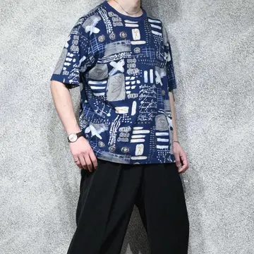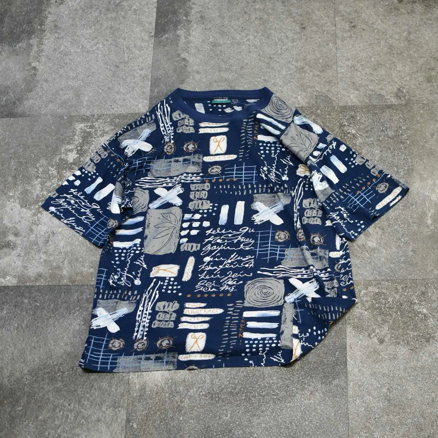着丈69cm 肩幅61cm 身幅63cm 袖丈23cm(シングルステッチ) fabric/質感よりcotton 着用画像 177cm/64kg Tシャツというカテゴリーにおいて 言わずもがな、数少ない総柄。 やはりプリントTシャツとは違った雰囲気を持ち、 柄シャツのような落とし込み方で、 スラックスなどの上品なパンツとの相性も良い Tシャツです。 程よく新鮮味があり、それでいて飛躍し過ぎず 落とし込み易い。 何気にシングルステッチなのが面白い、、、 ぐっとレギュラーです。 ※撮影状況により、実物と多少色が異なる場合が ございます。 ※古着を取り扱っているため、気づかない汚れや ほつれ等がある場合がございます。 予めご了承ください。 ※サイズは着用感で選んでおり、表記サイズではございません。 古着 オーバーサイズ old vintage ヴィンテージ used 80's 90's アメリカ古着 ユーロ古着 メンズ レディース POLO RALPH LAUREN Eddie Bauer OLD GAP Eddie Bauer LANDS' END ランズエンド LLBean エルエルビーン オールドギャップ エディーバウアー ラルフローレン ブルックスブラザーズ Brooks Brothers 紺色 デザイン カラーTシャツ などがお好きな方 #vintage #オーバーサイズ #old #used #90s #80s #古着 #ヴィンテージ #アメリカ古着 #ユーロ古着 #古着男子 #古着女子 #LLBean #エルエルビーン #EddieBauer #エディーバウアー #oldgap #オールドギャップ #LANDSEND #ランズエンド #NAUTICA #ノーティカ #ラルフローレン #POLORALPHLAUREN #ブルックスブラザーズ #BrooksBrothers #カラーTシャツ #Tシャツ #半袖Tシャツ #シングルステッチ #総柄 #柄