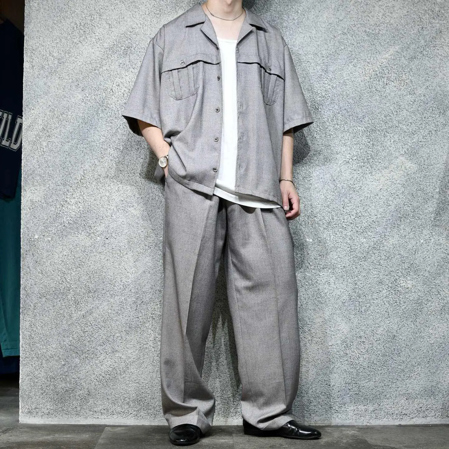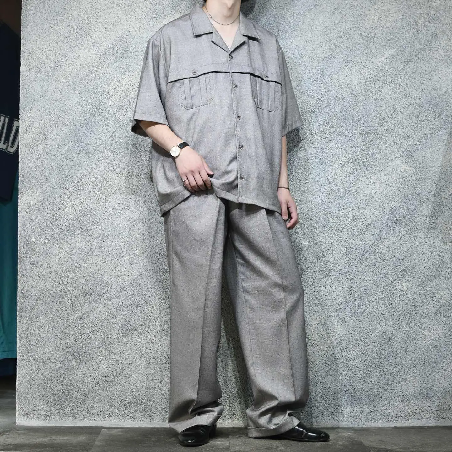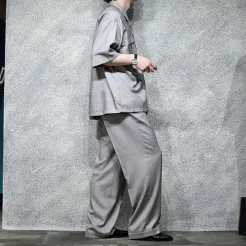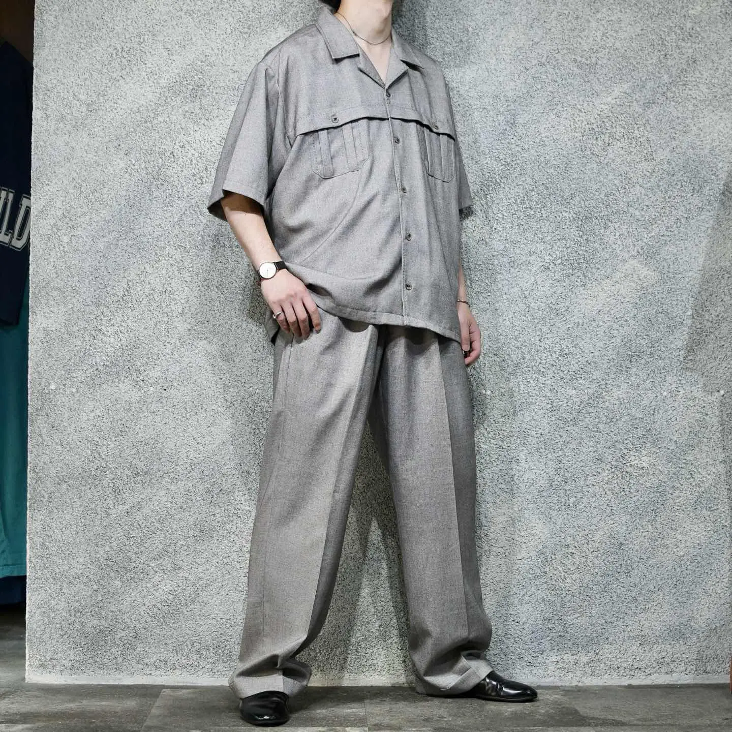 着丈75cm 肩幅57cm 身幅71cm 袖丈30cm ウエスト100cm 総丈109cm 股下80cm わたり41cm 裾幅26.5cm fabric/wool・poly・spandex 着用画像 177cm/64kg 暑い季節、お洒落をするのも苦労しますが こんなセットアップが手元にあれば、 涼しくお洒落を楽しめる気がします。 数少ない半袖セットアップ。 トップスは丈を詰めることで、 幅広い方に合うサイズ感に、 そしてパンツはスラックスでありながら すこぶるワイド。 共に単品使いとしても活躍するのが 嬉しいポイントです。 タンクトップの上からさっと羽織るだけでも 様になるセットアップ、おすすめです。 ※裾上げ等のレングス直しにつきましては、 購入前に、必ずご連絡お願い致します。 ※撮影状況により、実物と多少色が異なる 場合がございます。 ※古着を取り扱っているため、気づかない汚れや ほつれがある場合がございます。 ※サイズは着用感で選んでおり、表記サイズではございません。 オーバーサイズ old vintage ヴィンテージ used 80's 90's アメリカ古着 ユーロ古着 メンズ レディース POLO RALPH LAUREN Eddie Bauer OLD GAP Eddie Bauer LANDS' END ランズエンド LLBean エルエルビーン オールドギャップ エディーバウアー ラルフローレン ブルックスブラザーズ Brooks Brothers オープンカラーシャツ 開襟シャツ デザインシャツ 灰色 スラックス タックパンツ などがお好きな方 #vintage #オーバーサイズ #old #used #90s #80s #古着 #ヴィンテージ #アメリカ古着 #ユーロ古着 #LLBean #エルエルビーン #EddieBauer #エディーバウアー #oldgap #オールドギャップ #LANDSEND #ランズエンド #NAUTICA #ノーティカ #ラルフローレン #POLORALPHLAUREN #ブルックスブラザーズ #BrooksBrothers #半袖シャツ #セットアップ #setup #ワイドパンツ #スラックス #オープンカラーシャツ #開襟シャツ #デザインシャツ