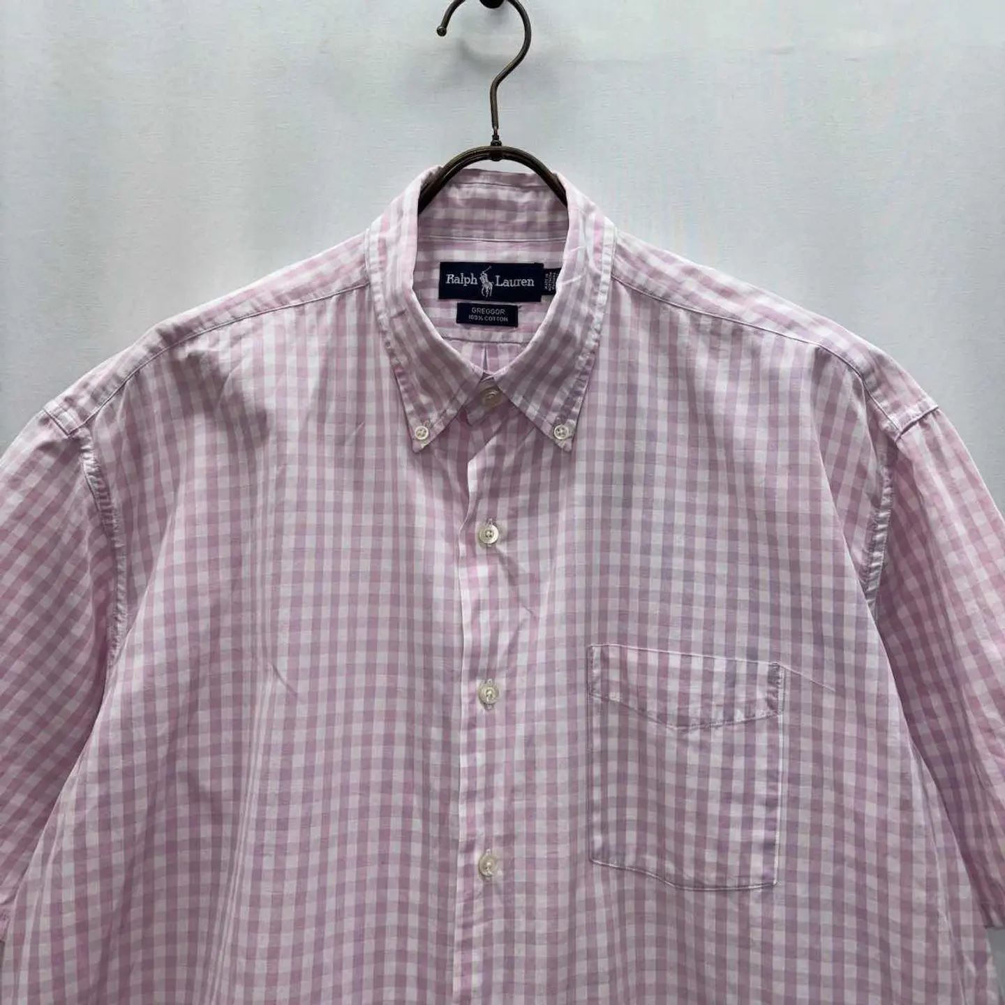 【サイズ表記】 L 【サイズ(cm)】 肩幅55 袖丈25 裄丈53 袖口(平置)20 腕周(平置)26 着丈77.5 身幅(脇下)59 【商品詳細】 生産国 :北マリアナ諸島 ブランド:Ralph Lauren カラー :ピンク 素材 :100%コットン 【コンディション】 B-C(若干紫っぽい所があります。) 【S】新品、展示品、デットストックなど 【A】使用感少なく、状態の良いUSED 【B】使用感あるが、目立つダメージや大きな汚れは無い。 【C】使用感と部分的にダメージや汚れ有り。 【D】使用感があり、大きなダメージや汚れ有り。 ※古着故、多少の着用感や細かい汚れがございます。古着に理解のない方のご購入はお控えいただけると幸いです。 また、撮影状況により色味に若干の差異が生じる事がございます。 【ジャンル】 US古着/US vintage 【その他】 こちらの商品は古着商品となります。 全て1点のみの在庫となります、ご注意ください。