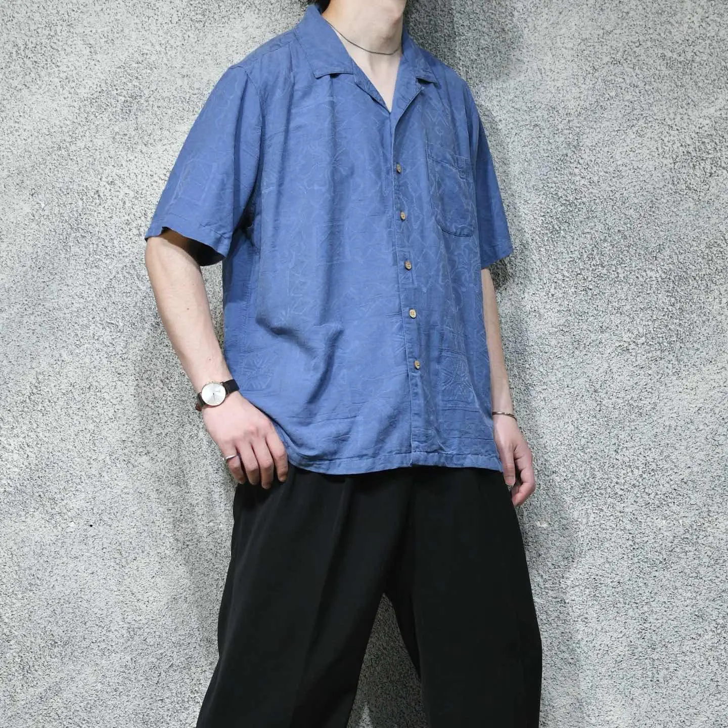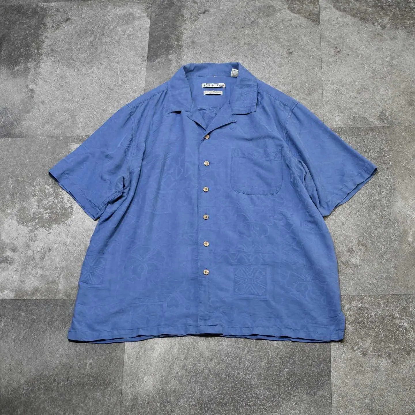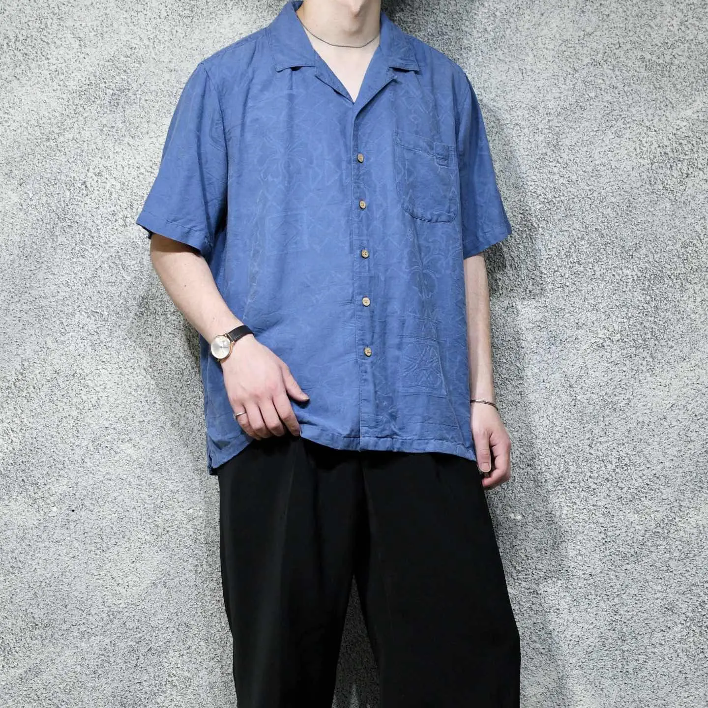 着丈74cm 肩幅51cm 身幅63cm 袖丈28cm fabric/silk 着用画像 177cm/64kg アロハシャツと聞くと、色鮮やかな柄シャツを 思い浮かべる方が多いのではないでしょうか。 そんな中こちらは、プリントされた柄ではなく "織り"として柄が入る、ジャガード織りの アロハシャツ。 大人びな雰囲気と立体感のあるアイテムで、 シンプルながらも程良く個性を兼ね備えた逸品。 パンツを選ばず着れる、汎用性の高い アロハシャツとしておすすめです。 ※撮影状況により、実物と多少色が異なる場合が ございます。 ※古着を取り扱っているため、気づかない汚れや ほつれ等がある場合がございます。 予めご了承ください。 ※サイズは着用感で選んでおり、表記サイズではございません。 古着 オーバーサイズ old vintage ヴィンテージ used 80's 90's アメリカ古着 ユーロ古着 メンズ レディース POLO RALPH LAUREN Eddie Bauer OLD GAP Eddie Bauer LANDS' END ランズエンド LLBean エルエルビーン オールドギャップ エディーバウアー ラルフローレン ブルックスブラザーズ Brooks Brothers 青 水色 ライトブルー オープンカラーシャツ 柄シャツ 総柄シャツ デザインシャツ などがお好きな方 #vintage #オーバーサイズ #old #used #90s #80s #古着 #ヴィンテージ #アメリカ古着 #ユーロ古着 #古着男子 #古着女子 #LLBean #エルエルビーン #EddieBauer #エディーバウアー #oldgap #オールドギャップ #LANDSEND #ランズエンド #NAUTICA #ノーティカ #ラルフローレン #POLORALPHLAUREN #ブルックスブラザーズ #BrooksBrothers #半袖シャツ #アロハシャツ #開襟シャツ #オープンカラーシャツ #シルクシャツ #柄シャツ #総柄シャツ #デザインシャツ