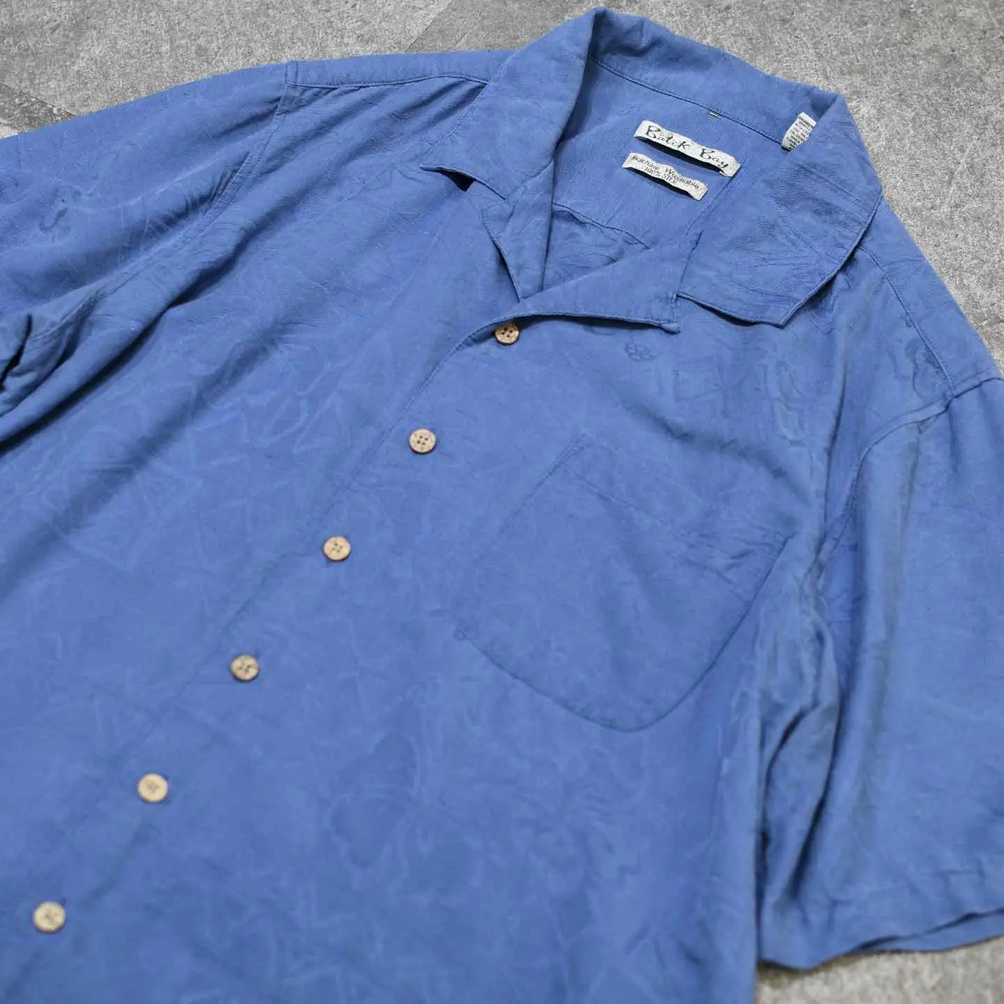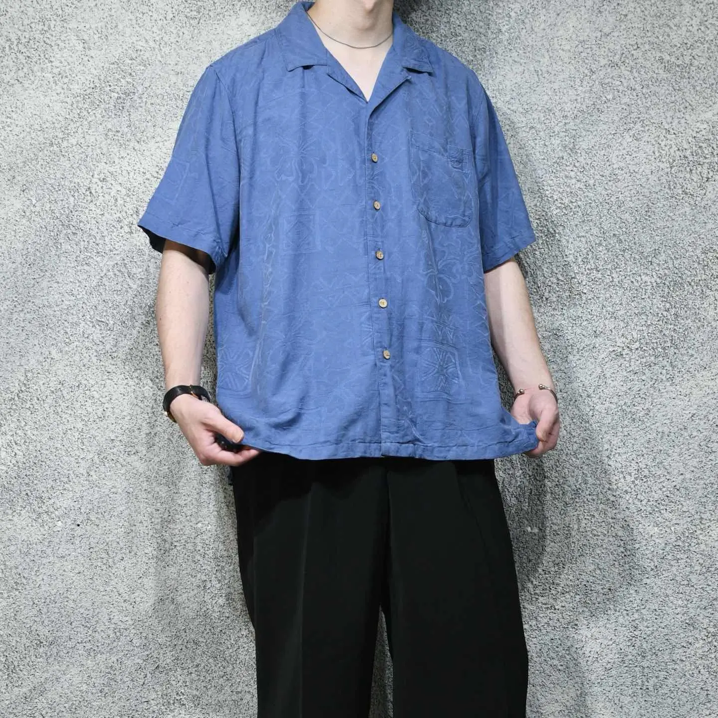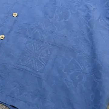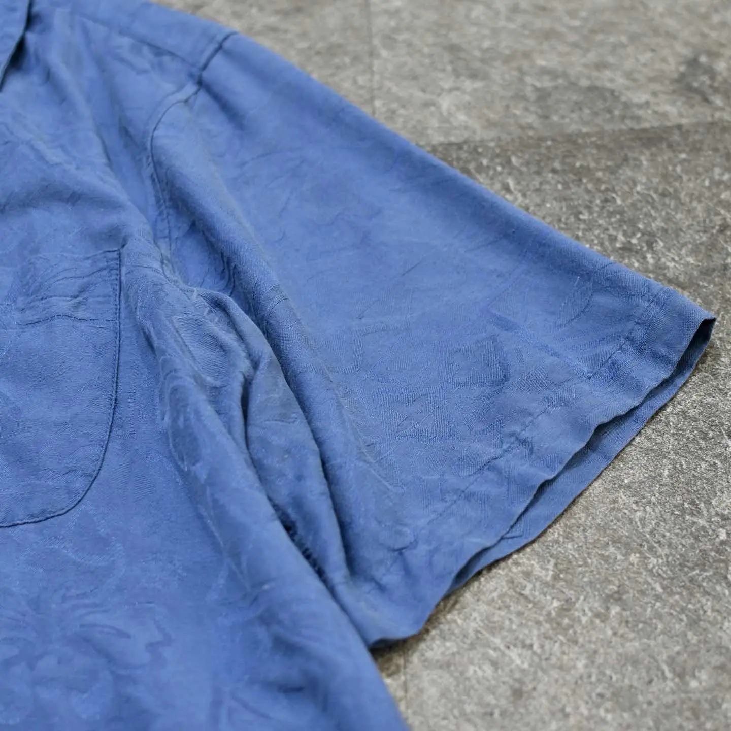 着丈74cm 肩幅51cm 身幅63cm 袖丈28cm fabric/silk 着用画像 177cm/64kg アロハシャツと聞くと、色鮮やかな柄シャツを 思い浮かべる方が多いのではないでしょうか。 そんな中こちらは、プリントされた柄ではなく "織り"として柄が入る、ジャガード織りの アロハシャツ。 大人びな雰囲気と立体感のあるアイテムで、 シンプルながらも程良く個性を兼ね備えた逸品。 パンツを選ばず着れる、汎用性の高い アロハシャツとしておすすめです。 ※撮影状況により、実物と多少色が異なる場合が ございます。 ※古着を取り扱っているため、気づかない汚れや ほつれ等がある場合がございます。 予めご了承ください。 ※サイズは着用感で選んでおり、表記サイズではございません。 古着 オーバーサイズ old vintage ヴィンテージ used 80's 90's アメリカ古着 ユーロ古着 メンズ レディース POLO RALPH LAUREN Eddie Bauer OLD GAP Eddie Bauer LANDS' END ランズエンド LLBean エルエルビーン オールドギャップ エディーバウアー ラルフローレン ブルックスブラザーズ Brooks Brothers 青 水色 ライトブルー オープンカラーシャツ 柄シャツ 総柄シャツ デザインシャツ などがお好きな方 #vintage #オーバーサイズ #old #used #90s #80s #古着 #ヴィンテージ #アメリカ古着 #ユーロ古着 #古着男子 #古着女子 #LLBean #エルエルビーン #EddieBauer #エディーバウアー #oldgap #オールドギャップ #LANDSEND #ランズエンド #NAUTICA #ノーティカ #ラルフローレン #POLORALPHLAUREN #ブルックスブラザーズ #BrooksBrothers #半袖シャツ #アロハシャツ #開襟シャツ #オープンカラーシャツ #シルクシャツ #柄シャツ #総柄シャツ #デザインシャツ