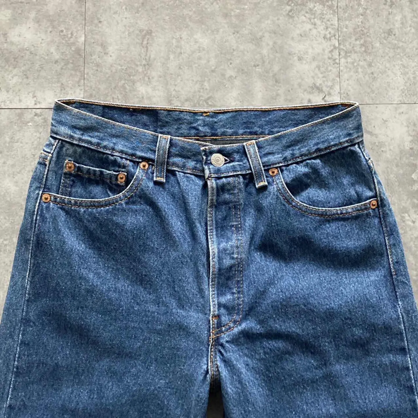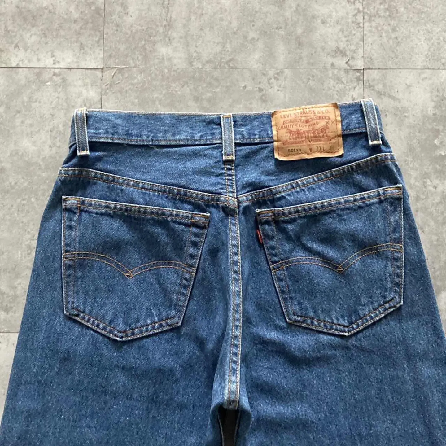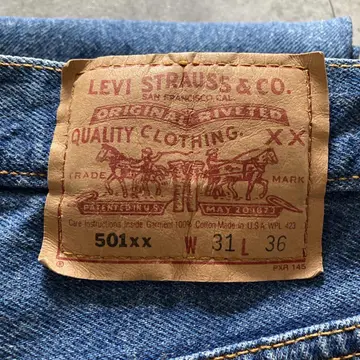 【W30 L34】Levis 501 PREMIUM レザーパッチ ボタンフライ 濃紺 デニムパンツ