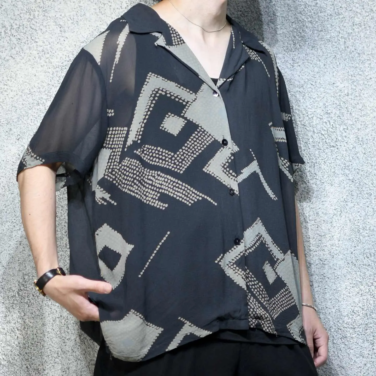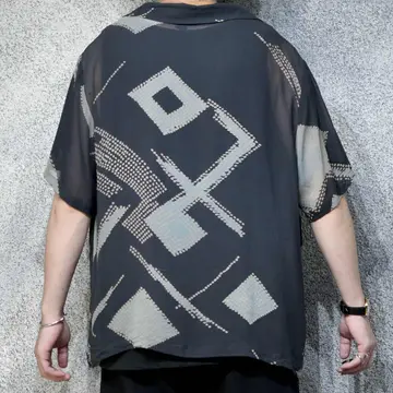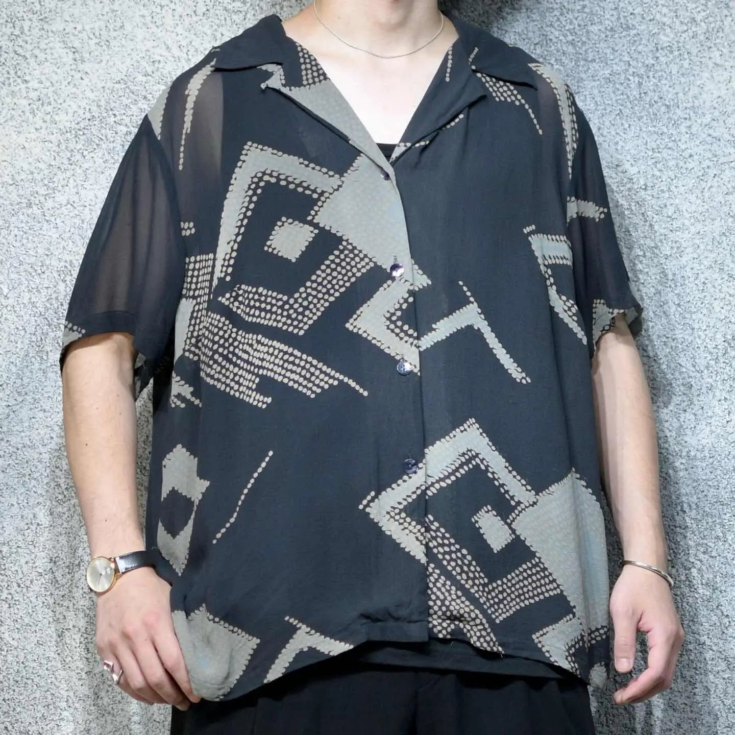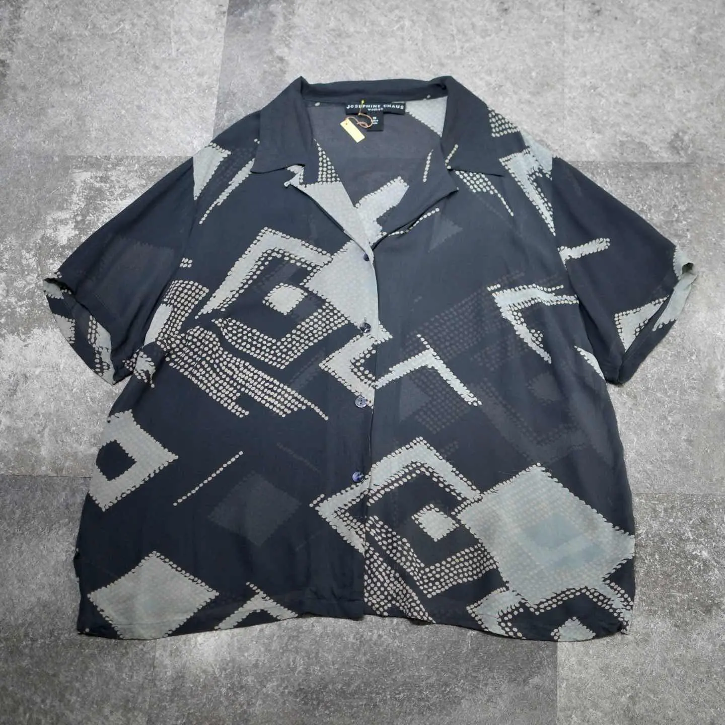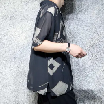 着丈71cm 肩幅53cm 身幅71cm 袖丈28cm fabric/silk 着用画像 177cm/64kg 透け感のあるシルクで仕立てられたシアーシャツ。 レディースの緩いサイズ感の為、 ゆったりした身幅と長くならない丈感という 抜群のシルエット。 タンクトップの上にさっと羽織って、 スラックスでより締める。 胸元にはネックレスなんて◎ ※撮影状況により、実物と多少色が異なる場合が ございます。 ※古着を取り扱っているため、気づかない汚れや ほつれ等がある場合がございます。 予めご了承ください。 ※サイズは着用感で選んでおり、表記サイズではございません。 古着 オーバーサイズ old vintage ヴィンテージ used 80's 90's アメリカ古着 ユーロ古着 メンズ レディース POLO RALPH LAUREN Eddie Bauer OLD GAP Eddie Bauer LANDS' END ランズエンド LLBean エルエルビーン オールドギャップ エディーバウアー ラルフローレン ブルックスブラザーズ Brooks Brothers ブラック 黒 グレー デザインシャツ 総柄シャツ オープンカラーシャツ 開襟シャツ などがお好きな方 #vintage #オーバーサイズ #old #used #90s #80s #古着 #ヴィンテージ #アメリカ古着 #ユーロ古着 #古着男子 #古着女子 #LLBean #エルエルビーン #EddieBauer #エディーバウアー #oldgap #オールドギャップ #LANDSEND #ランズエンド #NAUTICA #ノーティカ #ラルフローレン #POLORALPHLAUREN #ブルックスブラザーズ #BrooksBrothers #半袖シャツ #シルクシャツ #デザインシャツ #開襟シャツ #オープンカラーシャツ #柄シャツ #総柄シャツ