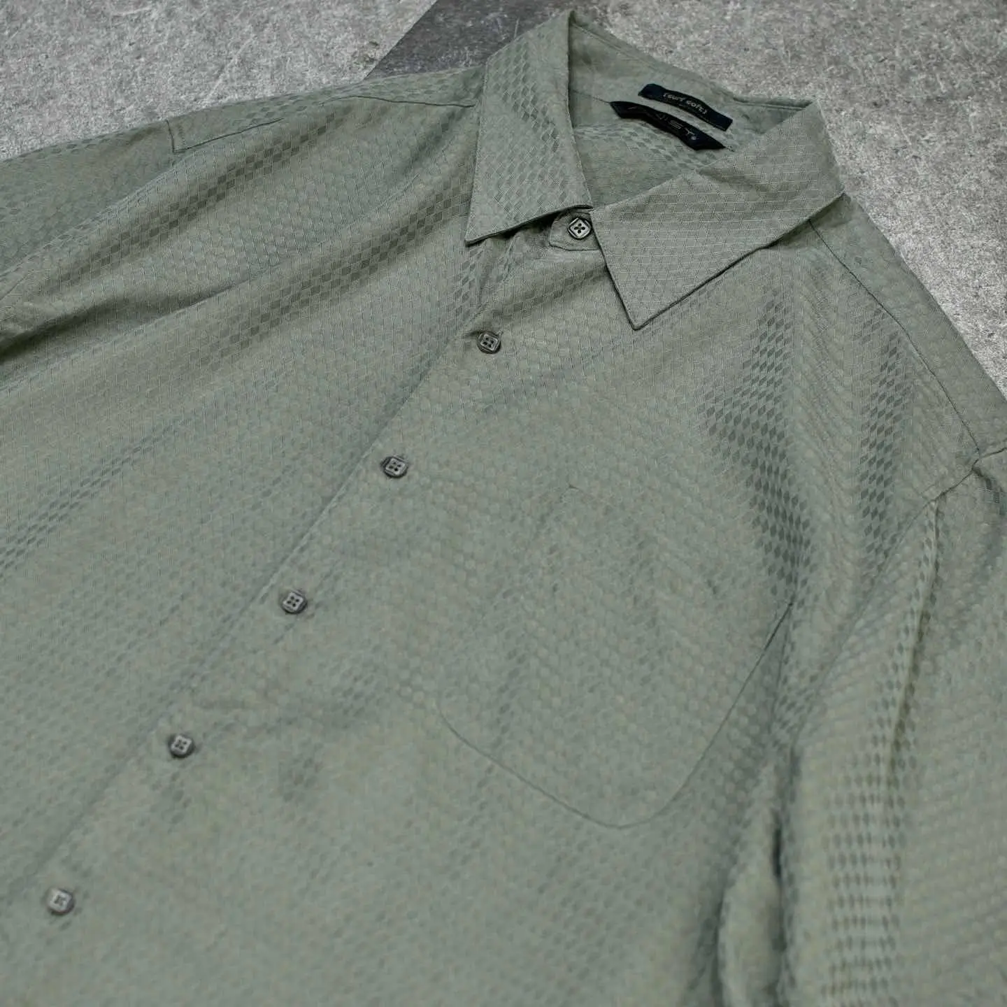 着丈79cm 肩幅55cm 身幅71cm 袖丈28cm fabric/silk・poly 着用画像 177cm/64kg 織りで表現された柄と、シルクの繊細な発色。 この色合いだからこそ、其れがより顕著に表れ 雰囲気へと昇華した逸品。 主張が激し過ぎず、それでいて塩梅の良い個性を 持ち合わせたアイテムを多く手掛ける"AXIST" ドレープ感のあるシルエットから、品のある柄、 ボタンまで、キレイにコーデへ落とし込める アイテムです。 ※撮影状況により、実物と多少色が異なる場合が ございます。 ※古着を取り扱っているため、気づかない汚れや ほつれ等がある場合がございます。 予めご了承ください。 ※サイズは着用感で選んでおり、表記サイズではございません。 古着 オーバーサイズ old vintage ヴィンテージ used 80's 90's アメリカ古着 ユーロ古着 メンズ レディース POLO RALPH LAUREN Eddie Bauer OLD GAP Eddie Bauer LANDS' END ランズエンド LLBean エルエルビーン オールドギャップ エディーバウアー ラルフローレン ブルックスブラザーズ Brooks Brothers カーキ 緑 深緑 グリーン 柄シャツ 総柄シャツ などがお好きな方 #vintage #オーバーサイズ #old #used #90s #80s #古着 #ヴィンテージ #アメリカ古着 #ユーロ古着 #古着男子 #古着女子 #LLBean #エルエルビーン #EddieBauer #エディーバウアー #oldgap #オールドギャップ #LANDSEND #ランズエンド #NAUTICA #ノーティカ #ラルフローレン #POLORALPHLAUREN #ブルックスブラザーズ #BrooksBrothers #半袖シャツ #デザインシャツ #柄シャツ #総柄シャツ #シルクシャツ #ジャガード織り