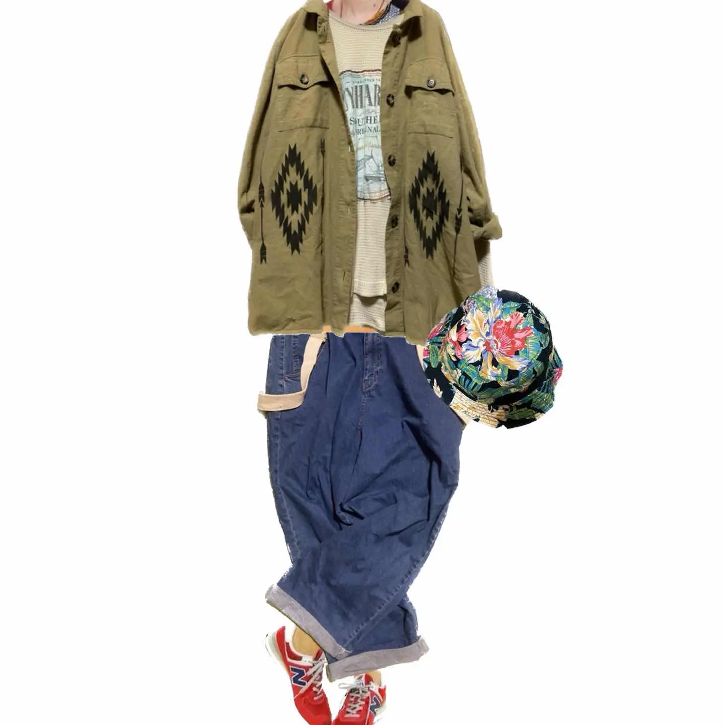 90s vintage リメイク カーブデニム バティック柄 大人シルエット