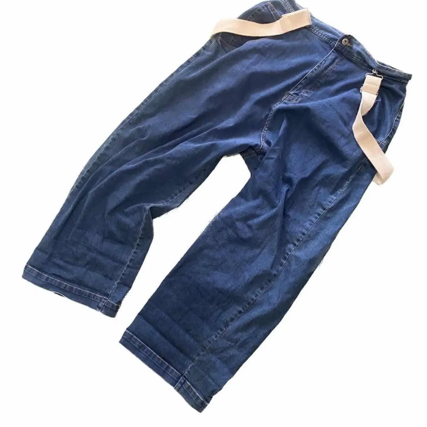 立体裁断 W84までOK 90s ゆるテパ vintage デニム 当店限定 【シルエットがおしゃれなデニムは、あなたの 相棒になる事間違い無し!!】 90年代の廃盤ブランドによるもののsampleで 他では手に入らない特別な逸品です。しかもバック立体裁断された、技術が集結!! デザインのポイントは、ゆったりしたラインが絶妙で、ラフに着こなすことができるところです!サスペンダーのアクセントで、トレンド感を高めており、単体でコーデの主役にもぴったりです。 シャツやTシャツと合わせることで、よりカジュアルなスタイルを楽しめます。また、デニム素材なので、年中通して活躍しますよ。 ボトムは、シルエットが、いいのを一本持ってると確実にヘビロテ確定です、 是非この機会にあなたの、お洒落ライフのお供にして下さい。 当店フルリメイクで、コーデしました、是非お時間あるとき 他の商品も、ご覧下さい!! ▷color◁ 平置きが、実物に限りなく近いです ※お使いのブラウザにより、色が異なって見える場合がございます、 ▷size◁ 平置き片面採寸【㎝表記】 表記sizeLくらいですが、サスペンダーあるので それ以外の方も対応また、僕も安全ピンで折り返しという技術使って、ベルトなしで着用してます 【※ウエストのみ、メジャーで一周採寸】 ウエスト84 股上38 股下64 腿渡り幅28 裾幅23 モデル170㎝/普通体型、30インチくらいいつも 着用な体型の私がゆるっと着用、 ▷material◁ デニム 生デニムみたいな、バキバキじゃないから快適かつ、年中いけます、 ▷condition◁ サンプル状態よいですし、これから育てる楽しみ抜群の一本!! ※入念にチェックは、しておりますが、vintage/usedの特性ご理解下さい #ゆるデニム #fudge #バイカー #90sデニム