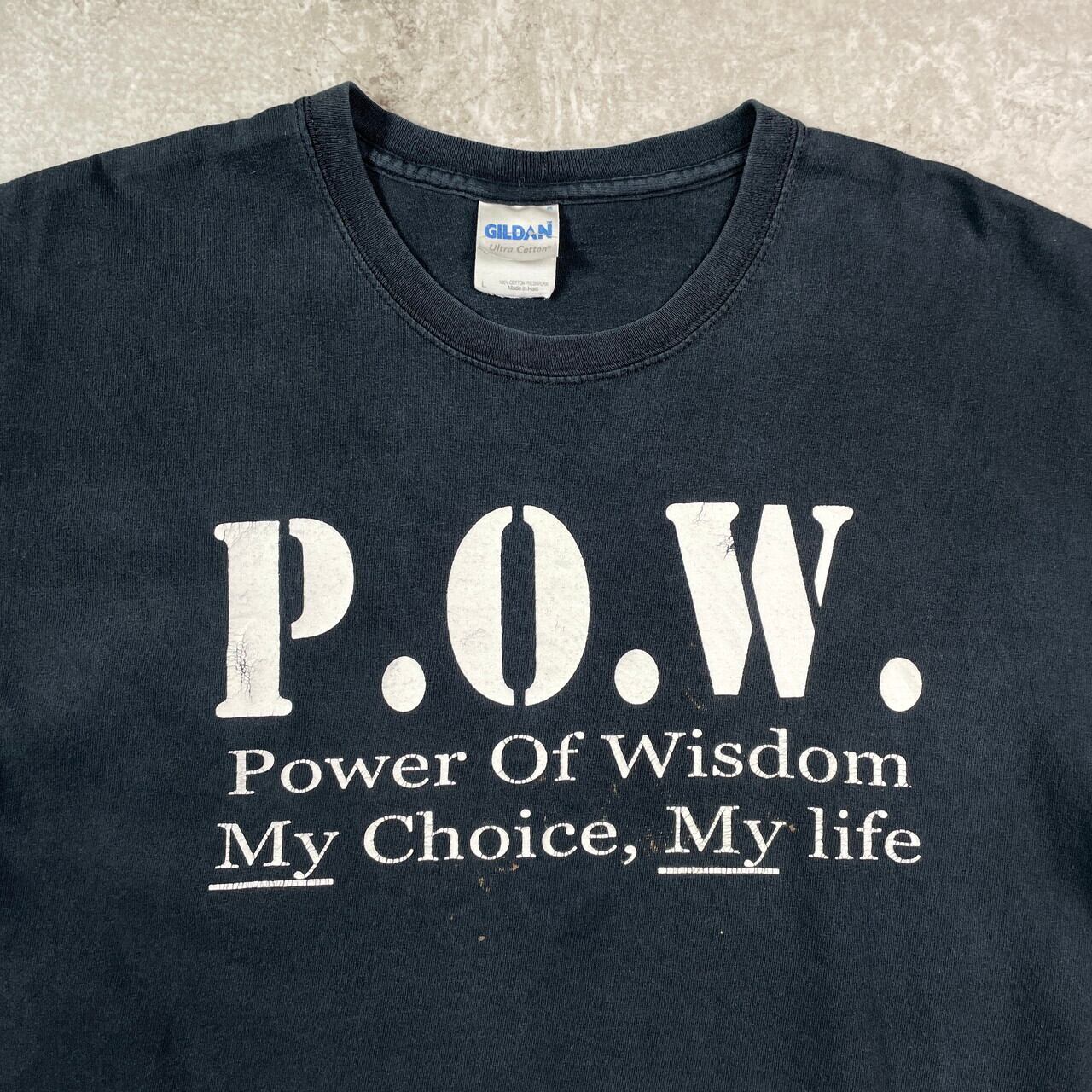 ■P.O.W メッセージ プリントTシャツ メンズL 古着 黒【Tシャツ】/ブラック 【ブランド】GILDAN ギルダン 【サイズ】表記 L ※計測値をご確認ください。 着丈…72 身幅…55 肩幅…50 袖丈…21 【生産国】ハイチ製 【素材】コットン100% 【状態】フロントや袖に汚れ、バック裾付近に穴がございます。 画像にてご確認ください。 【c250714003】 ※古着は洗濯、検品などのケアを行っております。(新品・デッドストックは洗濯していません。) ※モニターの発色により実物と異なる場合がございます。予めご了承ください。 ※ 海外直輸入USED品になります。