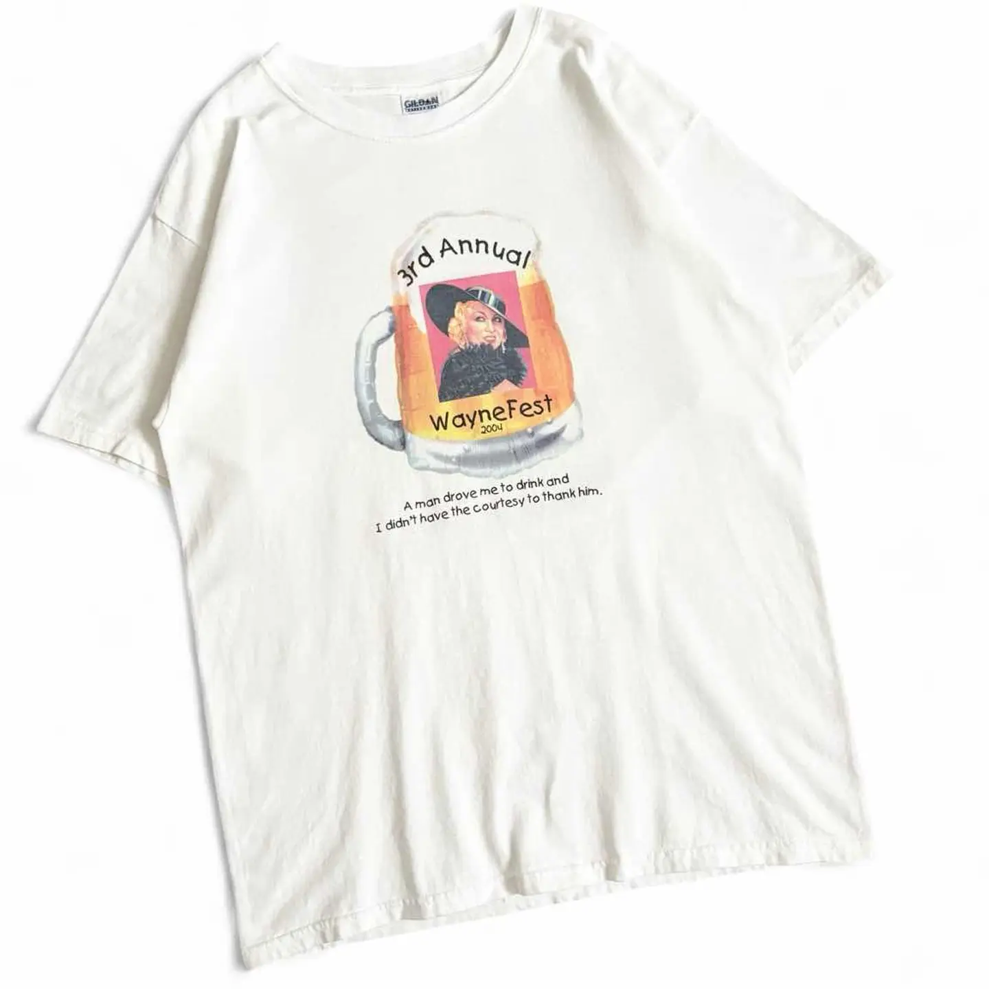 ○商品説明 GILDAN 良いデザインの一枚。 NO WHINE ワインじゃなくてビールを飲めということでしょうか。 ビビッときた方は是非。 ○サイズ 表記L 平置き ・肩幅54cm ・身幅54.5cm ・袖丈21.5cm ・着丈71.5cm ○商品の状態B A:使用感がほとんどなく、汚れやシミもなし B:多少使用感はあるが、汚れやシミも少ない C:使用感があり、汚れやシミがある D:使用感があり、大きな汚れや破れあり ○色 ホワイト #GILDAN#ギルダン#wine#Tシャツ