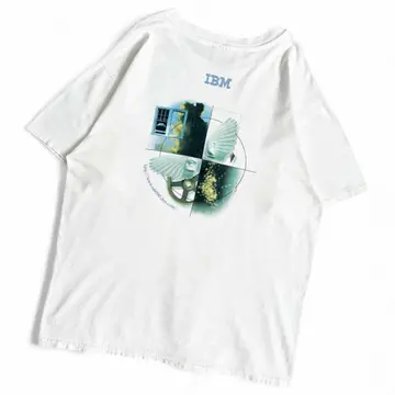 ○商品説明 90s USA製 Hanes IBM アメリカ合衆国ニューヨーク州アーモンクに本社を置く 世界最大手規模のIT企業になります。 歯車、羽、窓、星空など象徴的なモチーフを 4分割で構成し、革新性やテクノロジーの広がりを 表現しています。 IBMらしい秀逸なデザインです。 ○サイズ 表記XL 平置き ・肩幅56cm ・身幅58cm ・袖丈21cm ・着丈71cm ○商品の状態B A:使用感がほとんどなく、汚れやシミもなし B:多少使用感はあるが、汚れやシミも少ない C:使用感があり、汚れやシミがある D:使用感があり、大きな汚れや破れあり ○色 ホワイト #90s#USA製#Hanes#ヘインズ#IBM#Tシャツ