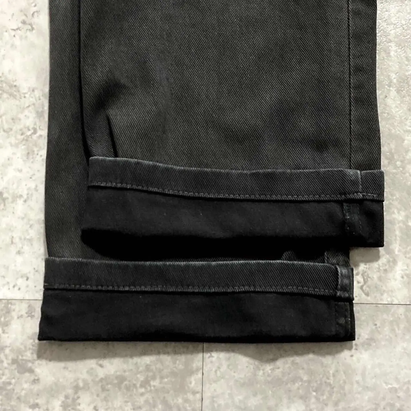□Size□ 表記→W34 L36 実寸↓ 股上 : 28.5 股下 : 76 ワタリ幅 : 32 裾幅 : 21 ウエスト : 41.5×2 (cm) □Colour□ ・ブラック (黒) □Material□ ・100%コットン □Condition□ ・後太もも.膝付近に色褪せあり □Caution□ ・当店で取り扱っているアイテムは全て「古着」となっております。そのため、多少の擦れやほつれ、色あせや汚れ等が見られる場合がございます。新品同様の完璧なお品物をお求めの方は当店をご利用されないよう宜しくお願いします。 ・購入された商品につきましては、購入日から起算して「72時間以内の発送」とさせて頂きます。お急ぎの場合はオンラインストアの問い合わせフォームよりご連絡ください。可能な限り対応させて頂きます。 ・購入されら商品は基本的に「お客様都合での返品&キャンセル不可」となっております。決済が確定した時点で注文の取り消し等は不可のとなりますので、よくお考えの上購入検討の方をお願い致します。 【A-5674】