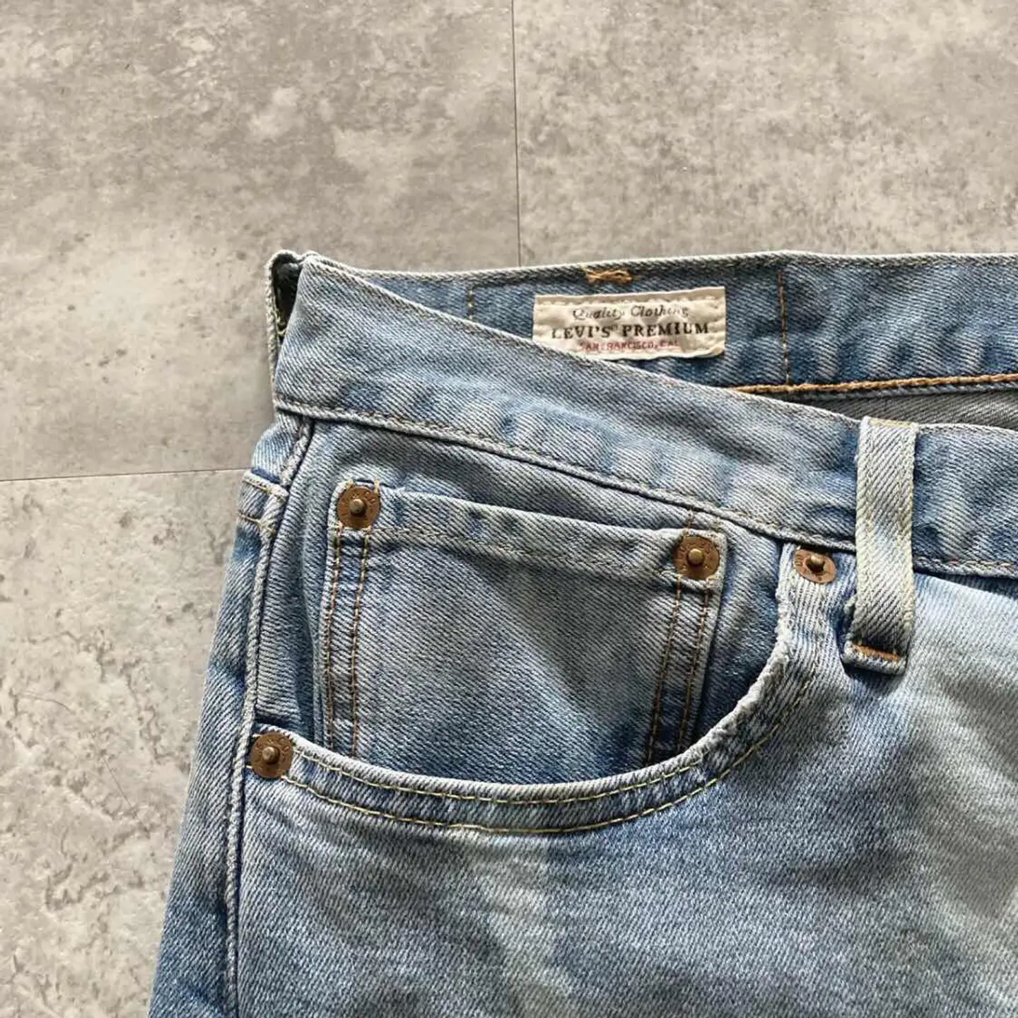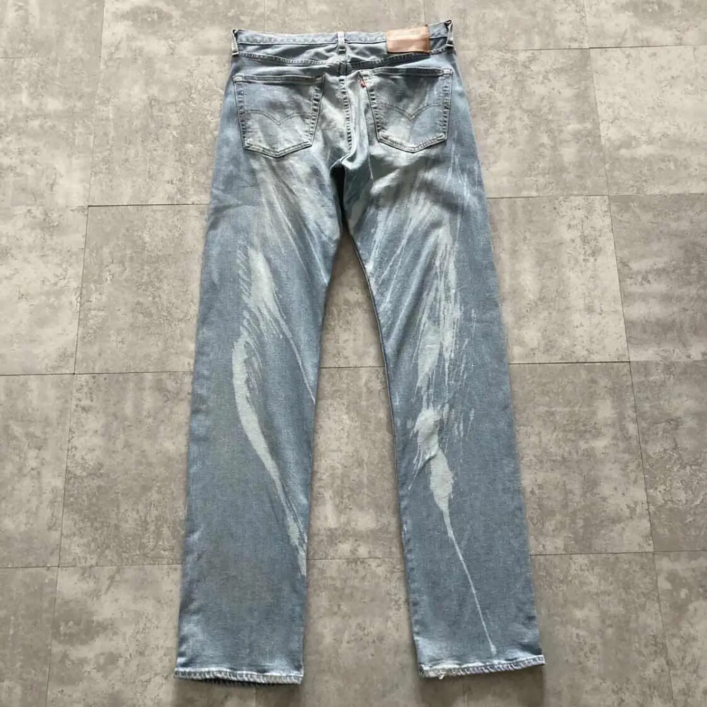 【W30 L34】Levis 501 PREMIUM レザーパッチ ボタンフライ 濃紺 デニムパンツ