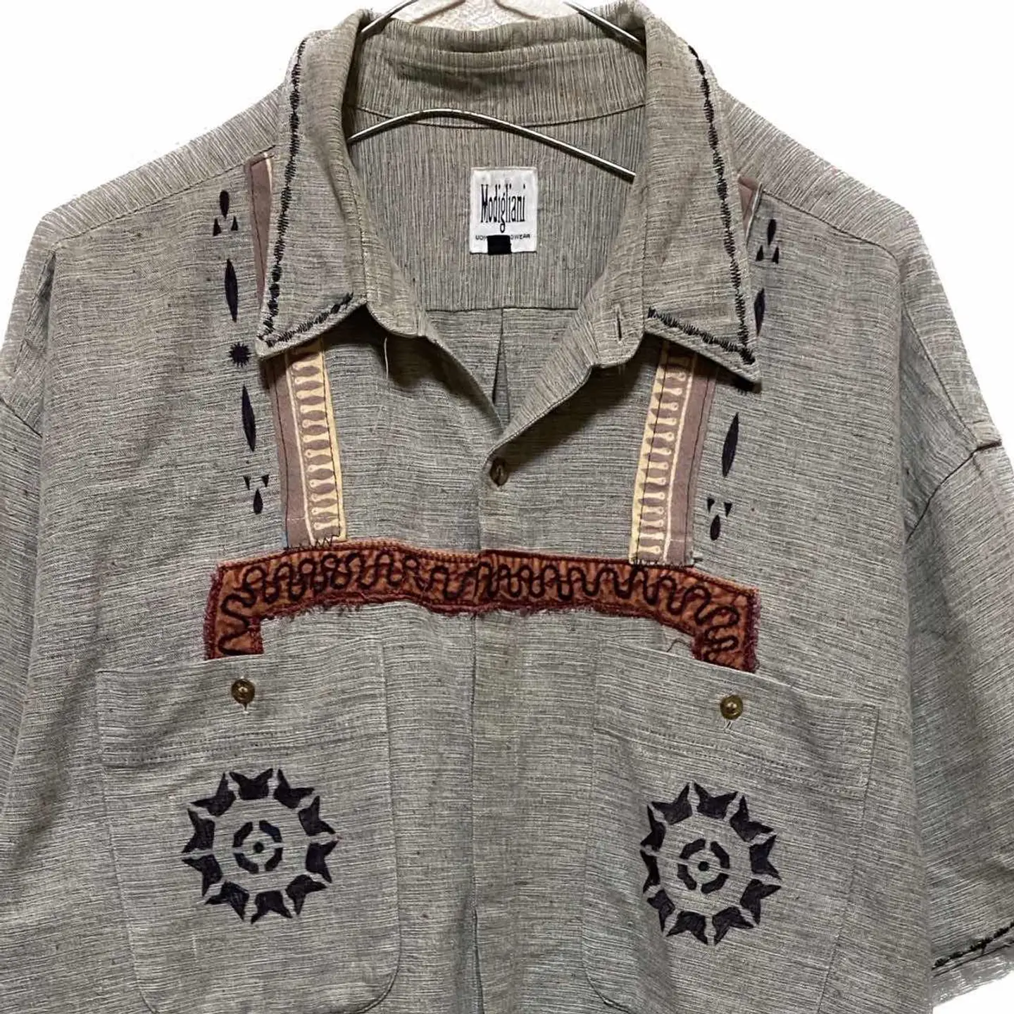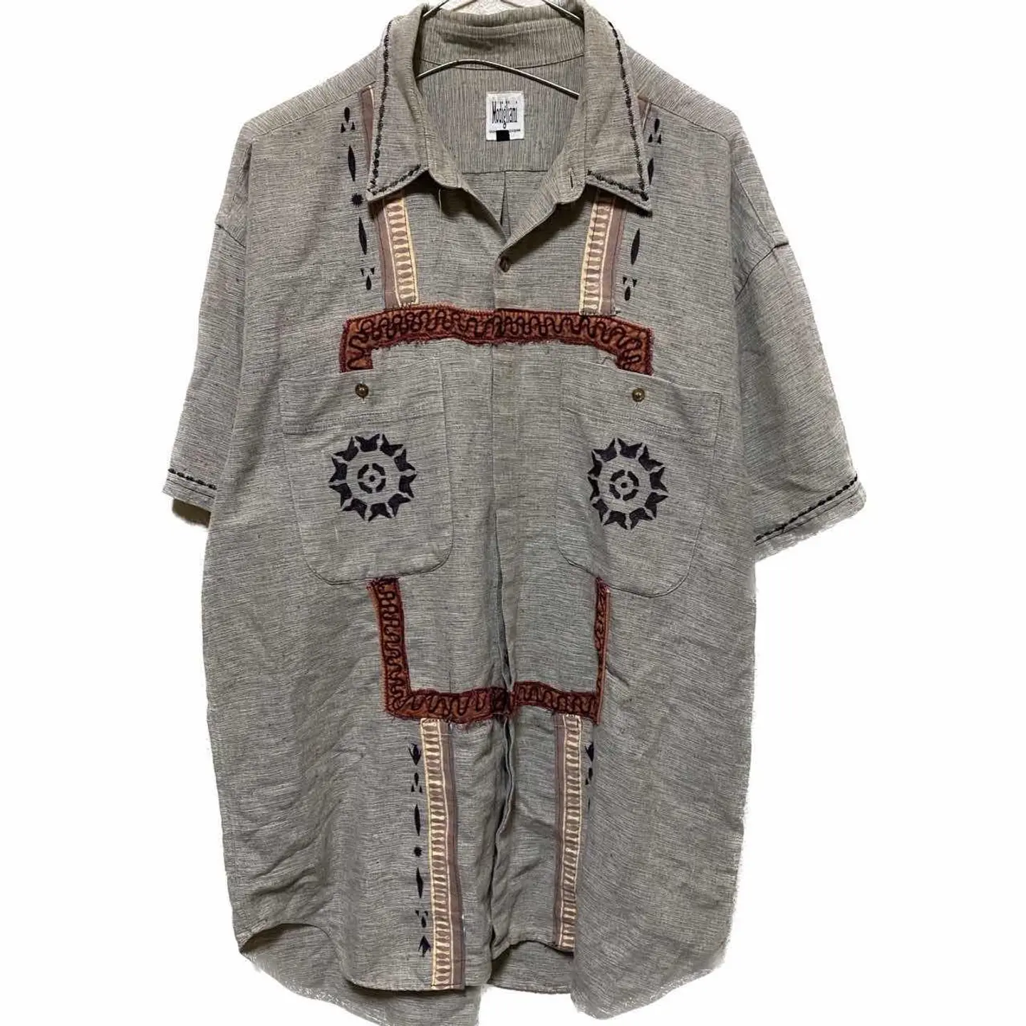 70-80s ITALY vintageリメイク双糸天竺エキゾチック再構築シャツ 洋裁学校卒だからできる当店の力作リメイク 新商品完成です、個性派からシンプルまで対応するデザインをとことん施しました おそらくですが、70年代から80年初期のヴィンテージです。、ITALY明記に.比翼.見極め 1番簡単なのは 長めのシルエットにえりですね、後はデザインボタンと、素材です 双糸天竺 しかも閂風ミックス 相当な技術を集結して、1着を、質が良い無地のシャツなら、 とことん力を入れてリメイクしようと思い、 刺繍、エキゾチックな柄の70年のヴィンテージの、パーツを使い縫い上げました、 さらに手書きのヨーロピアンアート施しました、 重ね着でもメインでもいけるサイジングなんで 年中活躍します。流行にリメイクは左右されません。だって世界に1つなんで、 ぜひおしゃれ好きなあなたに、購入してほしい着です リメイクオーバーオールと、デニムコーデのせました、参考に ▷color◁ ヘザーグレー ※ブラウザで異なる場合ありますがかなり実物には、近づけてます、 ▷size◁ 平置き片面採寸【㎝表記】 表記size L表記ですが、人によりますが、XLの方もいけますね、身幅58なんで60からが、日本はXLです、サイド1センチの差なんてほぼわならないんで、よってカテゴリーはXLえらんでます、 着丈/80 身幅/58 肩幅/58DS 袖丈 /36 DSは袖はハンガー採寸 ※多少の誤差は理解下さい モデル170センチ 普通体型 【参考例TシャツMがジャストくらい】の私が、ガンガン重ね着できます、ゆったり、 【素材】 双糸天竺ミックス16番、コットンで最高に手間かけた半端ない生地 【状態】 綺麗です、そもそも、美品を、ケチらず、リメイクしてます、綺麗です、 検品、洗濯、検品で、3回チェックして発送しますので、ご安心して、お買い求め下さい!! #刺繍シャツ #ヴィンテージ #ワコマリア #ネペンテス #70年ヴィンテージシャツ #イタリア #個性派リメイク #再構築