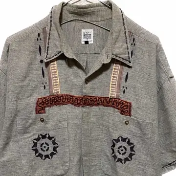 70s R.B.U シャツ リメイク猫目ボタン オルテガ 刺繍