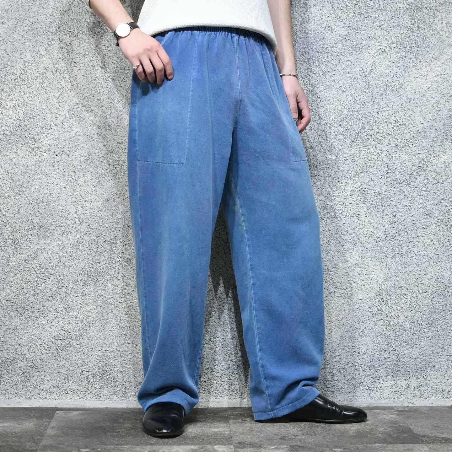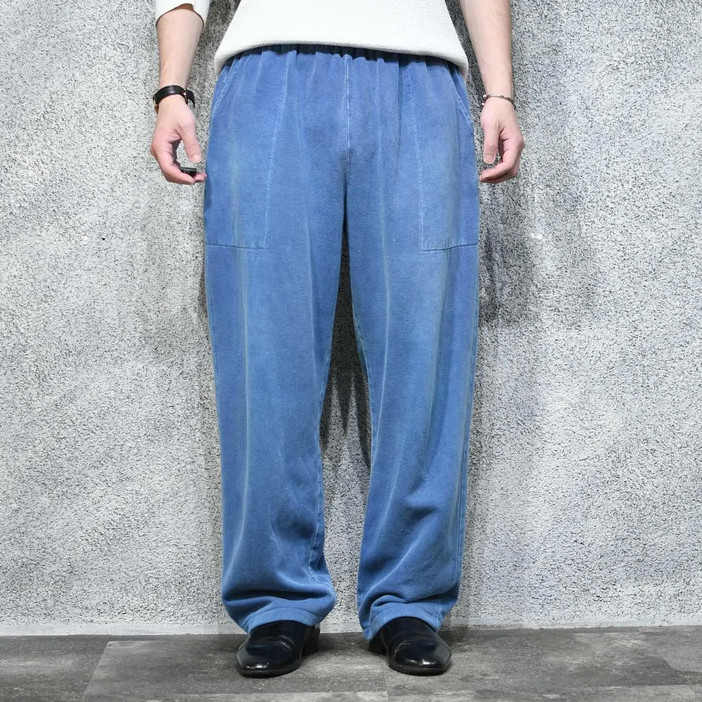 ウエスト~102cm(ドローコードあり) 総丈103cm 股下72cm わたり37cm 裾幅23cm fabric/cotton made in USA 着用画像 177cm/64kg ピグメントダイ加工されたかのような、 独特なフェードをしたスウェットパンツ。 簡易的でありながら、妙に惹かれる ベイカーポケットのような大きなポケット◎ 元々裾にはリブが付いていましたが、 取り外し裾までストンと落ちるシルエットへ。 その為、幅広いコーデに落とし込みやすい シルエットで、尚且つ色で差別化も出来る 一本へと昇華。 なかなか無い色合い...おすすめです。 ※背面に汚れあり。 ※裾上げ等のレングス直しにつきましては、 裾上げ方法によっては 購入前に、必ずご連絡お願い致します。 また、購入後の直しには対応出来かねます。 ※撮影状況により、実物と多少色が異なる 場合がございます。 ※古着を取り扱っているため、気づかない汚れや ほつれがある場合がございます。 予めご了承ください。 ※サイズは着用感で選んでおり、表記サイズではございません。 古着 オーバーサイズ old vintage ヴィンテージ used 80's 90's アメリカ古着 ユーロ古着 メンズ レディース POLO RALPH LAUREN Eddie Bauer OLD GAP Eddie Bauer LANDS' END ランズエンド LLBean エルエルビーン オールドギャップ エディーバウアー ラルフローレン ブルックスブラザーズ Brooks Brothers 青 ブルー 水色 ライトブルー などがお好きな方 #vintage #オーバーサイズ #old #used #90s #80s #古着 #ヴィンテージ #アメリカ古着 #ユーロ古着 #古着男子 #古着女子 #LLBean #エルエルビーン #EddieBauer #エディーバウアー #oldgap #オールドギャップ #LANDSEND #ランズエンド #NAUTICA #ノーティカ #ラルフローレン #POLORALPHLAUREN #ブルックスブラザーズ #BrooksBrothers #スウェットパンツ #ワイドパンツ #イージーパンツ #ピグメントダイ #フェード