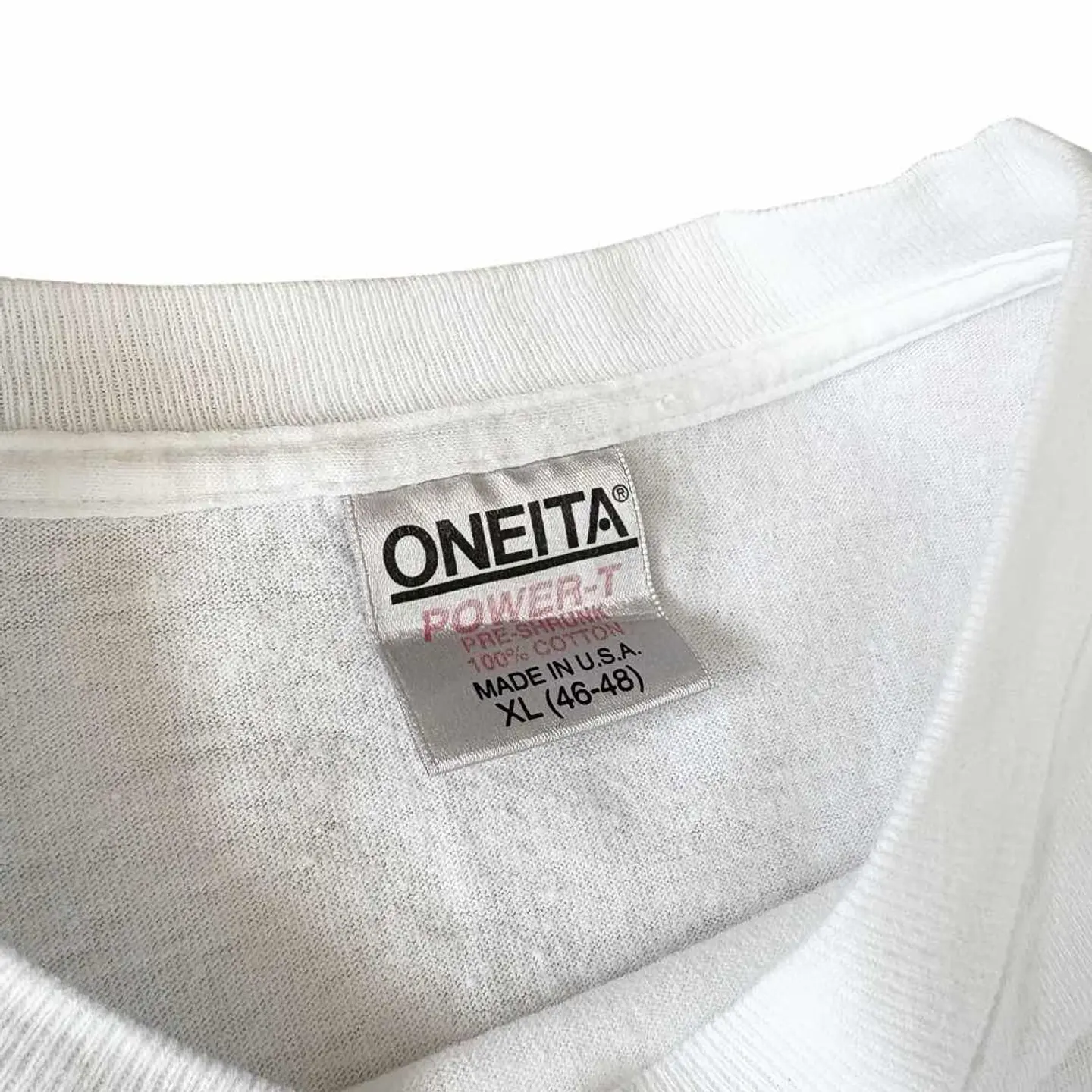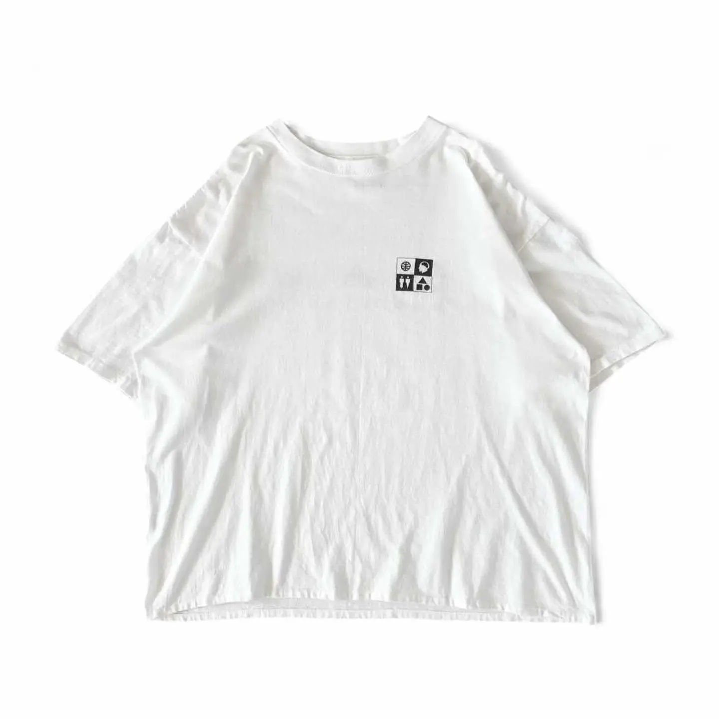 ○商品説明 90s USA製 ONEITA モダンデザインが際立つアートチックな一枚になります。 ロゴ部分は3つの幾何学的シンボル (四角・三角・丸のアレンジ)で「M・A・X」の文字を 象徴的に表現しています。 ボックスシルエットになります。 是非。 ○サイズ 表記XL 平置き ・肩幅59cm ・身幅63.5cm ・袖丈22cm ・着丈63cm ○商品の状態B A:使用感がほとんどなく、汚れやシミもなし B:多少使用感はあるが、汚れやシミも少ない C:使用感があり、汚れやシミがある D:使用感があり、大きな汚れや破れあり ○色 ホワイト #90s#USA製#ONEITA#オニータ#Tシャツ