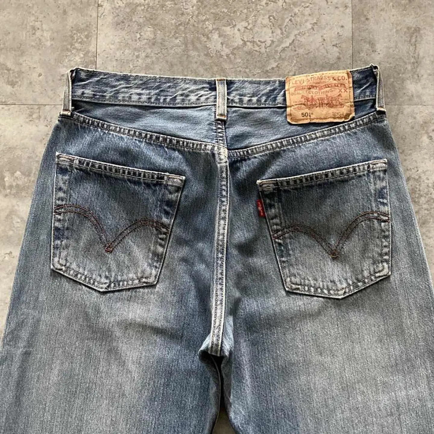 【W30 L34】Levis 501 PREMIUM レザーパッチ ボタンフライ 濃紺 デニムパンツ