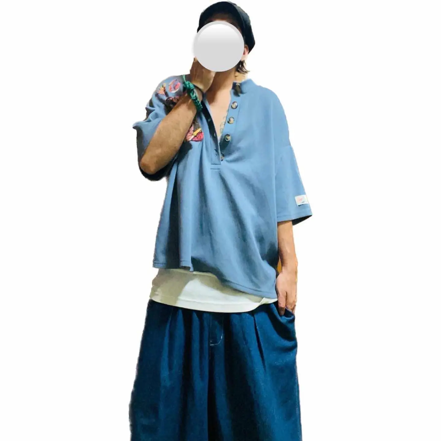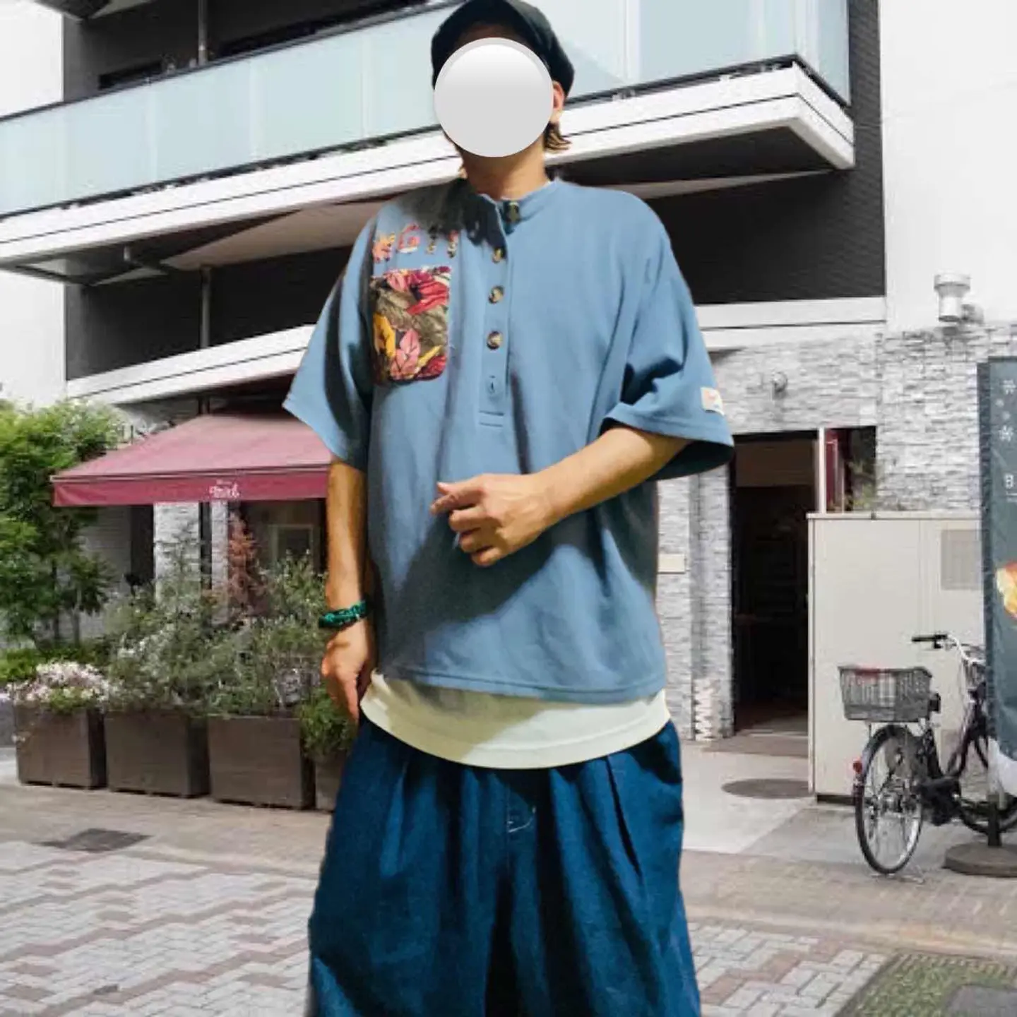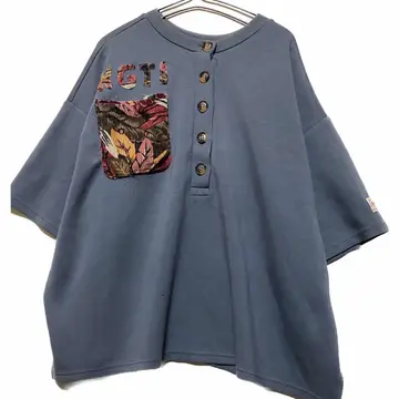 90s.dead stock remake deep Henry 量産をしない拘りが、強かった90s の、onesize oneoff【今回は、超少量生産の意味】の dead Stockを、仕入れ、 リメイクしました、 アフリカ仕入れmaterialで、 ポケット、ロゴ作り縫い付け、 特質ポイントとしては、 ツーウェイってことです、ディープヘンリーネックなんで、 着用画像ご覧ください、閉めてもかっこいいですし 開けるとディープV風脱力感最強のシルエットになります また、ワイドボックスシルエットが80年代男と意識して作ってらしくて 着用すると、一気に、こなれた脱力感が出る、コーディネートになり、レイヤードもかなりおしゃれに決まります。 計算され尽くした、カットソー リメイクした世界に1つのあなただけど、1着 ぜひかっこよく、着こなしてあげて下さい^_^ 【カラー】 壁掛け参照、一から、カラーも作る方なんで、世の中にないレアカラー 【サイズ】Fといっていいかもです、身幅は、2XLは、ありますね、 モデル170 Mジャストくらいの普通体型の私がかなりゆるだぼ、だが、BOXだから、決まる!! 平置き採寸 着丈67 身幅66 肩幅63 boxds 袖丈dsなんで、ハンガー掛け採寸40位人によります、H/Sです、 【material、素材】 レーヨン50 ウレタン5 ポリミック45 着心地大人気キャスパージョンと同じ感じ、シワならない、 速乾性あり、タフ、吸水性あるのに表出ない、最高です、 【状態】 dead Stock使用したんで、 良い!!