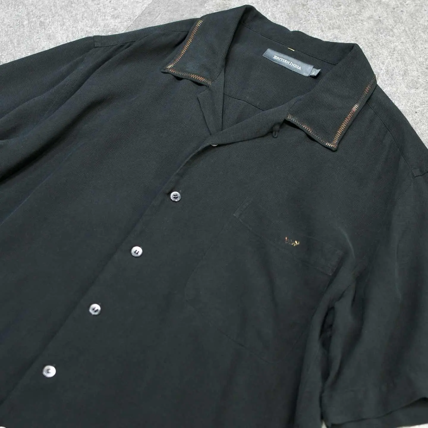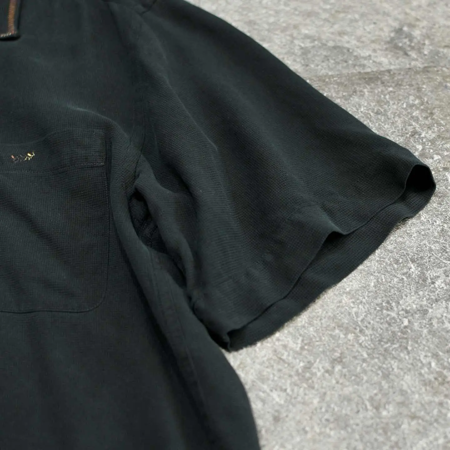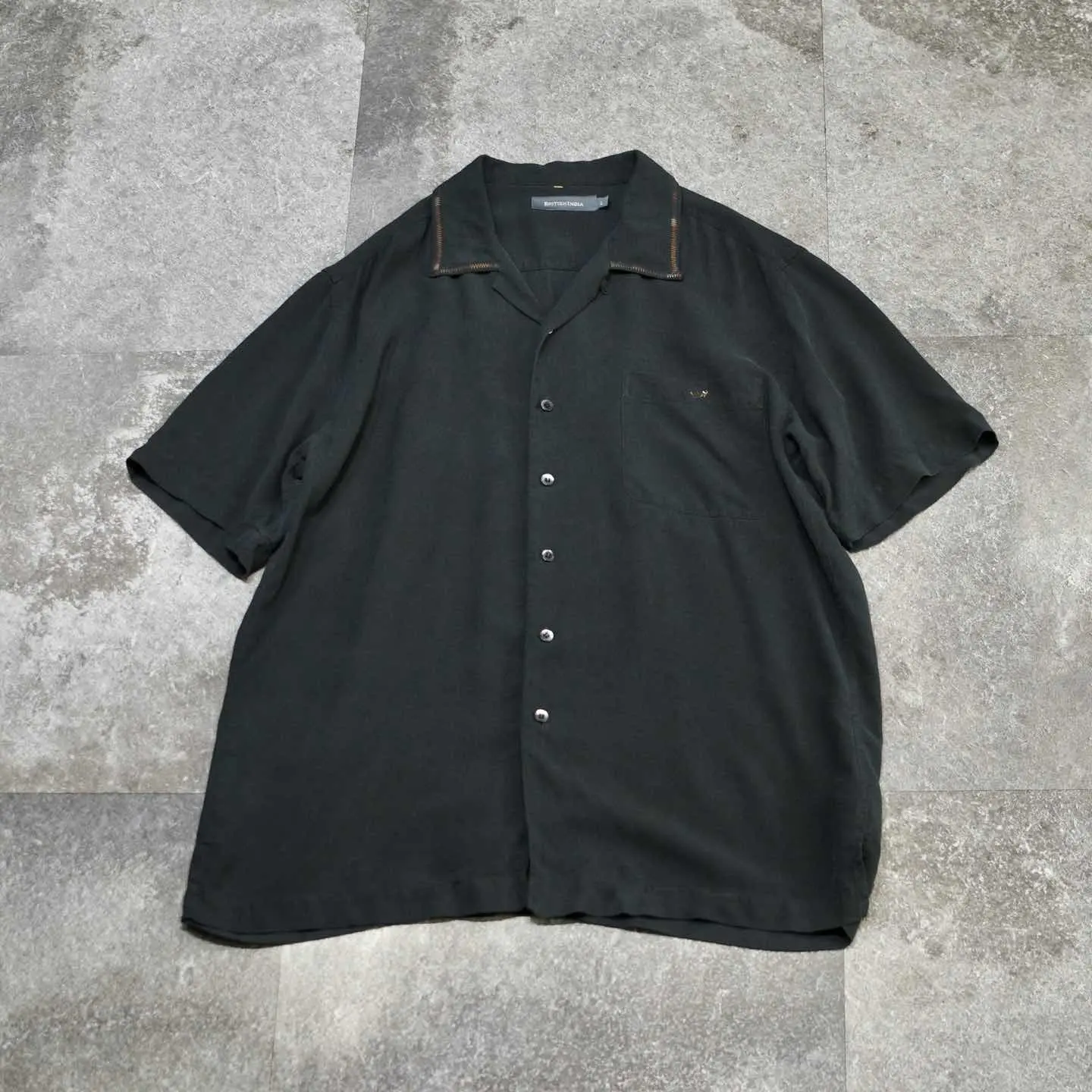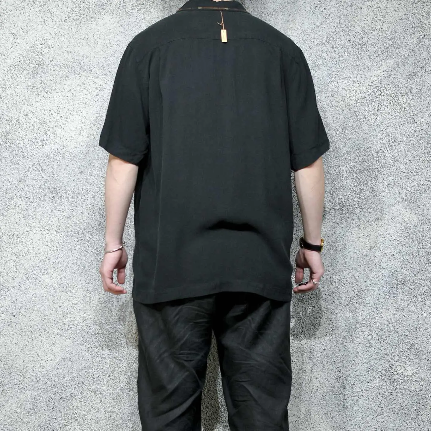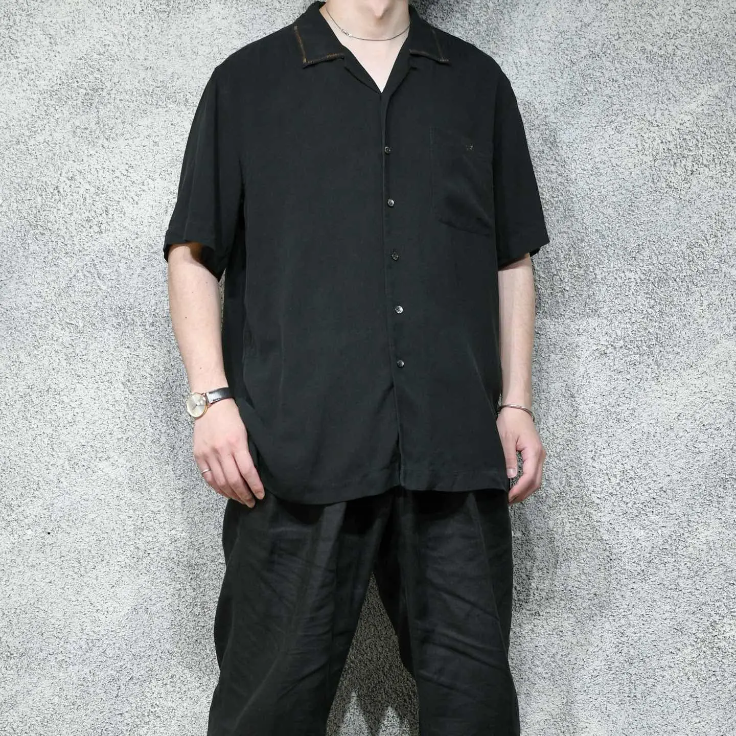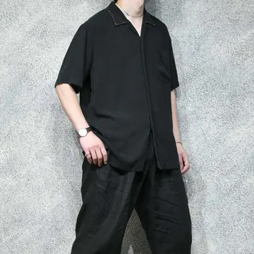 着丈77cm 肩幅51cm 身幅62cm 袖丈28cm fabric/silk 着用画像 177cm/64kg 黒のシンプルなオープンカラーのシルクシャツに、 一手間加えました。 段染めというグラデーションのようになった 糸を使い、襟や胸ポケットにステッチや刺繍を デザイン。 汎用性がありながらも差別化出来る、 程良い”一癖”をコーデに与えてくれる逸品です。 ※撮影状況により、実物と多少色が異なる場合が ございます。 ※古着を取り扱っているため、気づかない汚れや ほつれ等がある場合がございます。 予めご了承ください。 ※サイズは着用感で選んでおり、表記サイズではございません。 古着 オーバーサイズ old vintage ヴィンテージ used 80's 90's アメリカ古着 ユーロ古着 メンズ レディース POLO RALPH LAUREN Eddie Bauer OLD GAP Eddie Bauer LANDS' END ランズエンド LLBean エルエルビーン オールドギャップ エディーバウアー ラルフローレン ブルックスブラザーズ Brooks Brothers ブラック 開襟シャツ リメイク古着 デザインシャツ シルクシャツ などがお好きな方 #vintage #オーバーサイズ #old #used #90s #80s #古着 #ヴィンテージ #アメリカ古着 #ユーロ古着 #古着男子 #古着女子 #LLBean #エルエルビーン #EddieBauer #エディーバウアー #oldgap #オールドギャップ #LANDSEND #ランズエンド #NAUTICA #ノーティカ #ラルフローレン #POLORALPHLAUREN #ブルックスブラザーズ #BrooksBrothers #開襟シャツ #オープンカラーシャツ #半袖シャツ #シルクシャツ #デザインシャツ #リメイク古着 #リメイク