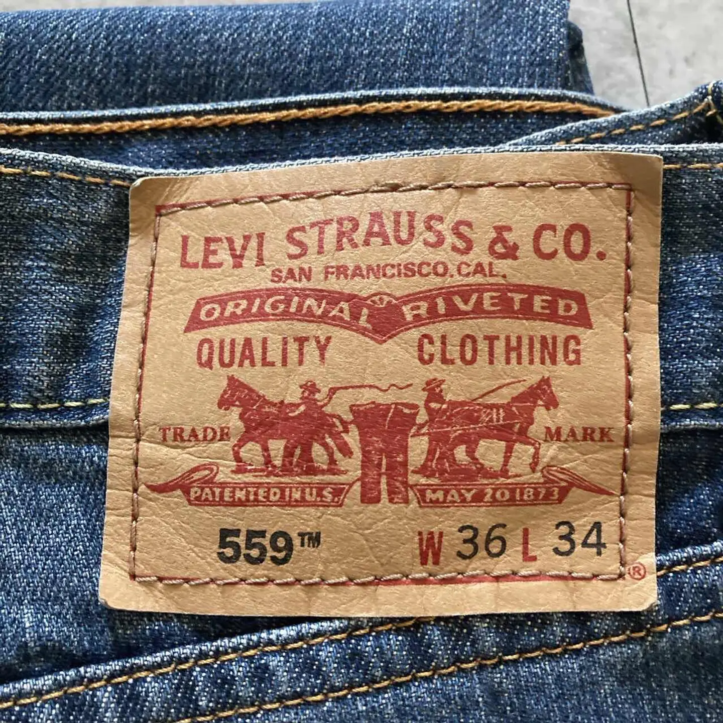 【W30 L34】Levis 501 PREMIUM レザーパッチ ボタンフライ 濃紺 デニムパンツ
