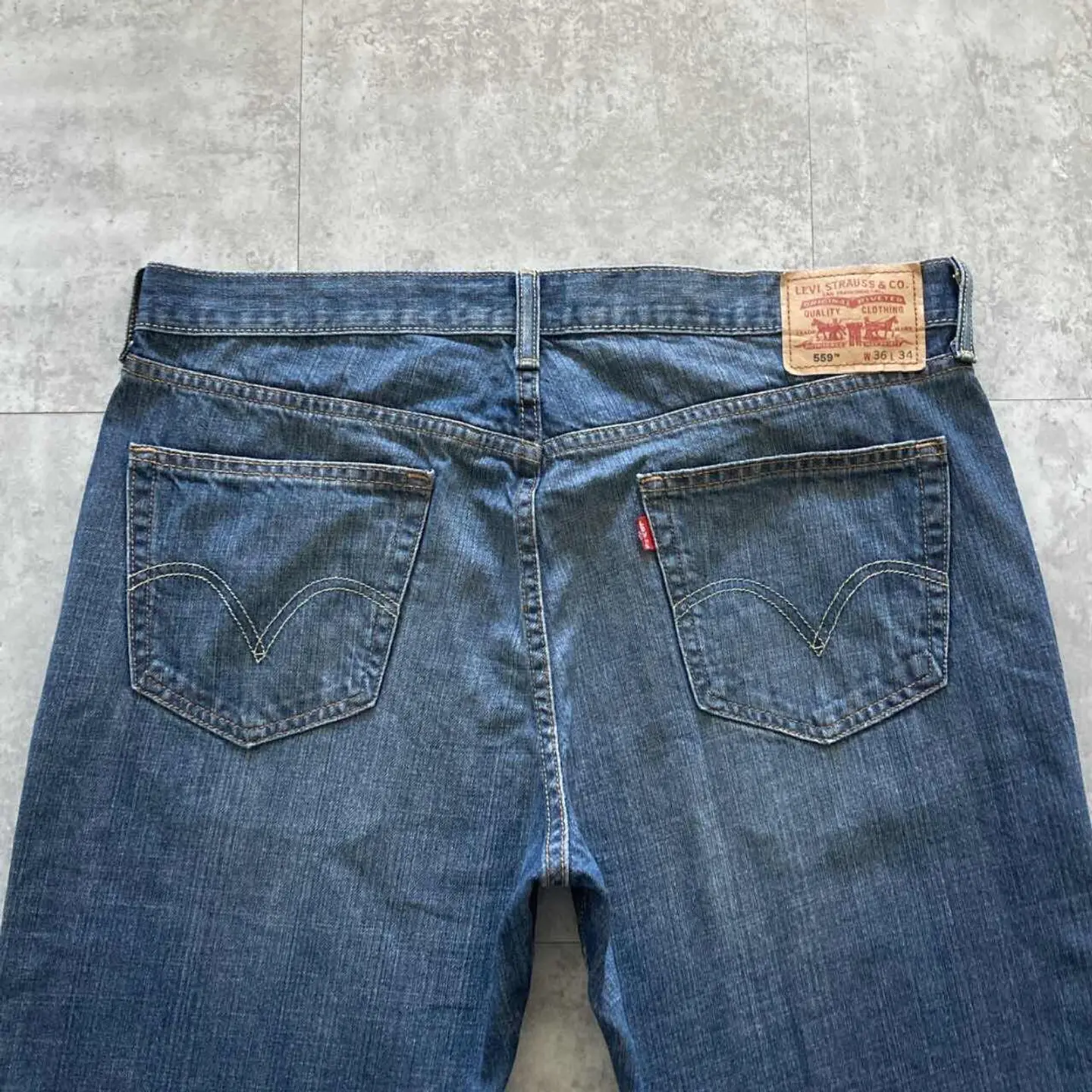 □Size□ 表記→W36 L34 実寸↓ 股上 : 29.5 股下 : 86 ワタリ幅 : 36 裾幅 : 24.5 ウエスト : 50×2 (cm) □Colour□ ・デニム紺 □Material□ ・100%コットン □Condition□ ・前ポケット.裾に若干の擦れた傷あり □Caution□ ・当店で取り扱っているアイテムは全て「古着」となっております。そのため、多少の擦れやほつれ、色あせや汚れ等が見られる場合がございます。新品同様の完璧なお品物をお求めの方は当店をご利用されないよう宜しくお願いします。 ・購入された商品につきましては、購入日から起算して「72時間以内の発送」とさせて頂きます。お急ぎの場合はオンラインストアの問い合わせフォームよりご連絡ください。可能な限り対応させて頂きます。 ・購入されら商品は基本的に「お客様都合での返品&キャンセル不可」となっております。決済が確定した時点で注文の取り消し等は不可のとなりますので、よくお考えの上購入検討の方をお願い致します。 【A-5701】