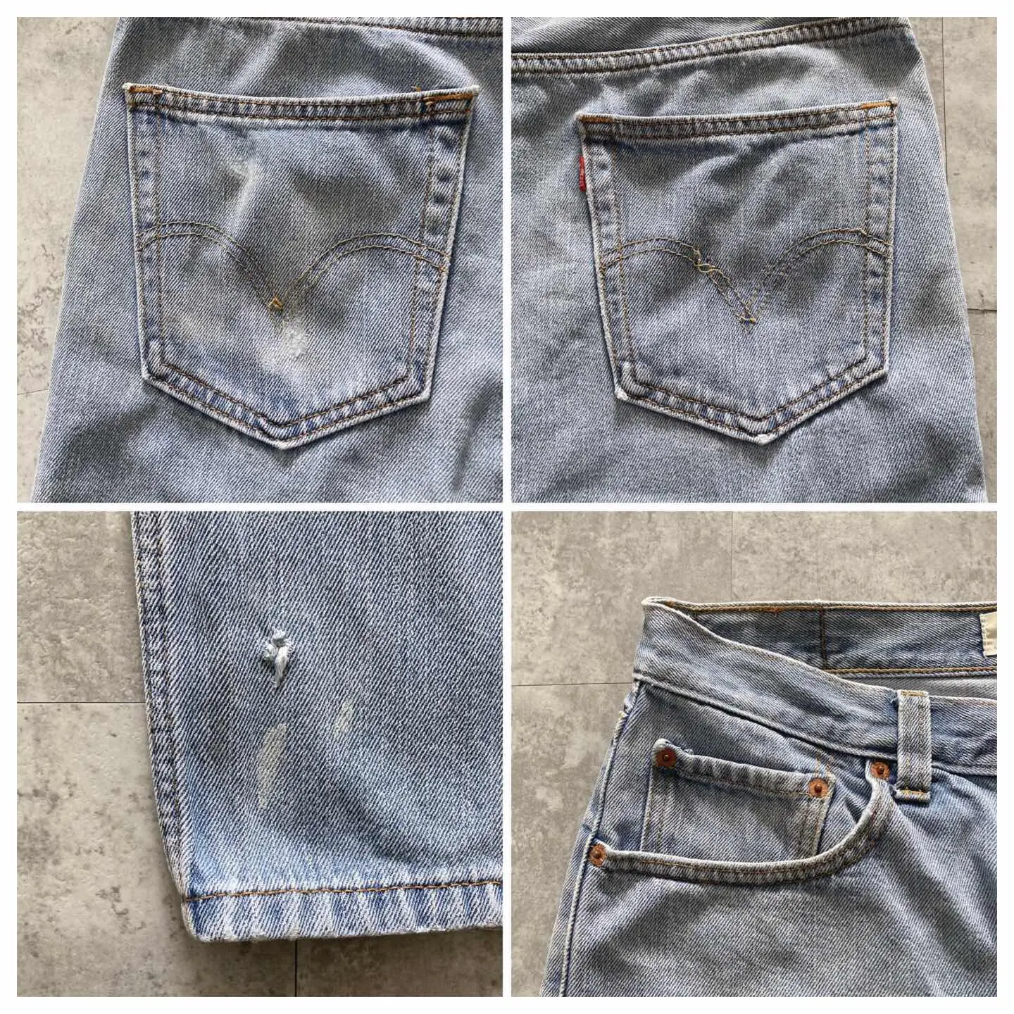 □Size□ 表記→W34 L30 実寸↓ 股上 : 29 股下 : 74 ワタリ幅 : 32.5 裾幅 : 21 ウエスト : 45×2 (cm) □Colour□ ・デニム紺 □Material□ ・100%コットン □Condition□ ・裾に汚れ傷あり ・後ろポケットにほつれあり □Caution□ ・当店で取り扱っているアイテムは全て「古着」となっております。そのため、多少の擦れやほつれ、色あせや汚れ等が見られる場合がございます。新品同様の完璧なお品物をお求めの方は当店をご利用されないよう宜しくお願いします。 ・購入された商品につきましては、購入日から起算して「72時間以内の発送」とさせて頂きます。お急ぎの場合はオンラインストアの問い合わせフォームよりご連絡ください。可能な限り対応させて頂きます。 ・購入されら商品は基本的に「お客様都合での返品&キャンセル不可」となっております。決済が確定した時点で注文の取り消し等は不可のとなりますので、よくお考えの上購入検討の方をお願い致します。 【A-4349】