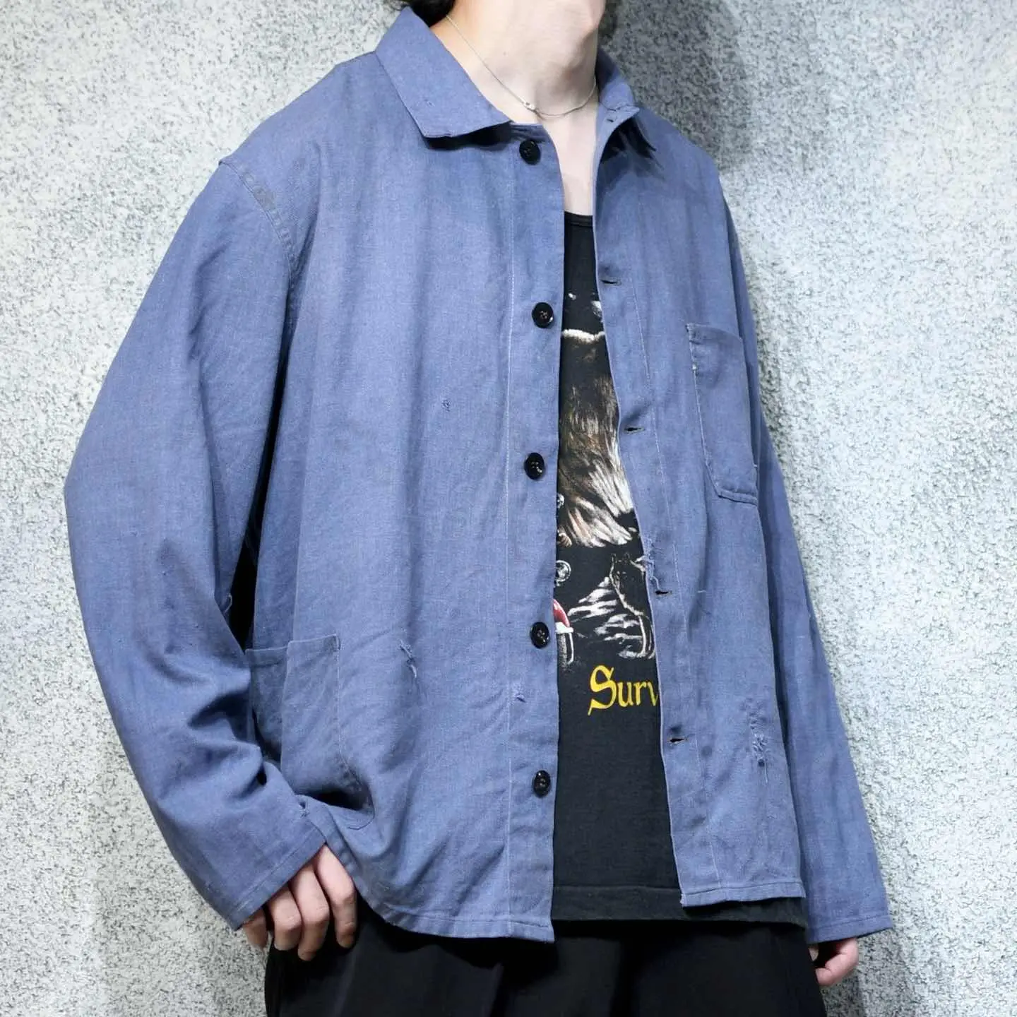 古着 フェード ダックジャケット カバーオール 襟 コーデュロイ キルティング