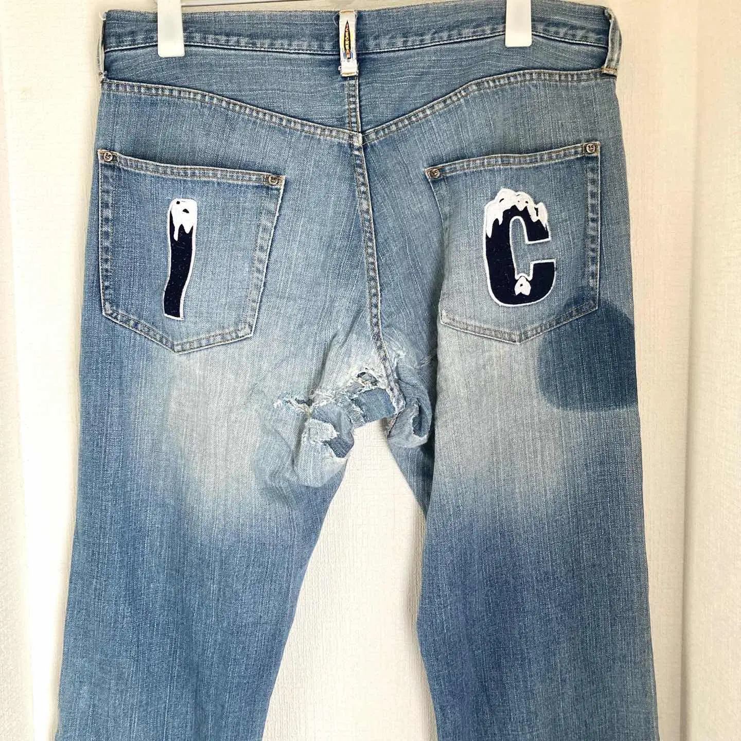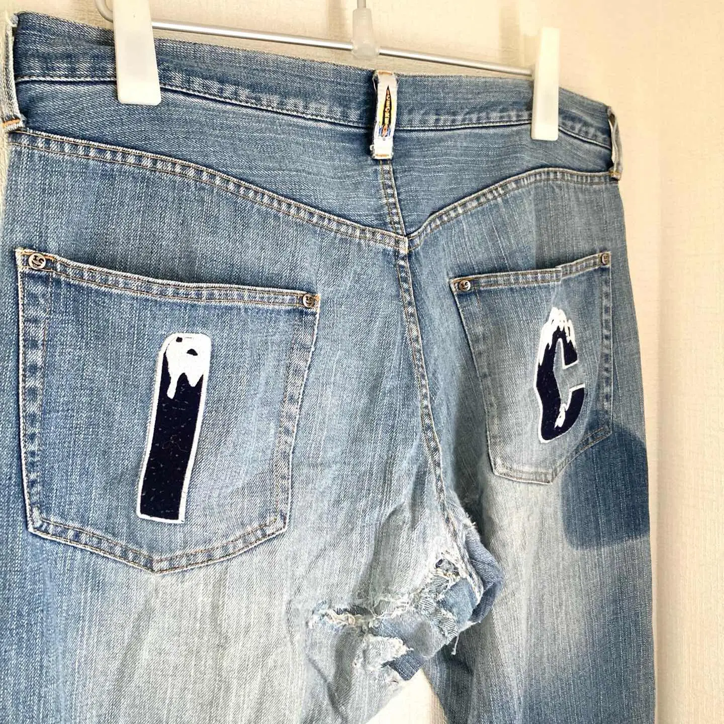 豪華なデザインと高いクオリティでお馴染みのICECREAM デニムパンツ! ダメージ加工と刺繍が施されたヴィンテージ感漂うアイテムは、ストリートファッションを楽しむ方々にぴったり。ラフなスタイルからユニークなコーディネートまで幅広く対応します。 ブランド ICECREAM アイスクリーム 商品名 ICECREAM ビリオネボーイズクラブ デニムパンツ 刺繍 ダメージ コットン カジュアル 日本製 パッチ L サイズ Lサイズ ウエスト94㎝ わたり37㎝ 股下75.5㎝ 裾幅21.5㎝ 総丈102.5㎝ カラー ブルー系 特記事項 股部分にリメイク跡あり。穴は空いておりません×。またお尻付近にパッチ跡の様なものあり。ご使用自体問題ございません。 #ふくしるべのパンツ