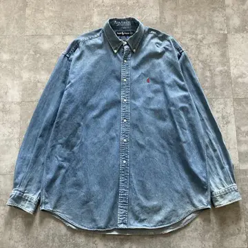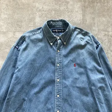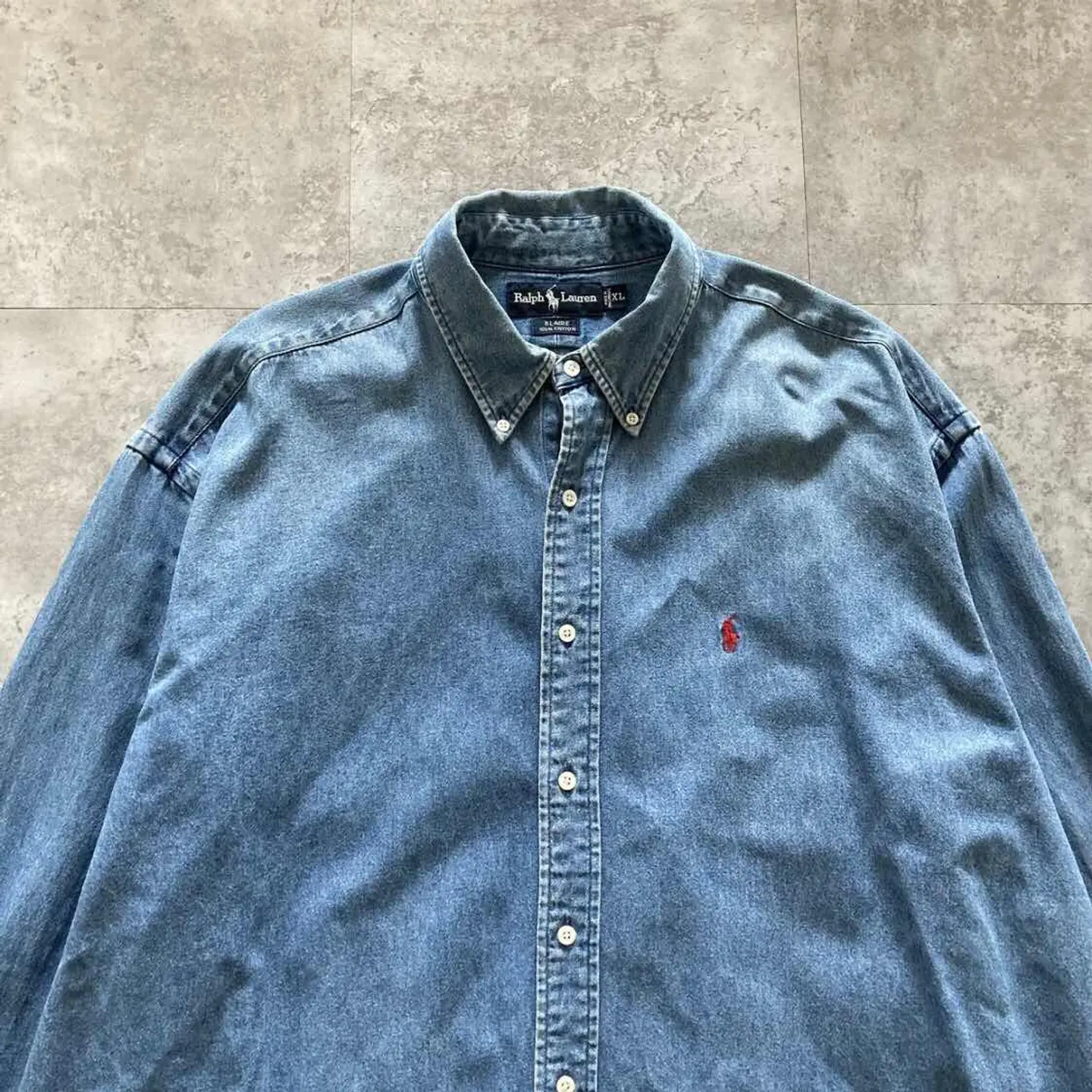 【size XL】RALPH LAUREN ワンポイントロゴ刺繍 ビッグサイズ デニムシャツ