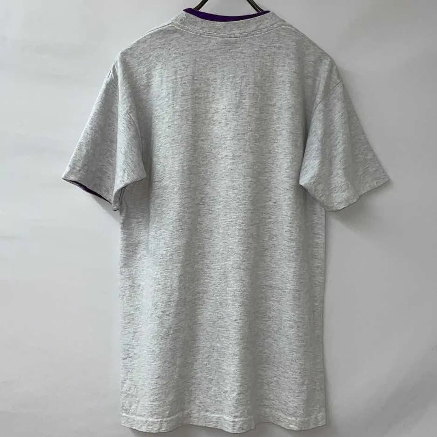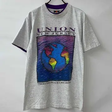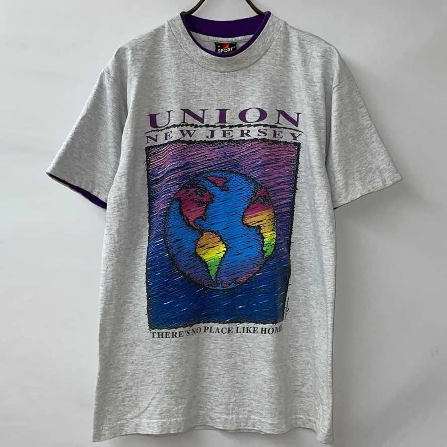 UNION NEW JERSEYのローカルスピリットを、独特なタッチの地球グラフィックで表現した90年代アートTシャツ。 「THERE'S NO PLACE LIKE HOME」というメッセージが、ホームタウンへの愛を感じさせる1枚です。 アーティスト「OHIO PYLE」による1993年の作品で、インクの擦れ感も味のある仕上がり。 パープルの二重襟・袖リブ仕様がアクセントになり、レイヤード風のデザインが個性を引き立てます。 ボディはUSA製。柔らかく厚みのあるコットン地が、90年代らしい質感をそのまま残しています。 グラフィックTシャツの中でも一癖ある個性派をお探しの方におすすめです。 サイズ(表記:M) 肩幅:47cm 袖丈:21cm 裄丈:35cm 袖口(平置):15.5cm 腕まわり(平置):22cm 身幅:46cm 着丈:72cm ▶︎ 目安:170cm前後の方におすすめ。 タイトめに着たい方や、コンパクトなシルエットを好む方にも◎ 【素材・カラー・生産国】 素材:コットン100% カラー:グレー(杢調) 生産国:USA製 ブランド:SIGNAL SPORT(Mega Cotton) コンディション【A-B】 若干の使用感はありますが、全体的に良好な状態。 目立つ傷や汚れはありません。 【コンディションランク】 S:新品・デッドストック A:使用感少なめでキレイ B:使用感あり(軽微な汚れ・シミあり) C:ややダメージあり D:大きなダメージあり スタイリング提案 ・パープルの差し色を活かして、 ネイビーやブラックのパンツと好相性 ・リブ付きデザインを活かして一枚でラフに ・ワイドデニムやスラックスと合わせてレトロストリートに ご注意 ・古着商品のため、細かなキズや汚れがある場合があります ・一点物となりますので、気になる方はお早めにご購入ください ・ご利用のモニター環境により、色味が異なる場合があります #vintage #古着 #90s #used #古着男子 #80s #古着女子 #アメリカ古着