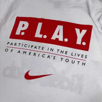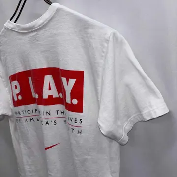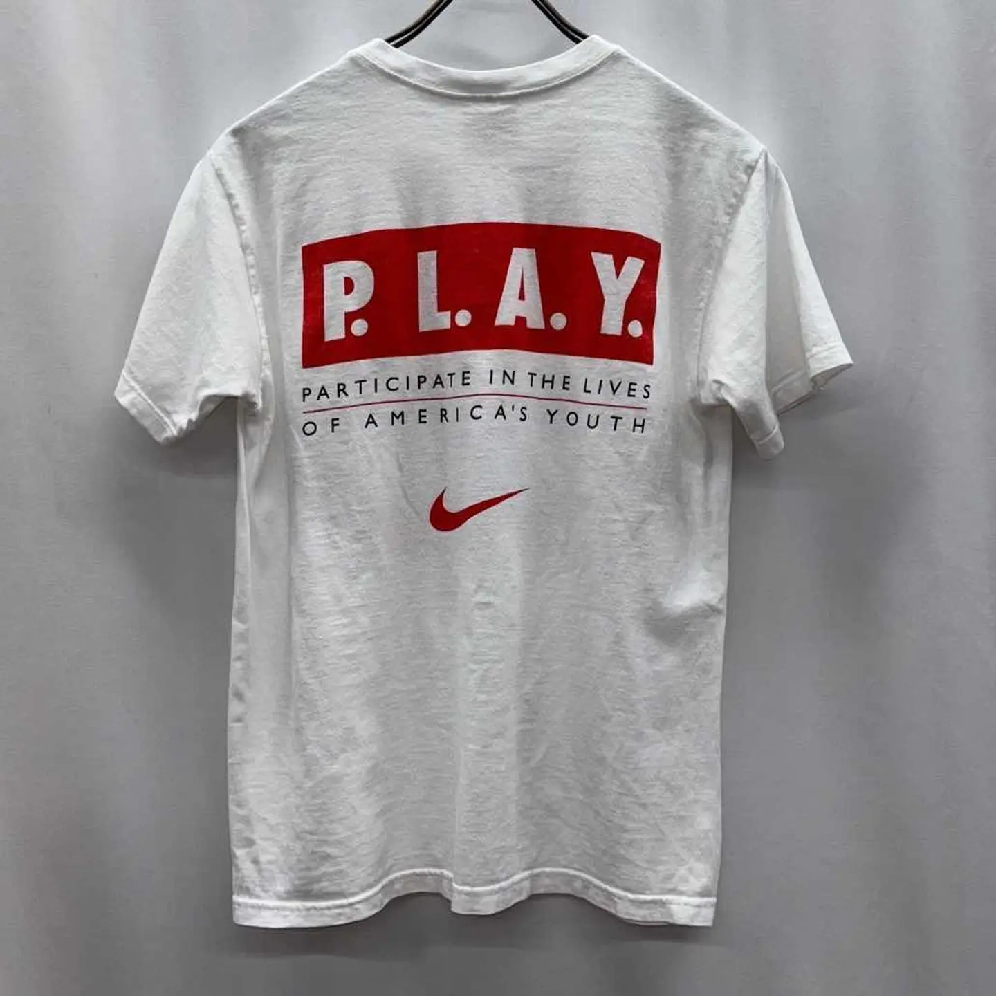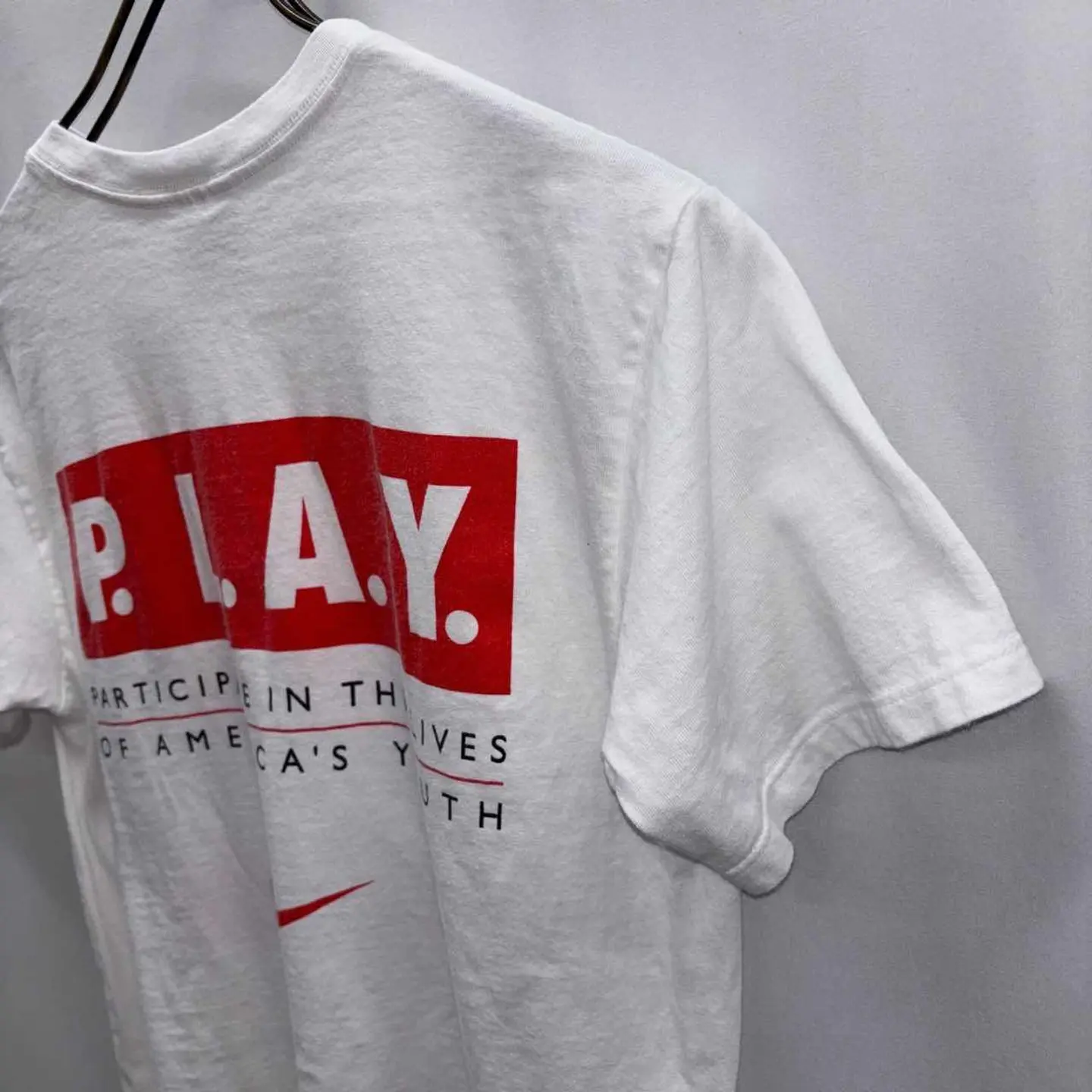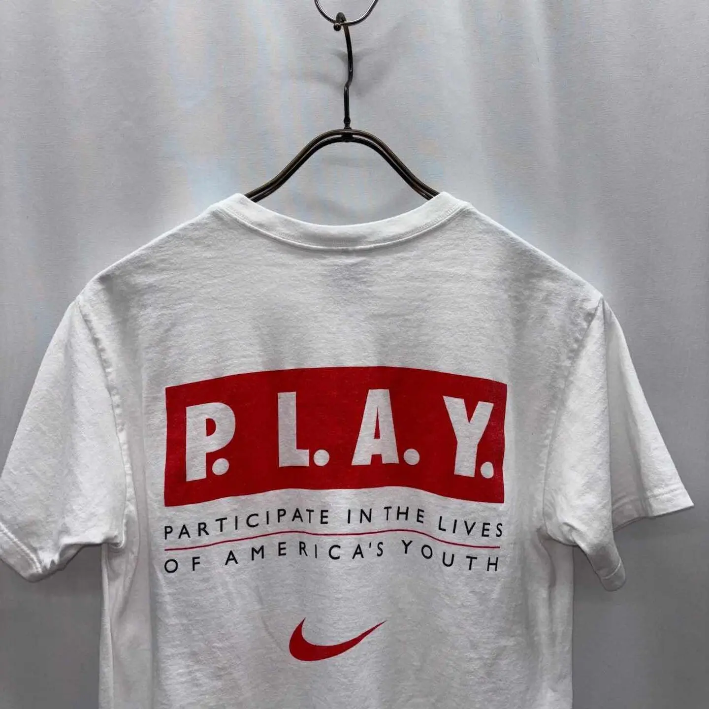 アメリカンフットボールチーム「Pittsburgh Steelers」のジュニアファン向け企画「Kids Club」のTシャツ。 フロントにはスティーラーズの象徴であるスリースターのロゴと、キッズ向けらしいポップなフォントでデザインされた“Kids Club”の文字。 サイドにはNFLロゴ入りの「Play Football」プリントが入り、さらにバックにはNikeとNFLが主導した青少年支援プロジェクト「P.L.A.Y.(Participate in the Lives of America's Youth)」のメッセージロゴを大胆に配置。 ホワイトボディに3か所のプリントが施される贅沢な仕様で、スポーツ・カルチャー・教育支援の文脈が交差したレアな1着。 90年代Nike × NFLの貴重なアーカイブで、コレクターズピースとしても人気が高いです。 サイズ(表記:M) 肩幅:42cm 袖丈:17cm 身幅:44cm 着丈:58cm ▶︎ 目安:160〜170cm前後の方におすすめ。 ジャストで着たい150cm台の方にも◎ 【素材・カラー・生産国】 素材:100% Cotton カラー:ホワイト 生産国:USA製 ブランド:NIKE コンディション【B】(小さな汚れあり) 【コンディションランク】 S:新品・デッドストック A:使用感少なめでキレイ B:使用感あり(軽微な汚れ・シミあり) C:ややダメージあり D:大きなダメージあり スタイリング提案 ・バギーデニムやカーゴパンツでアメリカンスポーツMIX ・インナーにロンTを合わせてストリートライクに ご注意 ・古着商品のため、細かなキズや汚れがある場合があります ・一点物となりますので、気になる方はお早めにご購入ください ・ご利用のモニター環境により、色味が異なる場合があります #vintage #古着 #90s #used #古着男子 #80s #古着女子 #アメリカ古着