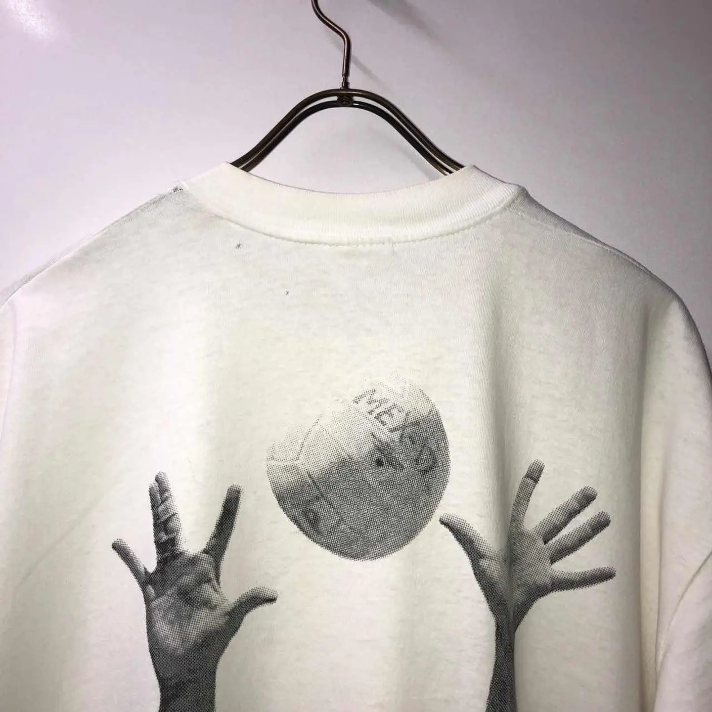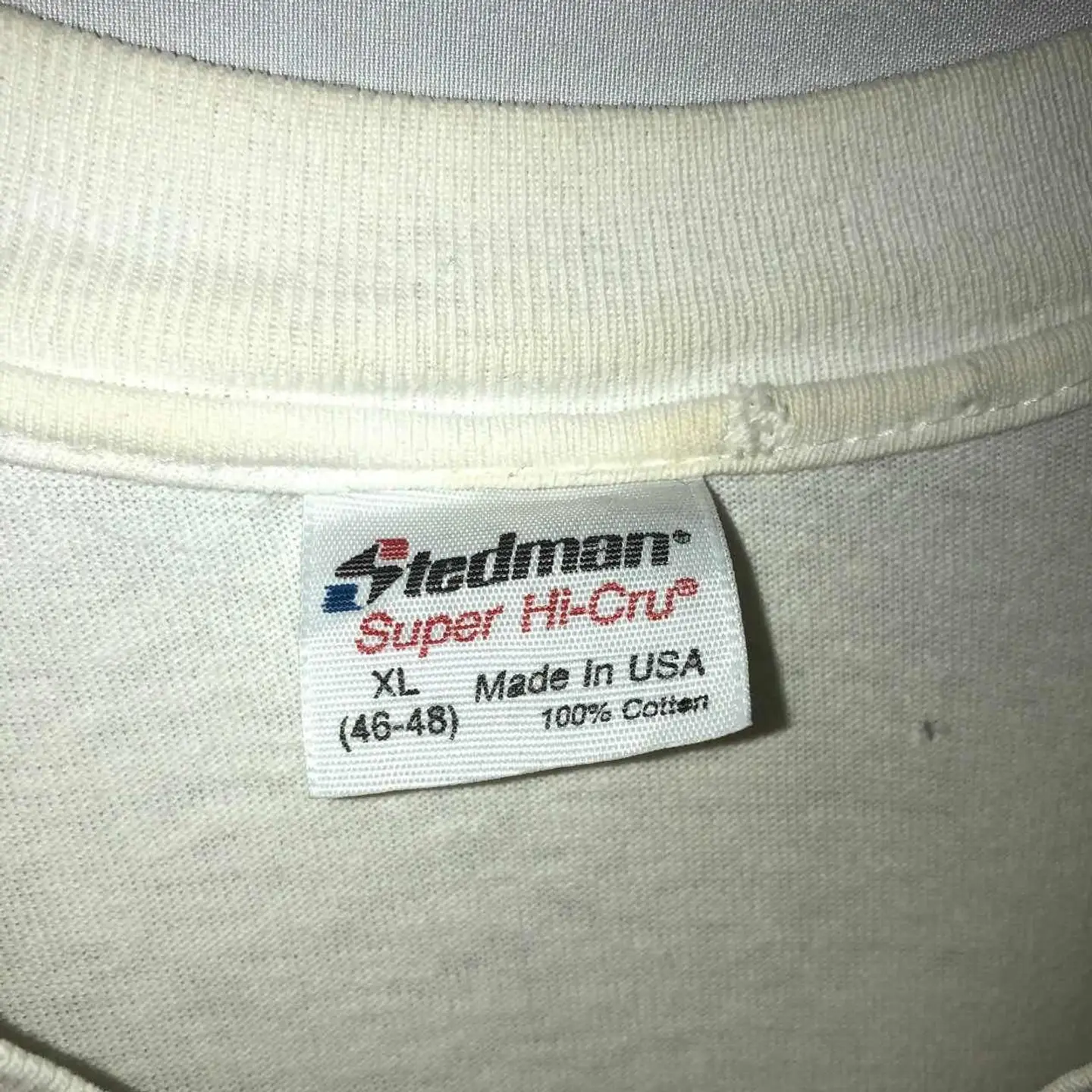 “vintage sports Tee volleyball(バレーボールT)”という、スポーツイベントTシャツらしいスタイル。 胸元に大きく「volleyball」のロゴと、楕円形や太いアーチ状フォントで構成されたプリントは、1990年代〜00年代のスクールチームTを彷彿とさせるデザインです。 白地ボディにネイビーのプリントがクリーンに映え、程よくクラシックかつカジュアルな仕上がり。 スポーツカルチャーとレトロロゴデザインが好みに刺さる一枚。 また、所々に穴のあるUSED感が、味あるヴィンテージらしさを演出しています。 サイズ(表記:XL) 肩幅:56 cm 袖丈:19 cm 身幅:56 cm 着丈:71 cm ▶︎ 目安:170〜185 cm前後の方におすすめ。 ゆったり着たい方にはランクアップも◎ 【素材・カラー・生産国】 素材:コットン100% カラー:ホワイト 生産国:USA製 ブランド:不明(タグ不明) コンディション【B(小穴あり)】 【コンディションランク】 S:新品・デッドストック A:使用感少なめで状態良好 B:使用感あり(軽微なダメージ・シミあり) C:ダメージ箇所・汚れあり D:大きなダメージあり スタイリング提案 ・デニムやカーゴパンツとの相性◎、スポーツMIXな古着スタイルに ・ロングスカートやワイドパンツと組み合わせて、ほどよくカジュアルに ご注意 ・古着ならではの小さな穴やヨレがあります点、ご理解の上ご検討ください ・一点ものとなりますので、ご希望の方はお早めにご購入をおすすめします ・色味は撮影・モニター環境で若干異なる場合があります #vintage #古着 #90s #used #古着男子 #80s #古着女子 #アメリカ古着
